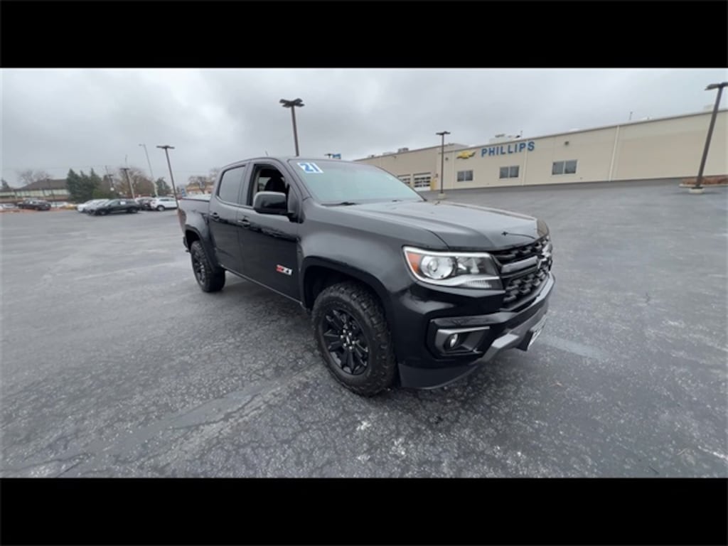 CarBravo Certified, 4WD, Leather Seats, Midnight Edition, Trailering Package, Backup Camera, Remote Start, Pwr Dr Seat, Forward Collision Alert, Navigation, Bose Audio, Lane Departure Warning, Lane Change Alert, Rear Park Assist, Heated Seats, Heated Steering Wheel, Apple CarPlay, Aluminum Wheels, Carfax Buyback Guarantee, Colorado Z71, 4D Crew Cab, V6, 8-Speed Automatic, 4WD, Black, Jet Black w/Leather-Appointed Seat Trim, 2 USB Data Ports w/SD Card Reader, 3.42 Rear Axle Ratio, 4-Wheel Disc Brakes, ABS brakes, Air Conditioning, AM/FM radio: SiriusXM, Apple CarPlay/Android Auto, Auto-dimming Rear-View mirror, Automatic temperature control, Black Spray-On Bedliner w/Chevrolet Logo, Bose Premium 7-Speaker Audio System Feature, Bumpers: body-color, Compass, Driver 6-Way Power Seat Adjuster, Driver door bin, Driver vanity mirror, Dual front impact airbags, Dual front side impact airbags, Electronic Stability Control, Exterior Parking Camera Rear, Forward Collision Alert, Front anti-roll bar, Front Bucket Seats, Front Center Armrest, Front fog lights, Front reading lights, Front wheel independent suspension, Fully automatic headlights, Heated door mirrors, Heated Driver & Front Passenger Seats, Heated front seats, Heated steering wheel, Hitch Guidance, Illuminated entry, Integrated Trailer Brake Controller, Lane Departure Warning System, Leather-Appointed Seat Trim, Low tire pressure warning, Navigation System, Occupant sensing airbag, Outside temperature display, Overhead airbag, Overhead console, Passenger door bin, Passenger vanity mirror, Power door mirrors, Power Driver Lumbar Control Seat Adjuster, Preferred Equipment Group 4Z7, Radio data system, Radio: Chevrolet Infotainment 3 Plus System w/Navi, Rear reading lights, Rear seat center armrest, Rear step bumper, Rear window defroster, Remote keyless entry, Safety Package, Security system, SiriusXM Radio, Speed control, Speed-sensing steering, Steering wheel mounted audio controls, Tachometer, Telescoping steering wheel, Tilt steering wheel, Tow/Haul Mode, Traction control, Trip computer, UltraSonic Rear Park Assist, Variably intermittent wipers, Wheels: 17" x 8" Gloss Black Aluminum, Z71 Midnight Edition. 2021 Chevrolet Colorado Black Z71 4D Crew Cab 4WD 8-Speed Automatic 17/24 City/Highway MPG V6