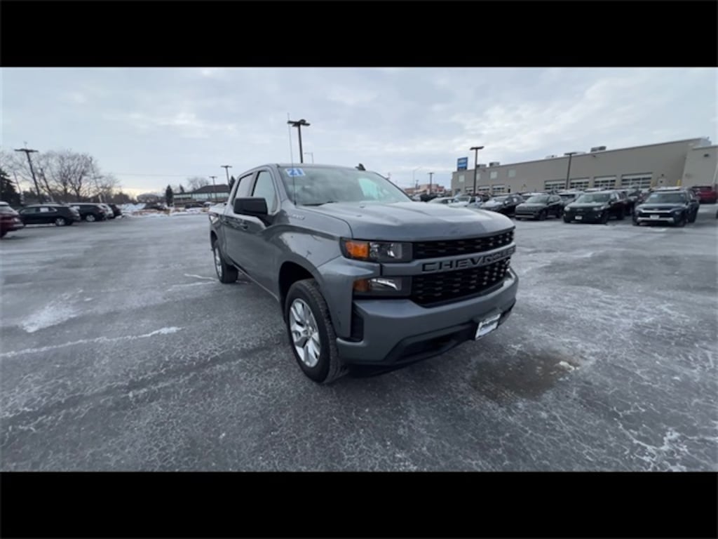Low Miles, CarBravo Certified, 4WD, Trailering Package, Backup Camera, Remote Start, Apple CarPlay, 20" Wheels, Carfax Buyback Guarantee, Silverado 1500 Custom, 4D Crew Cab, 2.7L Turbo, 8-Speed Automatic, 4WD, Satin Steel Metallic, Jet Black w/Cloth Seat Trim, 120-Volt Instrument Panel Power Outlet, 170 Amp Alternator, 3.42 Rear Axle Ratio, 3.5" Diagonal Monochromatic Display, 4-Wheel Disc Brakes, 4G LTE Wi-Fi Hot Spot Capable, 6 Speakers, ABS brakes, Air Conditioning, AM/FM radio: SiriusXM, Apple CarPlay/Android Auto, Bluetooth® For Phone, Body Color Grille, Brake assist, Bumpers: body-color, Chevrolet Connected Access Capable, Cloth Seat Trim, Color-Keyed Carpeting Floor Covering, Compass, Custom Convenience Package, Custom Value Package, Deep-Tinted Glass, Driver door bin, Driver vanity mirror, Dual front impact airbags, Dual front side impact airbags, Electric Rear-Window Defogger, Electronic Cruise Control, Electronic Stability Control, EZ Lift Power Lock & Release Tailgate, Front anti-roll bar, Front Center Armrest w/Storage, Front Frame-Mounted Black Recovery Hooks, Front License Plate Kit, Front reading lights, Front wheel independent suspension, Fully automatic headlights, Heated door mirrors, Heavy Duty Suspension, Hitch Guidance, Illuminated entry, Infotainment Package, LED Cargo Area Lighting, Low tire pressure warning, Manual Tilt Wheel Steering Column, Occupant sensing airbag, OnStar & Chevrolet Connected Services Capable, Outside temperature display, Overhead airbag, Overhead console, Passenger door bin, Passenger vanity mirror, Polished Exhaust Tip, Power Door Locks, Power door mirrors, Power Front Windows w/Driver Express Up/Down, Power Front Windows w/Passenger Express Down, Power Rear Windows w/Express Down, Preferred Equipment Group 1CX, Premium audio system: Chevrolet Infotainment 3, Radio data system, Radio: Chevrolet Infotainment 3 System, Rear 60/40 Folding Bench Seat (Folds Up), Rear reading lights, Rear Rubberized-Vinyl Floor Mats, Rear step bumper, Rear window defroster, Remote Vehicle Starter System, Security system, Single-Zone Manual/Semi-Automatic Air Conditioning, SiriusXM Radio, Speed-sensing steering, Split folding rear seat, Standard Tailgate, Tachometer, Theft Deterrent System (Unauthorized Entry), Tilt steering wheel, Traction control, Trailering Package, Trip computer, Variably intermittent wipers, Voltmeter, Wheels: 20" x 9" Bright Silver Painted Aluminum. 2021 Chevrolet Silverado 1500 Satin Steel Metallic Custom 4D Crew Cab 4WD 8-Speed Automatic 19/22 City/Highway MPG 2.7L Turbo