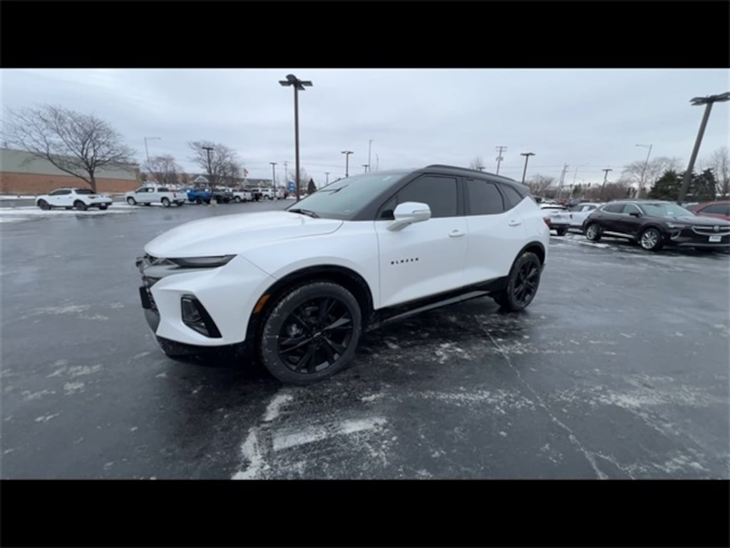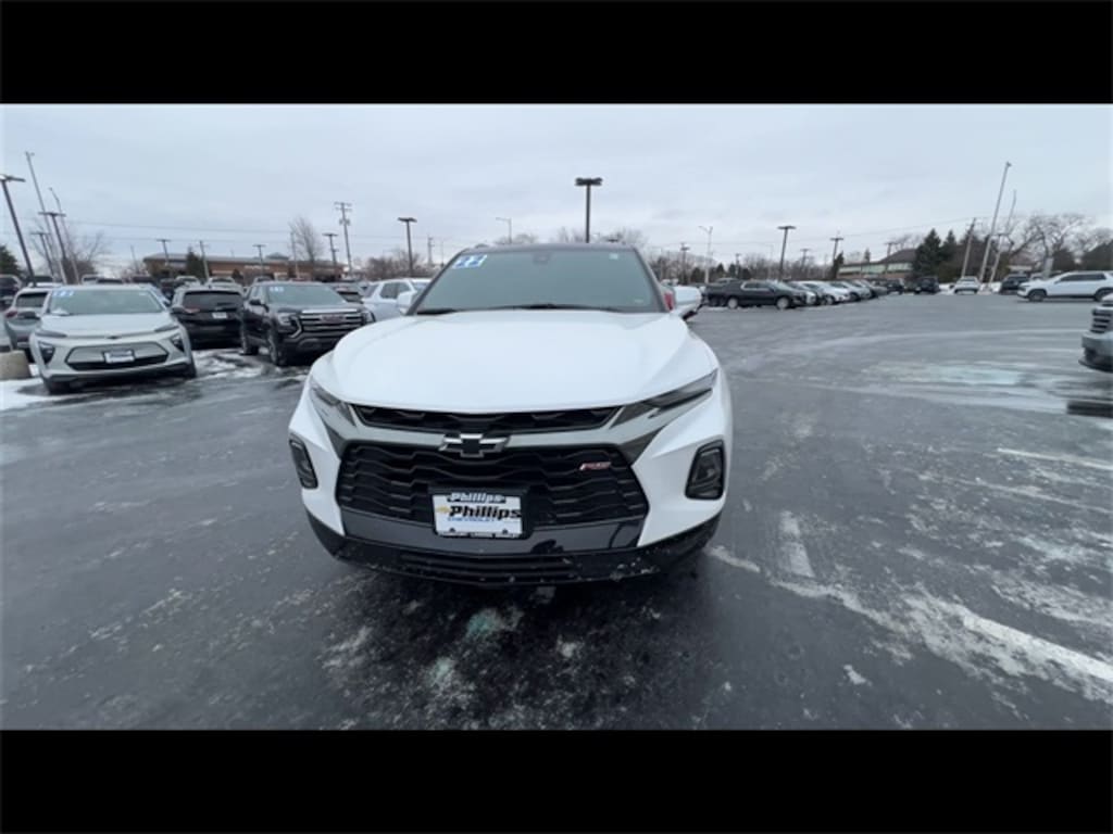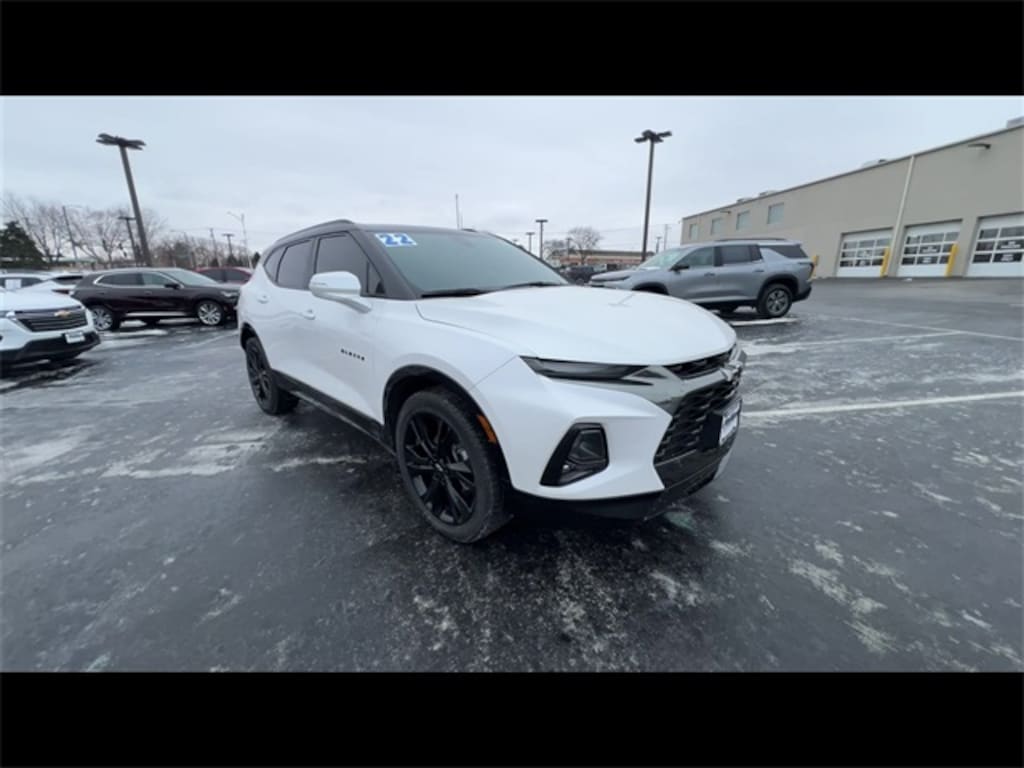 Low Miles, CarBravo Certified, AWD, Leather Seats, Panoramic Roof, Trailering Package, Backup Camera, Remote Start, Pwr Dr Seat, Forward Collision Alert, Navigation, Bose Audio, Side Blind Zone Alert, Rear Cross Traffic Alert, Lane Departure Warning, Lane Change Alert, Lane Keep Assist, Rear Park Assist, Adaptive Cruise Control, Heated Seats, Heated Steering Wheel, Ventilated Seats, Memory Seating, Power Liftgate, Apple CarPlay, Aluminum Wheels, Carfax Buyback Guarantee, Blazer RS, 4D Sport Utility, 3.6L V6 SIDI, 9-Speed Automatic with Overdrive, AWD, Iridescent Pearl Tricoat, Jet Black w/Perforated Leather-Appointed Seat Trim, 4-Wheel Disc Brakes, 6-Speaker Audio System Feature, 6-Way Power Front Passenger Seat Adjuster, ABS brakes, Air Conditioning, AM/FM radio: SiriusXM with 360L, Apple CarPlay/Android Auto, Auto High-beam Headlights, Auto-dimming door mirrors, Auto-dimming Rear-View mirror, Automatic temperature control, Black 2-Tone Roof, Brake assist, Bumpers: body-color, Child-Seat-Sensing Airbag, Compass, Driver door bin, Driver vanity mirror, Dual front impact airbags, Dual front side impact airbags, Electronic Stability Control, Emergency communication system: OnStar and Chevrolet connected services capable, Enhanced Convenience Package, Exterior Parking Camera Rear, Four wheel independent suspension, Front anti-roll bar, Front Bucket Seats, Front Center Armrest, Front dual zone A/C, Front reading lights, Fully automatic headlights, Garage door transmitter, Heated door mirrors, Heated Driver & Front Passenger Seats, Heated front seats, Heated Rear Outboard Seating Positions, Heated Steering Wheel, High-Intensity Discharge Headlights, Illuminated entry, Knee airbag, Leather Shift Knob, Low tire pressure warning, Memory Settings For Driver Seat & Exterior Mirrors, Navigation System, Occupant sensing airbag, Outside temperature display, Overhead airbag, Overhead console, Passenger door bin, Passenger vanity mirror, Perforated Leather-Appointed Seat Trim, Power door mirrors, Power Liftgate, Power Panoramic Tilt-Sliding Sunroof, Power passenger seat, Power Tilt & Telescoping Steering Column, Preferred Equipment Group 1RS, Radio data system, Radio: Chevrolet Infotainment 3 Plus System, Rear anti-roll bar, Rear reading lights, Rear seat center armrest, Rear window defroster, Rear window wiper, Remote keyless entry, Ride & Handling Suspension, Security system, SiriusXM w/360L, Speed control, Speed-sensing steering, Split folding rear seat, Spoiler, Steering wheel mounted audio controls, Tachometer, Telescoping steering wheel, Tilt steering wheel, Traction control, Trip computer, Turn signal indicator mirrors, Variably intermittent wipers, Ventilated Driver & Front Passenger Seats, Voltmeter, Wheels: 21" Gloss Black Aluminum. 2022 Chevrolet Blazer Iridescent Pearl Tricoat RS 4D Sport Utility AWD 9-Speed Automatic with Overdrive 19/26 City/Highway MPG 3.6L V6 SIDI