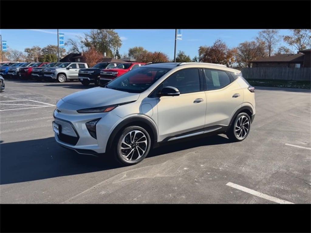 CarBravo Certified, ONE Owner!, Accident FREE, No Added Cert. Fees, Certified Multi-Point Inspection, Sunroof, Bose Audio, Heated Seats, Apple CarPlay, Keyless Entry, Ventilated Seats, Forward Collision Alert, Side Blind Zone Alert, Rear Cross Traffic Alert, Backup Camera, BLUETOOTH, Power Windows/Locks, Power Seating, PUSH BUTTON START!, FRONT PEDESTRIAN BRAKING, INTELLIBEAM, Remote Start, 17" WHEELS!, Lane Departure Warning, Lane Keep Assist, Adaptive Cruise Control, Carfax Buyback Guarantee, SUN & SOUND PACKAGE, Bolt EUV Premier, 4D Sport Utility, Electric Motor, 1-Speed Automatic, FWD, Silver Flare Metallic, Dark Ash Gray/Sky Cool Gray w/Perforated Leather-Appointed Seat Trim, 2-Way Power Driver Lumbar Seat Adjuster, 4-Wheel Disc Brakes, 6-Way Manual Passenger Seat Adjuster, 8-Way Power Driver Seat Adjuster, ABS brakes, Air Conditioning, AM/FM radio: SiriusXM with 360L, Apple CarPlay/Android Auto, Auto High-beam Headlights, Auto-dimming Rear-View mirror, Automatic temperature control, Bose Premium 7-Speaker Audio System, Brake assist, Bumpers: body-color, Compass, Driver door bin, Driver vanity mirror, Dual front impact airbags, Dual front side impact airbags, Electronic Stability Control, Emergency communication system: OnStar and Chevrolet connected services capable, Front anti-roll bar, Front Bucket Seats, Front Center Armrest, Front reading lights, Front wheel independent suspension, Fully automatic headlights, Heated door mirrors, Heated Driver & Front Passenger Seats, Heated rear seats, Heated steering wheel, Illuminated entry, Knee airbag, Low tire pressure warning, Navigation System, Occupant sensing airbag, Outside temperature display, Overhead airbag, Overhead console, Passenger door bin, Passenger vanity mirror, Perforated Leather-Appointed Seat Trim, Performance Ride & Handling Suspension, Power door mirrors, Power Dual Panel Panoramic Sunroof w/Slide, Preferred Equipment Group 2LZ, Radio: Chevrolet Infotainment 3 Plus System w/Navi, Rain sensing wipers, Rear side impact airbag, Rear window defroster, Rear window wiper, Remote keyless entry, Roof rack: rails only, Security system, SiriusXM Radio w/360L, Speed control, Split folding rear seat, Steering wheel mounted audio controls, Sun & Sound Package, Traction control, Turn signal indicator mirrors, Variably intermittent wipers, Ventilated Driver Seat, Ventilated Front Passenger Seat, Wheels: 17" Machined-Face Aluminum. 2022 Chevrolet Bolt EUV Silver Flare Metallic Premier 4D Sport Utility FWD 1-Speed Automatic 125/104 City/Highway MPG Electric Motor