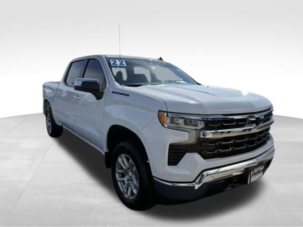 CarBravo Certified, No Added Cert. Fees, 4WD!, Heated Seats, Heated Steering Wheel, Keyless Entry, Pedestrian Detection, Forward Collision Alert, Backup Camera, Power Windows/Locks, Remote Start, Lane Departure Warning, Lane Keep Assist, Cruise Control, Carfax Buyback Guarantee, Silverado 1500 LT, 4D Crew Cab, 2.7L Turbo, 8-Speed Automatic, 4WD, Summit White, Jet Black w/Cloth Seat Trim, 10-Way Power Driver Seat w/Lumbar, 12.3" Multicolor Reconfigurable Digital Display, 120-Volt Bed Mounted Power Outlet, 120-Volt Instrument Panel Power Outlet, 3.42 Rear Axle Ratio, 4-Wheel Disc Brakes, 40/20/40 Front Split-Bench Seat, 6-Speaker Audio System, ABS brakes, All-Star Edition, AM/FM radio: SiriusXM with 360L, Apple CarPlay/Android Auto, Auto High-beam Headlights, Auto-Locking Rear Differential, Automatic Emergency Braking, Automatic temperature control, Bluetooth® For Phone, Brake assist, Bumpers: chrome, Chevrolet Connected Access Capable, Chrome Mirror Caps, Cloth Seat Trim, Color-Keyed Carpeting Floor Covering, Compass, Convenience Package, Deep-Tinted Glass, Dual-Zone Automatic Climate Control, Electric Rear-Window Defogger, Electronic Cruise Control, Electronic Stability Control, Following Distance Indicator, Forward Collision Alert, Front Center Armrest w/Storage, Front Frame-Mounted Black Recovery Hooks, Front Pedestrian Braking, Front reading lights, Fully automatic headlights, HD Rear Vision Camera, Heated door mirrors, Heated Driver & Front Outboard Passenger Seats, Heated Steering Wheel, Hitch Guidance, Illuminated entry, IntelliBeam Automatic High Beam On/Off, Lane Keep Assist w/Lane Departure Warning, Leather Wrapped Steering Wheel, LED Cargo Area Lighting, Manual Tilt/Telescoping Steering Column, Not Equipped w/Steering Column Lock, Occupant sensing airbag, OnStar & Chevrolet Connected Services Capable, Outside temperature display, Overhead airbag, Overhead console, Passenger door bin, Passenger vanity mirror, Power door mirrors, Power driver seat, Power Front Windows w/Driver Express Up/Down, Power Front Windows w/Passenger Express Down, Power Rear Windows w/Express Down, Preferred Equipment Group 2FL, Premium audio system: Chevrolet Infotainment 3 Premium, Radio data system, Radio: Chevrolet Infotainment 3 Premium System, Rear 60/40 Folding Bench Seat (Folds Up), Rear reading lights, Rear step bumper, Remote Vehicle Starter System, Security system, SiriusXM w/360L, Speed-sensing steering, Standard Suspension Package, Steering Wheel Audio Controls, Steering wheel mounted audio controls, Tachometer, Telescoping steering wheel, Theft Deterrent System (Unauthorized Entry), Tilt steering wheel, Traction control, Trailering Package, Trip computer, Variably intermittent wipers, Voltmeter, Wheels: 18" x 8.5" Bright Silver Painted Aluminum, Wi-Fi Hot Spot Capable, Wireless Phone Projection. 2022 Chevrolet Silverado 1500 Summit White LT 4D Crew Cab 4WD 8-Speed Automatic 17/20 City/Highway MPG 2.7L Turbo