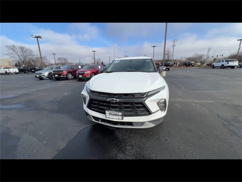Low Miles, CarBravo Certified, Leather Seats, Midnight Edition, Backup Camera, Remote Start, Pwr Dr Seat, Forward Collision Alert, Side Blind Zone Alert, Rear Cross Traffic Alert, Lane Departure Warning, Lane Change Alert, Lane Keep Assist, Heated Seats, Power Liftgate, Apple CarPlay, Aluminum Wheels, Carfax Buyback Guarantee, Blazer LT, 4D Sport Utility, 3.6L V6 SIDI, 9-Speed Automatic with Overdrive, FWD, Summit White, Jet Black w/Perforated Leather-Appointed Seat Trim, 170 Amp Alternator, 4-Wheel Disc Brakes, 6-Speaker Audio System Feature, 6-Way Power Front Passenger Seat Adjuster, 8-Way Power Driver Seat Adjuster, ABS brakes, Air Conditioning, AM/FM radio: SiriusXM with 360L, Apple CarPlay/Android Auto, Auto High-beam Headlights, Auto-dimming door mirrors, Auto-dimming Rear-View mirror, Automatic temperature control, Black Roof-Mounted Side Rails, Brake assist, Bumpers: body-color, Child-Seat-Sensing Airbag, Compass, Driver Confidence Package, Driver door bin, Driver vanity mirror, Dual front impact airbags, Dual front side impact airbags, Electronic Stability Control, Emergency communication system: OnStar and Chevrolet connected services capable, Four wheel independent suspension, Front & Rear Black Bowties, Front anti-roll bar, Front Bucket Seats, Front Center Armrest, Front dual zone A/C, Front reading lights, Fully automatic headlights, Garage door transmitter, Heated door mirrors, Heated Driver & Front Passenger Seats, Illuminated entry, Inside Rear-View Auto-Dimming Mirror, Knee airbag, Lane Change Alert w/Side Blind Zone Alert, Leather Shift Knob, Low tire pressure warning, Midnight/Sport Edition, Not Equipped w/Rear Park Assist, Occupant sensing airbag, Outside Heated Power-Adjustable Body-Color Mirrors, Outside temperature display, Overhead airbag, Overhead console, Passenger door bin, Passenger vanity mirror, Perforated Leather-Appointed Seat Trim, Power door mirrors, Power Driver Lumbar Control, Power Liftgate, Power passenger seat, Preferred Equipment Group 3LT, Premium audio system: Chevrolet Infotainment 3 Plus, Radio data system, Radio: Chevrolet Infotainment 3 Plus System, Rear anti-roll bar, Rear Cross Traffic Alert, Rear Power Programmable Liftgate, Rear reading lights, Rear seat center armrest, Rear window defroster, Rear window wiper, Remote keyless entry, Ride & Handling Suspension, Security system, SiriusXM w/360L, Speed control, Speed-sensing steering, Split folding rear seat, Spoiler, Steering wheel mounted audio controls, Tachometer, Telescoping steering wheel, Tilt steering wheel, Traction control, Trip computer, Turn signal indicator mirrors, Universal Home Remote, Variably intermittent wipers, Voltmeter, Wheels: 18" High Gloss Black Painted Aluminum. 2023 Chevrolet Blazer Summit White LT 4D Sport Utility FWD 9-Speed Automatic with Overdrive 19/27 City/Highway MPG 3.6L V6 SIDI