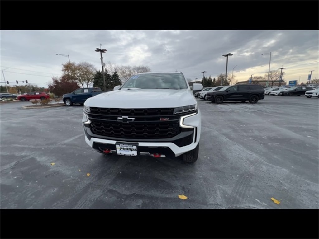 CarBravo Certified, 4WD, Leather Seats, Panoramic Roof, Max Trailering Package, Backup Camera, Pwr Dr Seat, Forward Collision Alert, Navigation, Bose Audio, Lane Departure Warning, Lane Change Alert, Lane Keep Assist, Heated Seats, Heated Steering Wheel, Memory Seating, Power Liftgate, Apple CarPlay, 20" Wheels, Carfax Buyback Guarantee, Tahoe Z71, 4D Sport Utility, EcoTec3 5.3L V8, 10-Speed Automatic with Overdrive, 4WD, Summit White, Jet Black w/Leather-Appointed Seat Trim, 10-Way Power Driver & Passenger Seat Adjusters, 1st & 2nd Row Color-Keyed Carpeted Floor Mats, 2-Speed Active Electronic AutoTrac Transfer Case, 3rd row seats: split-bench, 4-Wheel Disc Brakes, ABS brakes, Advanced Trailering Package, Air Conditioning, AM/FM radio: SiriusXM with 360L, Apple CarPlay/Android Auto, Auto High-beam Headlights, Auto-Dimming Inside Rear-View Mirror, Automatic temperature control, Black Tubular Assist Steps, Bose 9-Speaker Stereo Audio System Feature, Brake assist, Bright Front & Rear Door Sill Plates, Bumpers: body-color, Color-Keyed Carpeting Floor Covering, Compass, Driver & Front Outboard Passenger Airbags, Driver door bin, Driver vanity mirror, Dual front impact airbags, Dual front side impact airbags, Dual-Pane Power Panoramic Sunroof, Electronic Stability Control, Emergency communication system: OnStar and Chevrolet connected services capable, Enhanced Driver Information Center, Extra Capacity Cooling System, Floor Console w/Storage Area, Four wheel independent suspension, Front anti-roll bar, Front Bucket Seats, Front Center Armrest, Front dual zone A/C, Front High-Approach Angle Fascia, Front High-Back Reclining Bucket Seats, Front reading lights, Fully automatic headlights, Garage door transmitter, Hands-Free Rear Power Programmable Liftgate, Heated Driver & Front Passenger Seats, Hill Descent Control, Hitch Guidance w/Hitch View, Illuminated entry, Infotainment Display, Integrated Trailer Brake Controller, Leather-Appointed Seat Trim, LED Daytime Running Lamps, License Plate Front Mounting Package, Low tire pressure warning, Max Trailering Package, Memory seat, Memory Settings for Driver, Navigation System, Occupant sensing airbag, Outside temperature display, Overhead airbag, Overhead console, Passenger door bin, Passenger vanity mirror, Power door mirrors, Power Liftgate, Preferred Equipment Group 2Z7, Premium Smooth Ride Suspension, Radio: Chevrolet Infotainment 3 Premium System, Rain sensing wipers, Rear air conditioning, Rear anti-roll bar, Rear reading lights, Rear seat center armrest, Rear window defroster, Rear window wiper, Red Horizontal-Mounted Recovery Hooks, Remote Start, Security system, SiriusXM Radio w/360L, Smart Trailer Integration Indicator, Speed control, Speed-sensing steering, Spoiler, Steering wheel mounted audio controls, Tachometer, Telescoping steering wheel, Tilt steering wheel, Traction control, Trip computer, Universal Home Remote, Variably intermittent wipers, Voltmeter, Wheels: 20" x 9" Machined Aluminum, Wireless Charging, Wrapped Steering Wheel. 2023 Chevrolet Tahoe Summit White Z71 4D Sport Utility 4WD 10-Speed Automatic with Overdrive 15/20 City/Highway MPG EcoTec3 5.3L V8