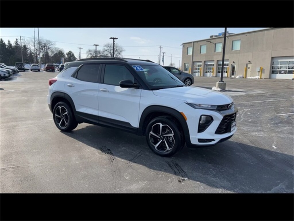 CarBravo Certified, AWD, Backup Camera, Remote Start, Forward Collision Alert, Rear Cross Traffic Alert, Lane Departure Warning, Heated Seats, Apple CarPlay, Carfax Buyback Guarantee, TrailBlazer RS, 4D Sport Utility, 1.3L Ecotec Turbo DOHC SIDI w/VVT, 9-Speed Automatic, AWD, Summit White, Jet Black w/Red Accents w/Cloth w/Leatherette Seat Trim, 1 Type-A & 1 Type-C USB Charging-Only Ports, 120-Volt Power Outlet, 2-Way Adjustable Front Head Restraints, 2-Way Power Driver Lumbar Seat Adjuster, 3.17 Axle Ratio, 4-Way Manual Front Passenger Seat Adjuster, 4-Wheel Disc Brakes, 6-Speaker Audio System Feature w/Amplifier, 7" Diagonal Color Touchscreen, 8-Way Power Driver Seat Adjuster, 8" Diagonal Color Touchscreen Display, ABS brakes, AM/FM radio: SiriusXM, Auto High-beam Headlights, Brake assist, Bumpers: body-color, Cabin Humidity Sensor, Cloth w/Leatherette Seat Trim, Compass, Confidence II Package, Convenience Package, Delay-off headlights, Driver & Front Passenger Illuminated Vanity Mirrors, Driver door bin, Driver vanity mirror, Dual front impact airbags, Dual front side impact airbags, Dual-Pane Panoramic Power Sunroof, Electronic Stability Control, Emergency communication system: OnStar and Chevrolet connected services capable, Exterior Parking Camera Rear, Flat-Folding Front Passenger Seatback, Front anti-roll bar, Front Bucket Seats, Front Center Armrest, Front fog lights, Front reading lights, Front wheel independent suspension, Fully automatic headlights, Hands-Free Power Programmable Liftgate, Heated door mirrors, Heated Driver & Front Passenger Seats, Heated Steering Wheel, Illuminated entry, Inside Rear-View Auto-Dimming Mirror, Knee airbag, Leather Shift Knob, Leather steering wheel, Low tire pressure warning, Mosaic Black Metallic Two-Tone Roof, Not Equipped w/Rear Park Assist, Occupant sensing airbag, Overhead airbag, Overhead console, Panic alarm, Passenger door bin, Passenger vanity mirror, Power door mirrors, Power driver seat, Preferred Equipment Group 1RS, Radio: Chevrolet Infotainment 3 System, Rear Park Assist, Rear seat center armrest, Rear side impact airbag, Rear window defroster, Rear window wiper, Remote keyless entry, Ride & Handling Suspension, Security system, Single-Zone Auto Climate Control Air Conditioning, SiriusXM Radio, Speed control, Split folding rear seat, Spoiler, Steering wheel mounted audio controls, Sun & Liftgate Package, Tachometer, Telescoping steering wheel, Tilt steering wheel, Traction control, Trip computer, Variably intermittent wipers, Wheels: 18" High Gloss Black Machined Aluminum, Wireless Apple CarPlay/Android Auto. 2023 Chevrolet TrailBlazer Summit White RS 4D Sport Utility AWD 9-Speed Automatic 26/30 City/Highway MPG 1.3L Ecotec Turbo DOHC SIDI w/VVT