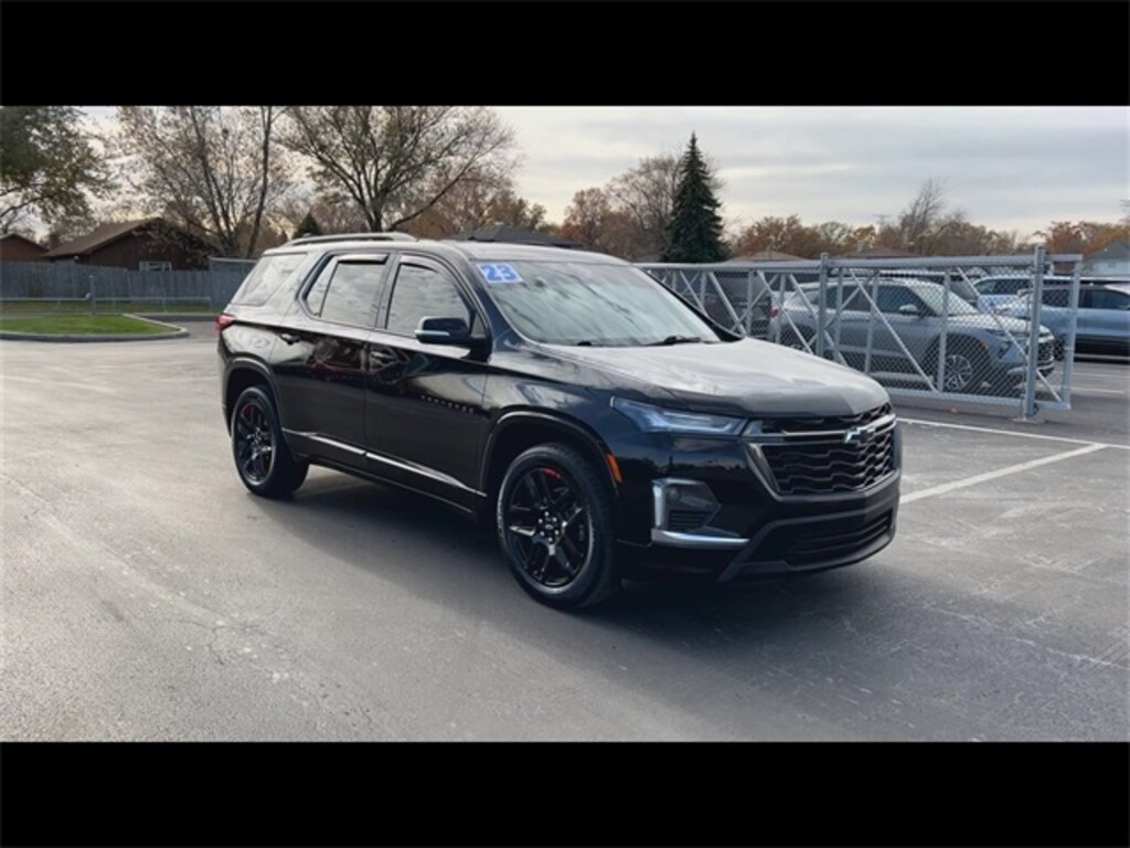 CarBravo Certified, ONE Owner!, Accident FREE, No Added Cert. Fees, Certified Multi-Point Inspection, Fully Serviced, Sunroof, AWD!, Heated Seats, Heated Steering Wheel, Apple CarPlay, Keyless Entry, Forward Collision Alert, Side Blind Zone Alert, Rear Cross Traffic Alert, Backup Camera, BLUETOOTH, Power Windows/Locks, Power Seating, LEATHER Wrap Steering Wheel, PUSH BUTTON START!, Outside Heated Pwr Adj Mirrors, AUTOMATIC EMERGENCY BRAKING, Redline Edition, Memory Seating, INTELLIBEAM, Remote Start, Power Liftgate, Lane Departure Warning, Rear Park Assist, Lane Keep Assist, Lane Change Alert, Cruise Control, Carfax Buyback Guarantee, Remote Power Liftgate, 20" WHEELS, Traverse Premier, 4D Sport Utility, 3.6L V6 SIDI VVT, 9-Speed Automatic, AWD, Mosaic Black Metallic, Jet Black w/Perforated Leather-Appointed Seat Trim, 10 Speakers, 1st & 2nd Row All-Weather Floor Liner (LPO), 3.49 Axle Ratio, 3rd Row All-Weather Floor Liner (LPO), 3rd row seats: split-bench, 4-Wheel Disc Brakes, 6-Way Power Front Passenger Seat, 8-Way Power Driver Seat Adjuster, ABS brakes, Air Conditioning, Alloy wheels, AM/FM radio: SiriusXM with 360L, Apple CarPlay/Android Auto, Auto High-beam Headlights, Auto-dimming door mirrors, Auto-dimming Rear-View mirror, Automatic temperature control, Black Bowtie, Black Door Handles, Black Roof Rails, Bose Premium 10-Speaker Audio System Feature, Brake assist, Bumpers: body-color, Compass, Delay-off headlights, Driver door bin, Driver vanity mirror, Dual front impact airbags, Dual front side impact airbags, Dual SkyScape 2-Panel Power Sunroof, Electronic Stability Control, Emergency communication system, Exterior Parking Camera Rear, Floor Liner Package (LPO), Four wheel independent suspension, Front anti-roll bar, Front Bucket Seats, Front Center Armrest, Front dual zone A/C, Front License Plate Bracket Mounting Package, Front Passenger 2-Way Power Lumbar, Front reading lights, Fully automatic headlights, Garage door transmitter, Heated 2nd Row Outboard Position Seats, Heated door mirrors, Heated Driver & Front Passenger Seats, Heated front seats, Heated rear seats, Heated steering wheel, Illuminated entry, Integrated Cargo Liner (LPO), Leather steering wheel, Low tire pressure warning, Memory seat, Navigation System, Occupant sensing airbag, Ornamentation, Outside temperature display, Overhead airbag, Overhead console, Panic alarm, Passenger door bin, Passenger vanity mirror, Perforated Leather-Appointed Seat Trim, Power door mirrors, Power Driver Lumbar Control, Power driver seat, Power Liftgate, Power passenger seat, Power steering, Power windows, Preferred Equipment Group 1LZ, Premium audio system: Chevrolet Infotainment 3 Plus, Radio data system, Radio: Chevrolet Infotainment 3 Plus System w/Navi, Rear air conditioning, Rear anti-roll bar, Rear reading lights, Rear window defroster, Rear window wiper, Redline Accent Decals (LPO), Redline Edition, Remote keyless entry, Security system, SiriusXM w/360L, Speed control, Speed-sensing steering, Spoiler, Steering wheel memory, Steering wheel mounted audio controls, Tachometer, Telescoping steering wheel, Tilt steering wheel, Traction control, Trip computer, Turn signal indicator mirrors, Variably intermittent wipers, Ventilated Driver & Front Passenger Seats, Ventilated front seats, Voltmeter, Wheels: 20" Gloss Black Painted Alum w/Red Stripes, Wheels: 20" Metallic Machined-Face Aluminum. 2023 Chevrolet Traverse Mosaic Black Metallic Premier 4D Sport Utility AWD 9-Speed Automatic 17/25 City/Highway MPG 3.6L V6 SIDI VVT
