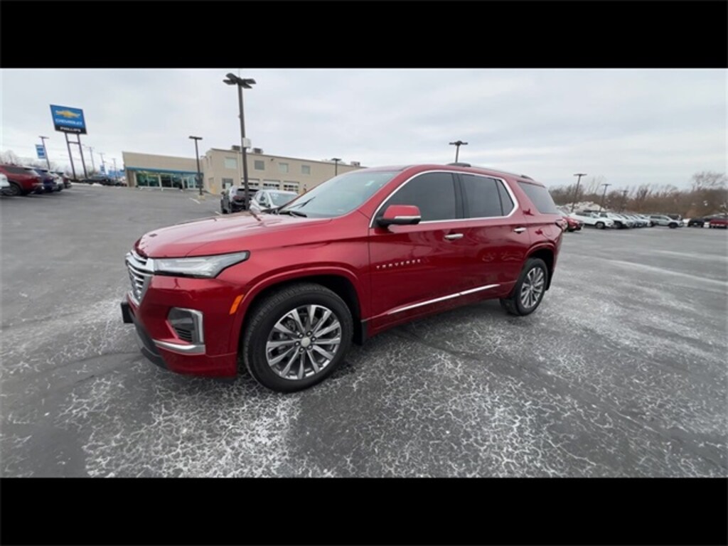 CarBravo Certified, AWD, Leather Seats, Panoramic Roof, Backup Camera, Remote Start, 7 Passenger Seating, Pwr Dr Seat, Forward Collision Alert, Navigation, Bose Audio, Side Blind Zone Alert, Rear Cross Traffic Alert, Lane Departure Warning, Lane Change Alert, Lane Keep Assist, Rear Park Assist, Heated Seats, Heated Steering Wheel, Ventilated Seats, Memory Seating, Power Liftgate, Apple CarPlay, 20" Wheels, Carfax Buyback Guarantee, Traverse Premier, 4D Sport Utility, 3.6L V6 SIDI VVT, 9-Speed Automatic, AWD, Radiant Red Tintcoat, Jet Black w/Leather-Appointed Seat Trim, 3rd row seats: split-bench, 4-Wheel Disc Brakes, 6-Way Power Front Passenger Seat, 8-Way Power Driver Seat Adjuster, ABS brakes, Air Conditioning, AM/FM radio: SiriusXM with 360L, Apple CarPlay/Android Auto, Auto High-beam Headlights, Auto-dimming door mirrors, Auto-dimming Rear-View mirror, Automatic temperature control, Bose Premium 10-Speaker Audio System Feature, Brake assist, Bumpers: body-color, Compass, Driver door bin, Driver vanity mirror, Dual front impact airbags, Dual front side impact airbags, Dual SkyScape 2-Panel Power Sunroof, Electronic Stability Control, Emergency communication system, Exterior Parking Camera Rear, Four wheel independent suspension, Front anti-roll bar, Front Bucket Seats, Front Center Armrest, Front dual zone A/C, Front License Plate Bracket Mounting Package, Front Passenger 2-Way Power Lumbar, Front reading lights, Fully automatic headlights, Garage door transmitter, Heated 2nd Row Outboard Position Seats, Heated door mirrors, Heated Driver & Front Passenger Seats, Heated steering wheel, Illuminated entry, Leather steering wheel, Low tire pressure warning, Memory seat, Navigation System, Occupant sensing airbag, Outside temperature display, Overhead airbag, Overhead console, Passenger door bin, Passenger vanity mirror, Perforated Leather-Appointed Seat Trim, Power door mirrors, Power Driver Lumbar Control, Power Liftgate, Power passenger seat, Preferred Equipment Group 1LZ, Premium audio system: Chevrolet Infotainment 3 Plus, Radio data system, Radio: Chevrolet Infotainment 3 Plus System w/Navi, Rear air conditioning, Rear anti-roll bar, Rear reading lights, Rear window defroster, Rear window wiper, Remote keyless entry, Retractable Cargo Shade, Security system, SiriusXM w/360L, Speed control, Speed-sensing steering, Spoiler, Steering wheel memory, Steering wheel mounted audio controls, Tachometer, Telescoping steering wheel, Tilt steering wheel, Traction control, Trip computer, Turn signal indicator mirrors, Variably intermittent wipers, Ventilated Driver & Front Passenger Seats, Voltmeter, Wheels: 20" Metallic Machined-Face Aluminum. 2023 Chevrolet Traverse Radiant Red Tintcoat Premier 4D Sport Utility AWD 9-Speed Automatic 17/25 City/Highway MPG 3.6L V6 SIDI VVT