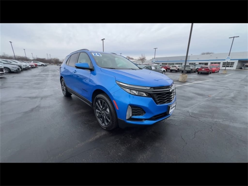 CarBravo Certified, ONE Owner!, Accident FREE, No Added Cert. Fees, Sunroof, AWD!, Heated Seats, Heated Steering Wheel, Apple CarPlay, Keyless Entry, Forward Collision Alert, Side Blind Zone Alert, Rear Cross Traffic Alert, Backup Camera, BLUETOOTH, Power Windows/Locks, Power Seating, PUSH BUTTON START!, Confidence & Convenience Package, Remote Start, Power Liftgate, Rear Park Assist, Lane Keep Assist, Lane Change Alert, Cruise Control, Carfax Buyback Guarantee, Equinox RS, 4D Sport Utility, 1.5L DOHC, 6-Speed Automatic Electronic with Overdrive, AWD, Riptide Blue Metallic, Jet Black With Red Accents Leather, 120-Volt Power Outlet, 19" Aluminum Wheels, 2 Rear USB Charging-Only Ports, 2 USB Data Ports, 2 USB Data Ports w/SD Card Reader, 2 USB Ports & Auxiliary Input Jack, 2-Way Power Driver Lumbar Control Seat Adjuster, 3.87 Final Drive Axle Ratio, 4-Wheel Disc Brakes, ABS brakes, Adaptive Cruise Control, Advanced Safety Package, Auto High-beam Headlights, Automatic temperature control, Bluetooth® For Phone, Bose Premium 7-Speaker Audio System Feature, Brake assist, Bumpers: body-color, Cold Air Grille Shutter, Compass, Delay-off headlights, Driver 8-Way Power Seat Adjuster, Driver door bin, Driver Seatback Map Pocket, Driver vanity mirror, Dual front impact airbags, Dual front side impact airbags, Electronic Stability Control, Emergency communication system: OnStar and Chevrolet connected services capable, Four wheel independent suspension, Front anti-roll bar, Front Bucket Seats, Front Center Armrest, Front dual zone A/C, Front Passenger 4-Way Manual Seat Adjuster, Front reading lights, Fully automatic headlights, HD Surround Vision, Heated door mirrors, Heated Driver & Front Passenger Seats, Heated Steering Wheel, Illuminated entry, Infotainment Package, Integrated Cargo Liner (LPO), Low tire pressure warning, Occupant sensing airbag, Outside Heated Power-Adjustable Mirrors, Outside temperature display, Overhead airbag, Overhead console, Panic alarm, Passenger door bin, Passenger vanity mirror, Perforated Leather-Appointed Seat Trim, Power door mirrors, Power driver seat, Power Liftgate, Power Sunroof, Preferred Equipment Group 1RS, Premium Cloth Seat Trim, Radio: Chevrolet Infotainment 3 Plus System, Rear anti-roll bar, Rear reading lights, Rear seat center armrest, Rear window defroster, Rear window wiper, Remote keyless entry, Roof rack: rails only, RS Leather Package, Safety & Infotainment Package, Security system, Speed control, Speed-sensing steering, Split folding rear seat, Spoiler, Steering wheel mounted audio controls, Tachometer, Telescoping steering wheel, Tilt steering wheel, Traction control, Trip computer, Variably intermittent wipers. 2024 Chevrolet Equinox Riptide Blue Metallic RS 4D Sport Utility AWD 6-Speed Automatic Electronic with Overdrive 24/30 City/Highway MPG 1.5L DOHC