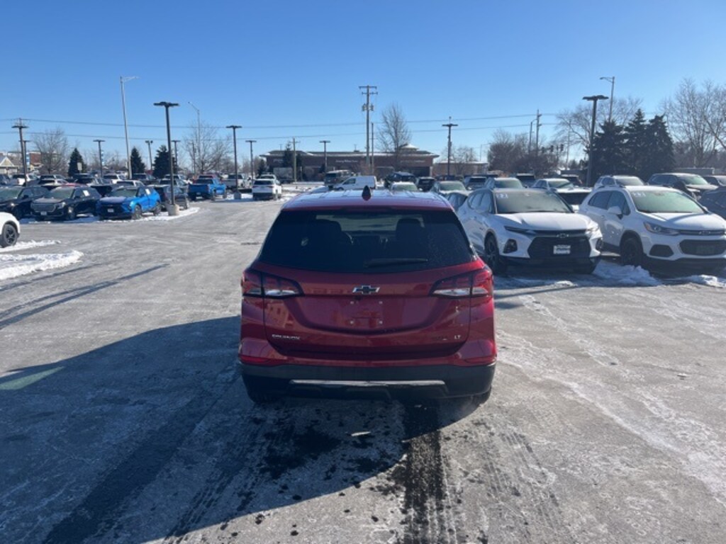 Low Miles, CarBravo Certified, Trailering Package, Backup Camera, Remote Start, Pwr Dr Seat, Forward Collision Alert, Side Blind Zone Alert, Rear Cross Traffic Alert, Lane Departure Warning, Lane Change Alert, Lane Keep Assist, Heated Seats, Power Liftgate, Apple CarPlay, Aluminum Wheels, Carfax Buyback Guarantee, Equinox LT, 4D Sport Utility, 1.5L DOHC, 6-Speed Automatic Electronic with Overdrive, FWD, Radiant Red Tintcoat, Jet Black w/Premium Cloth Seat Trim, 17" Aluminum Wheels, 2 Rear USB Charging-Only Ports, 2 USB Ports & Auxiliary Input Jack, 2-Way Power Driver Lumbar Control Seat Adjuster, 4-Wheel Disc Brakes, 6-Speaker Audio System Feature, ABS brakes, Air Conditioning, AM/FM radio: SiriusXM, Auto High-beam Headlights, Automatic temperature control, Bluetooth® For Phone, Brake assist, Bumpers: body-color, Cold Air Grille Shutter, Compass, Driver 8-Way Power Seat Adjuster, Driver door bin, Driver vanity mirror, Dual front impact airbags, Dual front side impact airbags, Electronic Stability Control, Emergency communication system: OnStar and Chevrolet connected services capable, Four wheel independent suspension, Front anti-roll bar, Front Bucket Seats, Front Center Armrest, Front dual zone A/C, Front Passenger 4-Way Manual Seat Adjuster, Front reading lights, Fully automatic headlights, Heated door mirrors, Heated Driver & Front Passenger Seats, Illuminated entry, Low tire pressure warning, Occupant sensing airbag, Outside temperature display, Overhead airbag, Overhead console, Passenger door bin, Passenger vanity mirror, Power door mirrors, Power driver seat, Power Liftgate, Preferred Equipment Group 1LT, Premium audio system: Chevrolet Infotainment 3, Premium Cloth Seat Trim, Radio data system, Radio: Chevrolet Infotainment 3 System w/AM/FM, Rear anti-roll bar, Rear reading lights, Rear seat center armrest, Rear window defroster, Rear window wiper, Remote keyless entry, Security system, SiriusXM, Speed control, Speed-sensing steering, Split folding rear seat, Spoiler, Steering wheel mounted audio controls, Tachometer, Telescoping steering wheel, Tilt steering wheel, Traction control, Trip computer, Variably intermittent wipers. 2024 Chevrolet Equinox Radiant Red Tintcoat LT 4D Sport Utility FWD 6-Speed Automatic Electronic with Overdrive 26/31 City/Highway MPG 1.5L DOHC