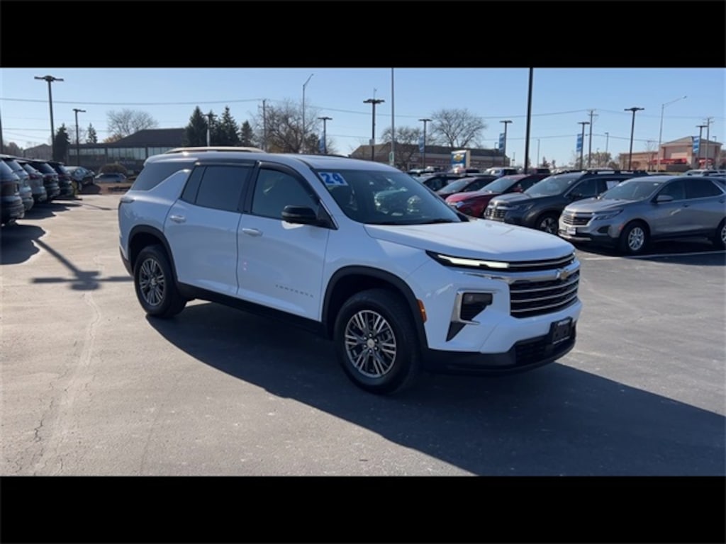 Low Miles, CarBravo Certified, Panoramic Roof, Backup Camera, Remote Start, 7 Passenger Seating, Pwr Dr Seat, Forward Collision Alert, Navigation, Lane Departure Warning, Lane Change Alert, Lane Keep Assist, Heated Seats, Power Liftgate, Apple CarPlay, Aluminum Wheels, Carfax Buyback Guarantee, Traverse LT 1LT, 4D Sport Utility, 2.5L DOHC, 8-Speed Automatic, FWD, Summit White, Jet Black w/Premium Cloth Seat Trim, 3rd row seats: split-bench, 4-Way Manual Front Passenger Seat Adjuster, 4-Wheel Disc Brakes, 6-Speaker Audio System Feature, 8-Way Power Driver Seat Adjuster, ABS brakes, Air Conditioning, AM/FM radio: SiriusXM with 360L, Apple CarPlay/Android Auto, Auto High-beam Headlights, Automatic temperature control, Brake assist, Bumpers: body-color, Compass, Driver 4-Way Power Lumbar Seat Adjuster, Driver door bin, Driver vanity mirror, Dual front impact airbags, Dual front side impact airbags, Electronic Stability Control, Emergency communication system, Exterior Parking Camera Rear, Four wheel independent suspension, Front anti-roll bar, Front Bucket Seats, Front Center Armrest, Front dual zone A/C, Front reading lights, Fully automatic headlights, Heated door mirrors, Heated front seats, Heated steering wheel, Illuminated entry, Low tire pressure warning, Navigation System, Occupant sensing airbag, Outside temperature display, Overhead airbag, Overhead console, Passenger door bin, Passenger vanity mirror, Power door mirrors, Power Dual Glass Panoramic Sliding Sunroof, Power Liftgate, Preferred Equipment Group 1LT, Premium Cloth Seat Trim, Radio data system, Radio: 17.7" Diagonal Display, Rear air conditioning, Rear anti-roll bar, Rear reading lights, Rear window defroster, Rear window wiper, Remote keyless entry, Security system, SiriusXM w/360L, Speed control, Speed-sensing steering, Spoiler, Steering wheel mounted audio controls, Tachometer, Telescoping steering wheel, Tilt steering wheel, Traction control, Trip computer, Turn signal indicator mirrors, Variably intermittent wipers, Voltmeter, Wheels: 18" Grazen Metallic Machined-Face Aluminum. 2024 Chevrolet Traverse Summit White LT 4D Sport Utility 1LT FWD 8-Speed Automatic 20/27 City/Highway MPG 2.5L DOHC