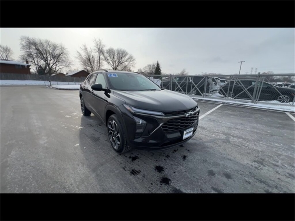 CarBravo Certified, ONE Owner!, Accident FREE, No Added Cert. Fees, Certified Multi-Point Inspection, Heated Seats, Heated Steering Wheel, Apple CarPlay, Keyless Entry, Side Blind Zone Alert, Rear Cross Traffic Alert, Backup Camera, BLUETOOTH, Power Windows/Locks, Power Seating, PUSH BUTTON START!, Driver Confidence Package, FRONT PEDESTRIAN BRAKING, Turbo!, INTELLIBEAM, Remote Start, Lane Departure Warning, Rear Park Assist, Lane Keep Assist, Lane Change Alert, 19" WHEELS, Adaptive Cruise Control, Carfax Buyback Guarantee, Trax 2RS, 4D Sport Utility, 1.2L Ecotec Turbo DOHC DI w/VVT, 6-Speed Automatic, FWD, Mosaic Black Metallic, Jet Black With Red Accents Leatherette, 2-Way Adjustable Front Head Restraints, 3.50 Final Drive Axle Ratio, 4-Way Manual Front Passenger Seat Adjuster, 4-Wheel Disc Brakes, 6-Speaker Audio System Feature, 6-Way Manual Driver Seat Adjuster, ABS brakes, Adaptive Cruise Control, Air Conditioning, AM/FM radio: SiriusXM, Brake assist, Bumpers: body-color, Compass, Driver Confidence Package, Driver door bin, Driver vanity mirror, Dual front impact airbags, Dual front side impact airbags, Electronic Stability Control, Emergency communication system: OnStar and Chevrolet connected services capable, Exterior Parking Camera Rear, Front anti-roll bar, Front Bucket Seats, Front Center Armrest, Front reading lights, Front wheel independent suspension, Fully automatic headlights, Heated door mirrors, Heated Driver & Front Passenger Seats, Heated steering wheel, Illuminated entry, Lane Change Alert w/Side Blind Zone Alert, Low tire pressure warning, Occupant sensing airbag, Outside temperature display, Overhead airbag, Overhead console, Panic alarm, Passenger door bin, Passenger vanity mirror, Power door mirrors, Power steering, Power windows, Preferred Equipment Group 2RS, Premium audio system: Chevrolet Infotainment 3, Radio data system, Radio: Audio System w/AM/FM, Rear Cross-Traffic Alert, Rear Park Assist, Rear Park Assist (DISC), Rear window defroster, Rear window wiper, Remote keyless entry, Security system, SiriusXM, Speed control, Split folding rear seat, Spoiler, Sport steering wheel, Steering wheel mounted audio controls, Tachometer, Telescoping steering wheel, Tilt steering wheel, Traction control, Trip computer, Variably intermittent wipers, Wheels: 19" Black-Painted Machined Aluminum. 2024 Chevrolet Trax Mosaic Black Metallic 2RS 4D Sport Utility FWD 6-Speed Automatic 28/32 City/Highway MPG 1.2L Ecotec Turbo DOHC DI w/VVT