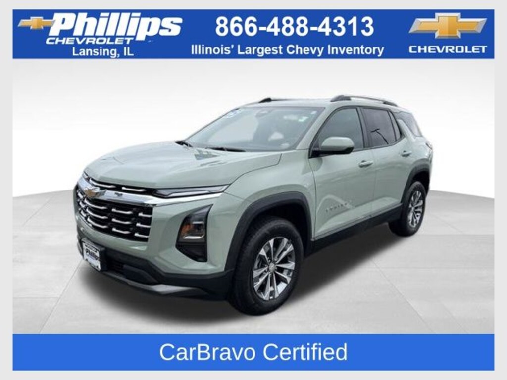 CarBravo Certified, ONE Owner!, Carfax Buyback Guarantee, Equinox LT, 4D Sport Utility, 1.5L DOHC, CVT, FWD, Cacti Green, Black Premium Synthetic, 2-Way Power Driver Lumbar Control Seat Adjuster, AutoSense Hands-Free Power Programmable Liftgate, Cabin Humidity & Windshield Sensor, Convenience Package II, Driver 8-Way Power Seat Adjuster, Dual-Zone Automatic Climate Control, Evotex Seat Trim, Heated Wiper Park, Intermittent Front Rain-Sensing Wipers, Overhead Sunglass Storage, Preferred Equipment Group 1LT, Programmable Universal Home Remote, Wireless Charging for Devices. 2025 Chevrolet Equinox Cacti Green LT 4D Sport Utility FWD CVT 26/28 City/Highway MPG 1.5L DOHC