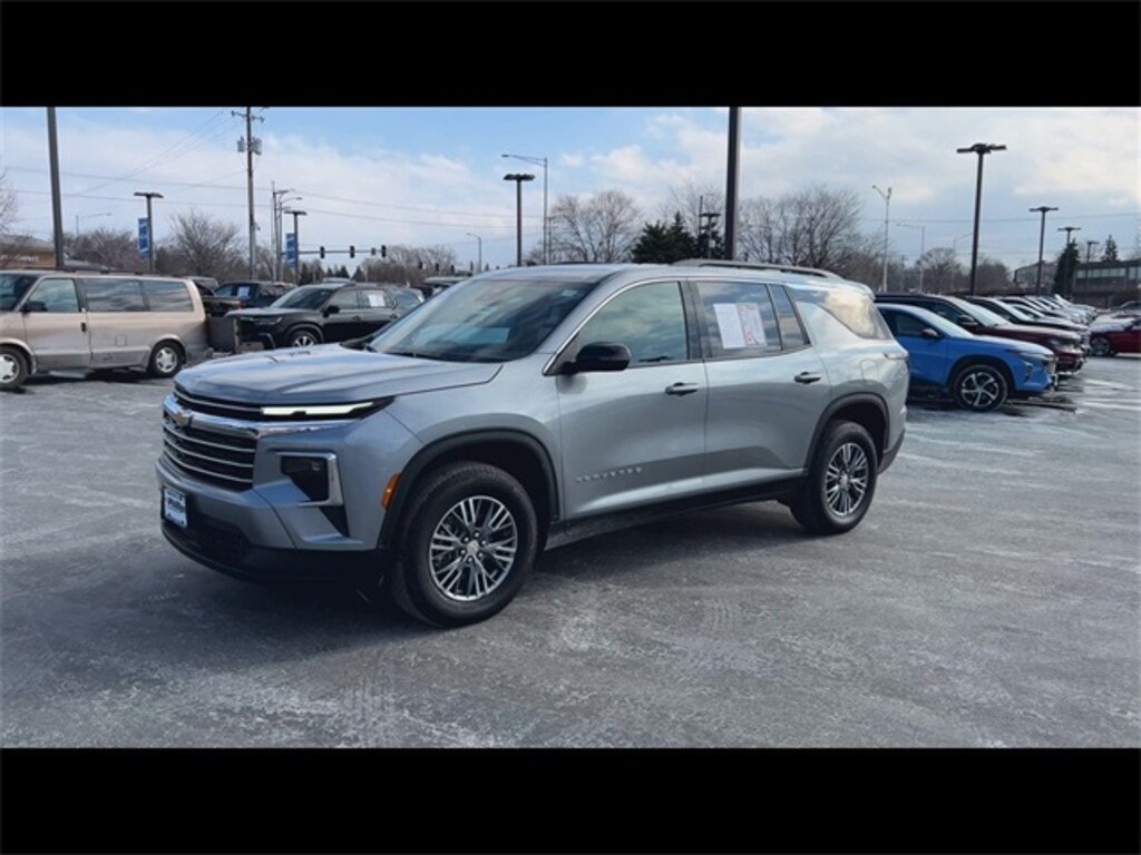 Low Miles, CarBravo Certified, AWD, Backup Camera, Remote Start, 7 Passenger Seating, Pwr Dr Seat, Forward Collision Alert, Navigation, Rear Cross Traffic Alert, Lane Departure Warning, Lane Keep Assist, Rear Park Assist, Adaptive Cruise Control, Heated Seats, Heated Steering Wheel, Power Liftgate, Apple CarPlay, Aluminum Wheels, Carfax Buyback Guarantee, Traverse LT 2LT, 4D Sport Utility, 2.5L DOHC, 8-Speed Automatic, AWD, Sterling Gray Metallic, Jet Black w/Evotex Seat Trim, 3rd row seats: split-bench, 4-Way Manual Front Passenger Seat Adjuster, 4-Wheel Disc Brakes, 6-Speaker Audio System Feature, 8-Way Power Driver Seat Adjuster, ABS brakes, Air Conditioning, AM/FM radio: SiriusXM with 360L, Apple CarPlay/Android Auto, Auto High-beam Headlights, Automatic temperature control, Brake assist, Bumpers: body-color, Child-Seat-Sensing Airbag, Compass, Driver door bin, Driver vanity mirror, Dual front impact airbags, Dual front side impact airbags, Electronic Stability Control, Emergency communication system: OnStar, Four wheel independent suspension, Front anti-roll bar, Front Bucket Seats, Front Center Armrest, Front dual zone A/C, Front reading lights, Fully automatic headlights, Heated door mirrors, Heated front seats, Heated steering wheel, Illuminated entry, Low tire pressure warning, Navigation System, Occupant sensing airbag, Outside temperature display, Overhead airbag, Overhead console, Passenger door bin, Passenger vanity mirror, Power door mirrors, Power Liftgate, Preferred Equipment Group 2LT, Premium Cloth Seat Trim, Radio data system, Radio: : Audio System w/17.7" Diagonal Display, Rear air conditioning, Rear anti-roll bar, Rear reading lights, Rear window defroster, Rear window wiper, Remote keyless entry, Security system, SiriusXM with 360L Trial Subscription, Speed control, Speed-sensing steering, Spoiler, Steering wheel mounted audio controls, Tachometer, Telescoping steering wheel, Tilt steering wheel, Traction control, Trip computer, Turn signal indicator mirrors, Variably intermittent wipers, Voltmeter, Wheels: 18" Grazen Metallic Machined-Face Aluminum. 2025 Chevrolet Traverse Sterling Gray Metallic LT 4D Sport Utility 2LT AWD 8-Speed Automatic 19/24 City/Highway MPG 2.5L DOHC