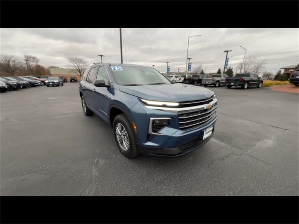 CarBravo Certified, AWD, Backup Camera, Remote Start, 7 Passenger Seating, Pwr Dr Seat, Forward Collision Alert, Navigation, Lane Departure Warning, Lane Change Alert, Lane Keep Assist, Rear Park Assist, Adaptive Cruise Control, Heated Seats, Power Liftgate, Apple CarPlay, Aluminum Wheels, Carfax Buyback Guarantee, Traverse LT 2LT, 4D Sport Utility, 2.5L DOHC, 8-Speed Automatic, AWD, Lakeshore Blue Metallic, Jet Black w/Premium Cloth Seat Trim, 3rd row seats: split-bench, 4-Way Manual Front Passenger Seat Adjuster, 4-Wheel Disc Brakes, 6-Speaker Audio System Feature, 8-Way Power Driver Seat Adjuster, ABS brakes, AM/FM radio: SiriusXM with 360L, Apple CarPlay/Android Auto, Auto High-beam Headlights, Automatic temperature control, Brake assist, Bumpers: body-color, Child-Seat-Sensing Airbag, Compass, Driver door bin, Driver vanity mirror, Dual front impact airbags, Dual front side impact airbags, Electronic Stability Control, Emergency communication system: OnStar, Four wheel independent suspension, Front anti-roll bar, Front Bucket Seats, Front Center Armrest, Front dual zone A/C, Front reading lights, Fully automatic headlights, Heated door mirrors, Heated front seats, Heated steering wheel, Illuminated entry, Low tire pressure warning, Navigation System, Occupant sensing airbag, Outside temperature display, Overhead airbag, Overhead console, Passenger door bin, Passenger vanity mirror, Power door mirrors, Power Liftgate, Preferred Equipment Group 2LT, Premium Cloth Seat Trim, Radio data system, Radio: Audio System w/17.7" Diagonal Display, Rear air conditioning, Rear anti-roll bar, Rear reading lights, Rear window defroster, Rear window wiper, Remote keyless entry, Security system, SiriusXM w/360L Trial Subscription, Speed control, Speed-sensing steering, Spoiler, Steering wheel mounted audio controls, Tachometer, Telescoping steering wheel, Tilt steering wheel, Traction control, Trip computer, Turn signal indicator mirrors, Variably intermittent wipers, Voltmeter, Wheels: 18" Grazen Metallic Machined-Face Aluminum. 2025 Chevrolet Traverse Lakeshore Blue Metallic LT 4D Sport Utility 2LT AWD 8-Speed Automatic 19/24 City/Highway MPG 2.5L DOHC