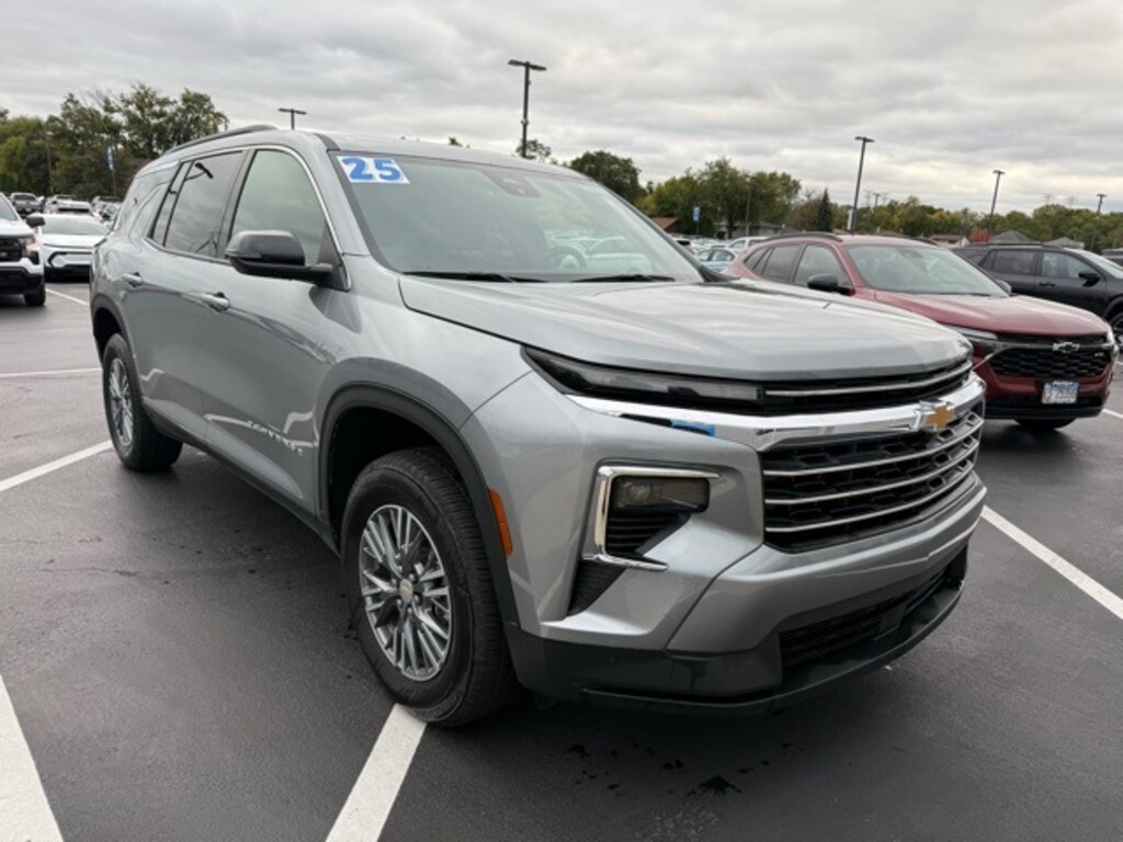 CarBravo Certified, Carfax Buyback Guarantee, ONE Owner!, Accident FREE, No Added Cert. Fees, Certified Multi-Point Inspection, Low Mileage!, Heated Seats, Heated Steering Wheel, Apple CarPlay, Keyless Entry, Forward Collision Alert, Side Blind Zone Alert, Rear Cross Traffic Alert, Backup Camera, BLUETOOTH, Power Windows/Locks, Power Seating, LEATHER Wrap Steering Wheel, PUSH BUTTON START!, Safety Alert Seat, Lane Departure Warning, Rear Park Assist, Blind Spot Monitoring, Traverse LT 1LT, 4D Sport Utility, 2.5L DOHC, 8-Speed Automatic, FWD, Sterling Gray Metallic, Jet Black w/Evotex Seat Trim, 3rd row seats: split-bench, 4-Way Manual Front Passenger Seat Adjuster, 4-Wheel Disc Brakes, 6-Speaker Audio System Feature, 8-Way Power Driver Seat Adjuster, ABS brakes, Air Conditioning, AM/FM radio: SiriusXM with 360L, Apple CarPlay/Android Auto, Auto High-beam Headlights, Automatic temperature control, Brake assist, Bumpers: body-color, Child-Seat-Sensing Airbag, Compass, Driver door bin, Driver vanity mirror, Dual front impact airbags, Dual front side impact airbags, Electronic Stability Control, Emergency communication system: OnStar, Evotex Seat Trim, Four wheel independent suspension, Front anti-roll bar, Front Bucket Seats, Front Center Armrest, Front dual zone A/C, Front reading lights, Fully automatic headlights, Heated door mirrors, Heated front seats, Heated steering wheel, Illuminated entry, Low tire pressure warning, Navigation System, Occupant sensing airbag, Outside temperature display, Overhead airbag, Overhead console, Passenger door bin, Passenger vanity mirror, Power door mirrors, Power Liftgate, Preferred Equipment Group 1LT, Radio data system, Radio: Audio System w/17.7" Diagonal Display, Rear air conditioning, Rear anti-roll bar, Rear reading lights, Rear window defroster, Rear window wiper, Remote keyless entry, Security system, SiriusXM w/360L Trial Subscription, Speed control, Speed-sensing steering, Spoiler, Steering wheel mounted audio controls, Tachometer, Telescoping steering wheel, Tilt steering wheel, Traction control, Trip computer, Turn signal indicator mirrors, Variably intermittent wipers, Voltmeter, Wheels: 18" Grazen Metallic Machined-Face Aluminum. 2025 Chevrolet Traverse Sterling Gray Metallic LT 4D Sport Utility 1LT FWD 8-Speed Automatic 20/27 City/Highway MPG 2.5L DOHC