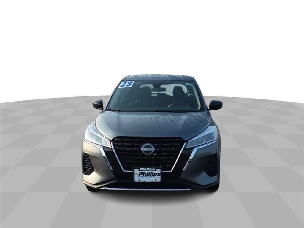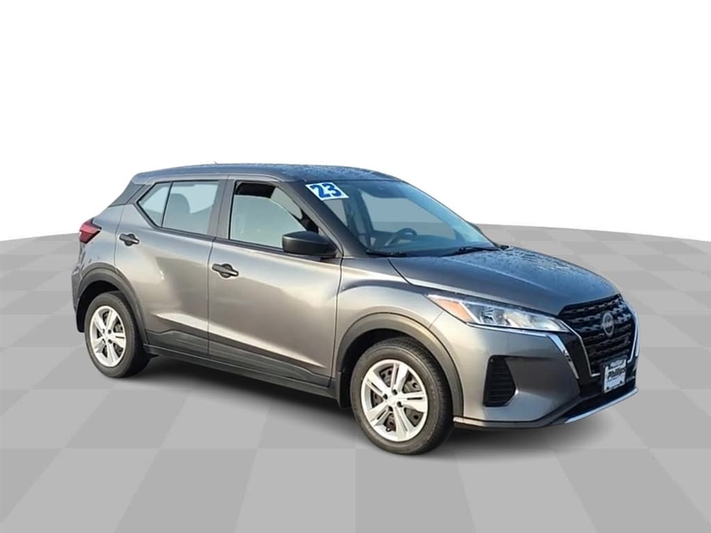 Carfax Buyback Guarantee, Carbravo Certified, One Owner, Carfax- Accident Free, No Added Cert Fees, Apple CarPlay, Android Auto, Keyless Entry, Auto Check - Accident free, Back Up Camera, Blind Spot Monitoring, Bluetooth, Cruise Control, Forward Collision Alert, Lane Assist, Power Locks, Power Windows, Rear Traffic Alert, Side Blind Zone Alert, Lane Change Alert, Kicks S, 4D Sport Utility, 1.6L 4-Cylinder DOHC 16V, CVT with Xtronic, FWD, Gun Metallic, Charcoal Cloth, 3.93 Axle Ratio, 6 Speakers, ABS brakes, Air Conditioning, AM/FM radio, Apple CarPlay/Android Auto, Auto High-beam Headlights, Blind Spot Warning, Brake assist, Bumpers: body-color, Center Armrest w/Storage, Cloth Seat Trim, Driver door bin, Driver vanity mirror, Driver's Seat Mounted Armrest, Dual front impact airbags, Dual front side impact airbags, Electronic Stability Control, Front anti-roll bar, Front Bucket Seats, Front reading lights, Front wheel independent suspension, Fully automatic headlights, Illuminated entry, Knee airbag, Low tire pressure warning, Occupant sensing airbag, Outside temperature display, Overhead airbag, Panic alarm, Passenger door bin, Passenger vanity mirror, Power door mirrors, Power steering, Power windows, Radio data system, Radio: AM/FM Audio System, Rear Parking Sensors, Rear reading lights, Rear side impact airbag, Rear window defroster, Rear window wiper, Remote keyless entry, Speed control, Splash Guards Grain (4 Piece), Split folding rear seat, Sport steering wheel, Steering wheel mounted audio controls, Tachometer, Telescoping steering wheel, Tilt steering wheel, Traction control, Trip computer, Variably intermittent wipers. CARFAX One-Owner. Clean CARFAX. Certified. Gun Metallic 2023 Nissan Kicks S FWD CVT with Xtronic 1.6L 4-Cylinder DOHC 16V