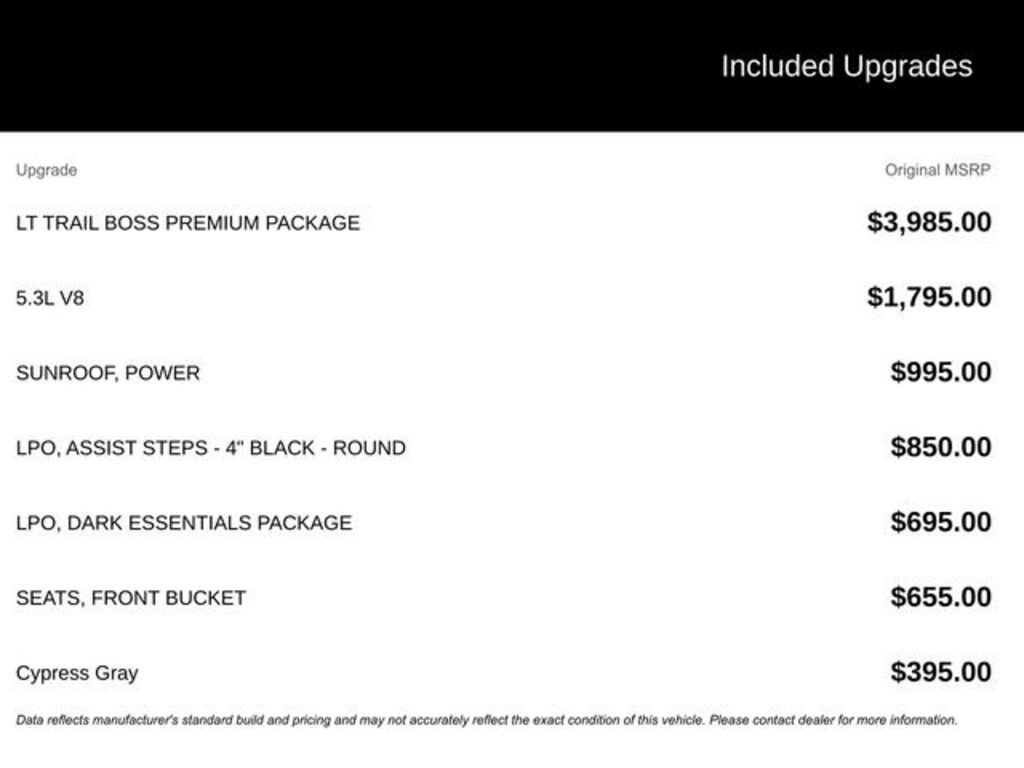*Pricing includes rebates and incentives in lieu of any special APR thru Ally or GM Financial. Please contact dealer for details. The advertised price does not include sales tax, title, license, or doc fee. We attempt to update this inventory on a regular basis. However, there can be lag time between the sale of a vehicle and the update of the inventory.