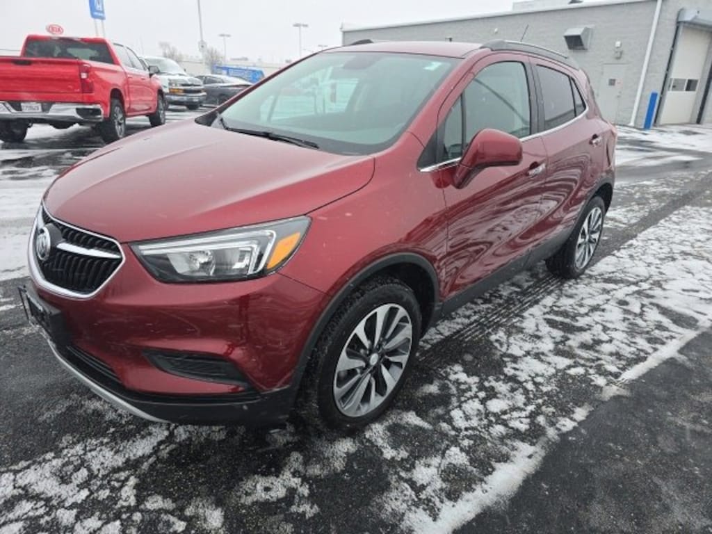 Carbravo Certified, One Owner, Carfax- Accident Free, Apple CarPlay, Keyless Entry, Auto Check - Accident free, AWD, Back Up Camera, Blind Spot Monitoring, Bluetooth, Cruise Control, Power Locks, Power Seating, Power Windows, Push Button Start, Rear Traffic Alert, Remaining factory warranty, Remote start, Carfax Buyback Guarantee, Encore Preferred, 4D Sport Utility, 1.4L ECOTEC Turbo VVT DOHC 4-Cyl SIDI, 6-Speed Automatic Electronic with Overdrive, AWD, Cinnabar Metallic, Ebony Cloth, 120-Volt Power Outlet, 18 Aluminum Wheels, 2-Way Manual Front Passenger Seat Adjuster, 3.53 Final Drive Axle Ratio, 4-Wheel Disc Brakes, 6-Speaker Audio System, 6-Way Power Driver Seat Adjuster, ABS brakes, Air Conditioning, All-Weather Floor Mats, AM/FM radio: SiriusXM, Brake assist, Buick Interior Protection Package (LPO), Bumpers: body-color, Cloth w/Leatherette Seat Trim, Color-Keyed Carpeted Cargo Mat (LPO), Compass, Delay-off headlights, Driver door bin, Driver vanity mirror, Driver's Seat Mounted Armrest, Dual front impact airbags, Dual front side impact airbags, Electronic Stability Control, Emergency communication system: OnStar and Buick connected services capable, Exterior Parking Camera Rear, Front anti-roll bar, Front Bucket Seats, Front reading lights, Front wheel independent suspension, Fully automatic headlights, Heated door mirrors, Illuminated entry, Knee airbag, Leather steering wheel, Low tire pressure warning, Occupant sensing airbag, Outside temperature display, Overhead airbag, Panic alarm, Passenger door bin, Passenger vanity mirror, Power door mirrors, Power driver seat, Preferred Equipment Group 1SB, Rear Cross Traffic Alert, Rear seat center armrest, Rear side impact airbag, Rear window defroster, Rear window wiper, Remote keyless entry, Remote Vehicle Starter System, Ride & Handling Suspension, Roof rack: rails only, Safety Package, Security system, Side Blind Zone Alert, Speed control, Speed-sensing steering, Split folding rear seat, Spoiler, Steering wheel mounted audio controls, Tachometer, Telescoping steering wheel, Tilt steering wheel, Traction control, Trip computer, Variably intermittent wipers. CARFAX One-Owner. Clean CARFAX. Certified. Cinnabar Metallic 2022 Buick Encore Preferred AWD 6-Speed Automatic Electronic with Overdrive 1.4L ECOTEC Turbo VVT DOHC 4-Cyl SIDI