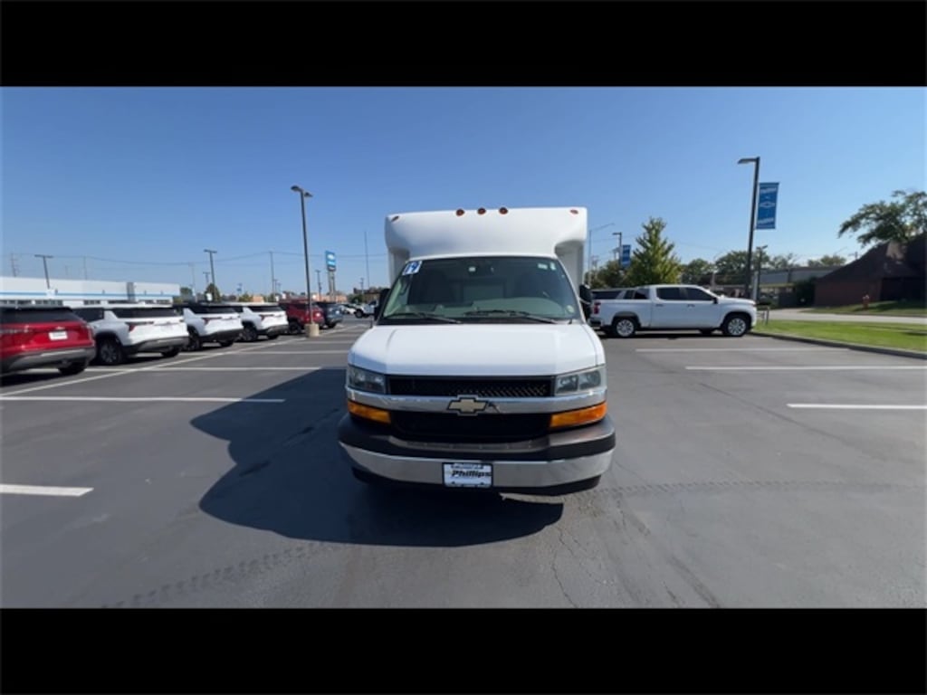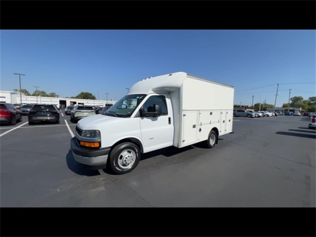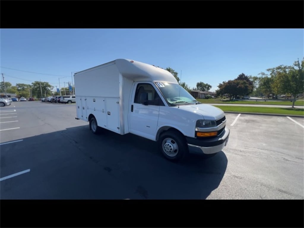 ONE Owner!, Accident FREE, Backup Camera, Power Windows/Locks, Remote Start, Cruise Control, POWER CONVENIENCE PACKAGE, DRIVER CONVENIENCE PACKAGE, CHROME APPEARANCE PACKAGE, 12 FOOT ROCKPORT WORKPORT, Express 3500 Work Van Cutaway, 2D Chassis, 6.0L V8, 6-Speed Automatic HD Electronic with Overdrive, RWD, Summit White, Medium Pewter w/Custom Cloth Seat Trim, 2 Speakers, 3.73 Rear Axle Ratio, 4-Wheel Disc Brakes, ABS brakes, Air Conditioning, AM/FM radio, Antenna Equipment, Body Soft-Mount Donut & Bolt, Chrome Appearance Package, Chrome Grille, Cruise Control, Driver & Front Passenger High-Back Bucket Seats, Driver Convenience Package, Driver door bin, Driver's Seat Mounted Armrest, Dual front impact airbags, Dual front side impact airbags, Dual Rear Wheel Configuration, Electronic Stability Control, Emergency communication system: OnStar Guidance, Engine Cover Console w/Swing-Out Storage Bin, Exterior Parking Camera Rear, Front anti-roll bar, Front Bucket Seats, Front Chrome Bumper w/Step-Pad, Front wheel independent suspension, Fully automatic headlights, Inside Rear-View Mirror, Low tire pressure warning, Occupant sensing airbag, Overhead airbag, Passenger cancellable airbag, Passenger door bin, Passenger seat mounted armrest, Power Convenience Package, Power Door Locks w/Lock-Out Protection, Power steering, Power Windows, Preferred Equipment Group 1WT, Radio: AM/FM Stereo w/MP3 Player & Digital Clock, Rear Vision Camera, Reclining High-Back Bucket Seats w/Inboard Armrests, Tachometer, Tilt Steering Wheel, Traction control, Trip computer, Variably intermittent wipers, Voltmeter, Wheels: 16" x 6.5" 8-Lug Painted Steel HD (6), Wide-Stance Sail Panel Mounted Outside Mirrors. 2019 Chevrolet Express 3500 Summit White Work Van 2D Chassis Cutaway RWD 6-Speed Automatic HD Electronic with Overdrive 6.0L V8
