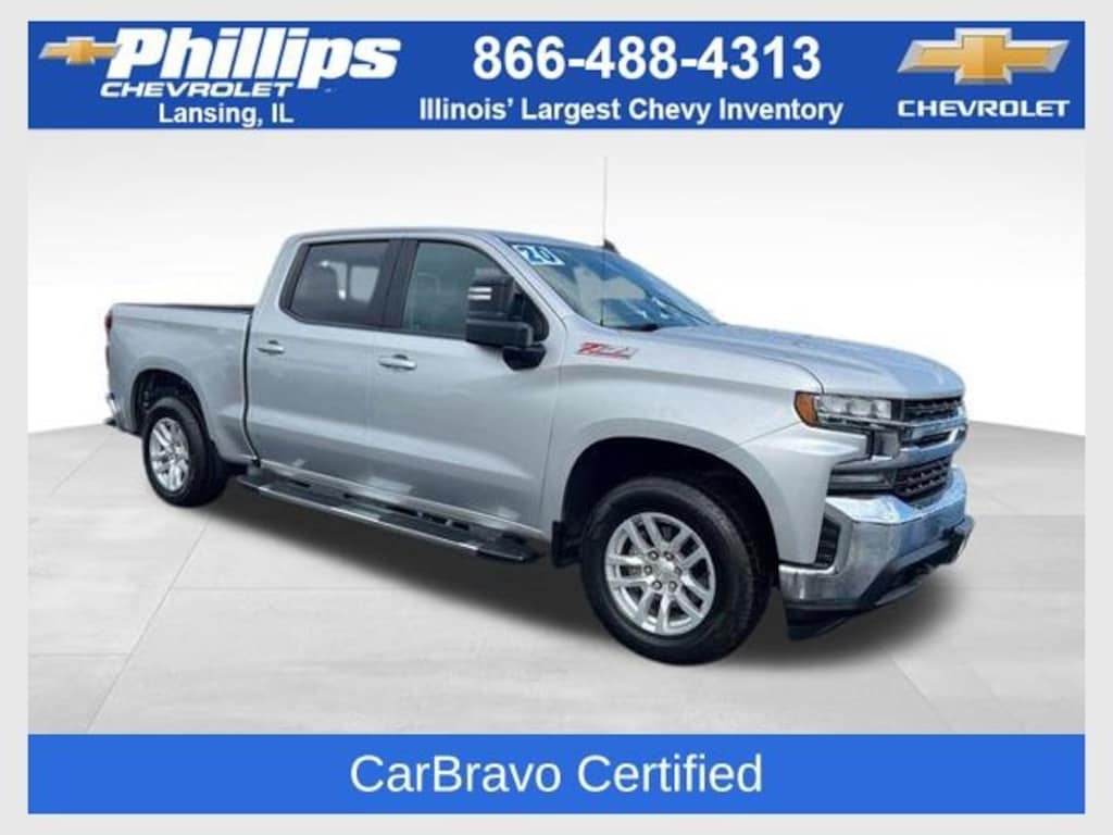 CarBravo Certified, ONE Owner!, No Added Cert. Fees, 4WD!, Heated Seats, Heated Steering Wheel, Apple CarPlay, Keyless Entry, Backup Camera, BLUETOOTH, Power Windows/Locks, Power Seating, Remote Start, Cruise Control, Carfax Buyback Guarantee, Z71 OFF-ROAD PACKAGE, ADVANCED TRAILERING PACKAGE, CONVENIENCE PACKAGE, CONVENIENCE PACKAGE II, Silverado 1500 LT, 4D Crew Cab, EcoTec3 5.3L V8, 8-Speed Automatic, 4WD, Silver Ice Metallic, Jet Black Cloth, 10-Way Power Driver Seat w/Lumbar, 12-Volt Rear Auxiliary Power Outlet, 120-Volt Instrument Panel Power Outlet, 2 USB Ports, 2 USB Ports (First Row), 4-Way Manual Driver Seat Adjuster, 4.2 Diagonal Color Display Driver Info Center, 40/20/40 Front Split-Bench Seat, Advanced Trailering Package, Advanced Trailering System, All-Star Edition, Bluetooth® For Phone, Chrome Grille, Chrome Mirror Caps, Cloth Rear Seat w/Storage Package, Color-Keyed Carpeting Floor Covering, Compass, Convenience Package, Convenience Package II, Deep-Tinted Glass, Dual Exhaust w/Polished Outlets, Dual-Zone Automatic Climate Control, Electric Rear-Window Defogger, Electrical Lock Control Steering Column, EZ Lift Power Lock & Release Tailgate, Front Frame-Mounted Black Recovery Hooks, Front Rubberized Vinyl Floor Mats, HD Radio, HD Rear Vision Camera, Heated Driver & Front Outboard Passenger Seats, Heated Steering Wheel, Heavy-Duty Rear Locking Differential, High Capacity Air Filter, Hill Descent Control, Hitch Guidance, Hitch Guidance w/Hitch View, Keyless Open & Start, Leather Wrapped Steering Wheel, LED Cargo Area Lighting, Locking Tailgate, Manual Tilt-Wheel Steering Column, Manual Tilt/Telescoping Steering Column, Off-Road Suspension, OnStar & Chevrolet Connected Services Capable, Power Door Locks, Power Front Windows w/Driver Express Up/Down, Power Front Windows w/Passenger Express Down, Power Rear Windows w/Express Down, Power Sliding Rear Window w/Rear Defogger, Preferred Equipment Group 1LT, Radio: Chevrolet Infotainment 3 Plus System, Rear 60/40 Folding Bench Seat (Folds Up), Rear Dual USB Charging-Only Ports, Rear Rubberized-Vinyl Floor Mats, Rear Vision Camera, Remote Keyless Entry, Remote Vehicle Starter System, Single-Zone Manual/Semi-Automatic Air Conditioning, SiriusXM w/360L, Steering Wheel Audio Controls, Steering Wheel Mounted Electronic Cruise Control, Trailering Package, Universal Home Remote, Urethane Steering Wheel, Z71 Off-Road Package. 2020 Chevrolet Silverado 1500 Silver Ice Metallic LT 4D Crew Cab 4WD 8-Speed Automatic 16/22 City/Highway MPG EcoTec3 5.3L V8Recent Arrival!Certification Program Details: Type your description hereWith the internet today, a great value shouldnât be hard to find. Here at Phillips Chevrolet we do the research for you. We monitor the market daily to ensure our customers are getting the best value achievable. We price all of our vehicles to make the buying process as simple and easy as possible. Our internet prices are just one factor that makes us the #1, #2, and out to be the #3 Chevrolet dealerships in Illinois. The #2 Chevy dealership in Illinois is conveniently located just a one block south of 80/94, at 17730 S Torrence Avenue in Lansing, IL 60438.