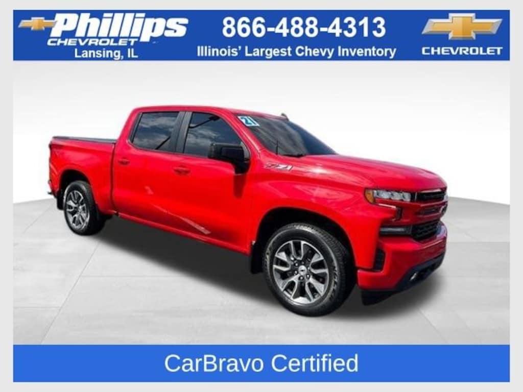 CarBravo Certified, No Added Cert. Fees, Bose Audio, 4WD!, Heated Seats, Heated Steering Wheel, Apple CarPlay, Keyless Entry, Backup Camera, BLUETOOTH, Power Windows/Locks, Power Seating, PUSH BUTTON START!, Remote Start, Carfax Buyback Guarantee, Silverado 1500 RST, 4D Crew Cab, EcoTec3 5.3L V8, 8-Speed Automatic, 4WD, Red Hot, Jet Black w/Leather-Appointed Front Seat Trim, 10-Way Power Driver Seat w/Lumbar, 12-Volt Rear Auxiliary Power Outlet, 120-Volt Bed Mounted Power Outlet, 120-Volt Instrument Panel Power Outlet, 2 USB Ports, 2 USB Ports (First Row), 3.23 Rear Axle Ratio, 4-Wheel Disc Brakes, 4.2 Diagonal Color Display Driver Info Center, 4G LTE Wi-Fi Hot Spot Capable, 6-Speaker Audio System, All Star Edition Plus, All-Star Edition, AM/FM radio: SiriusXM, Apple CarPlay/Android Auto, Auto-Locking Rear Differential, Bed Protection Package, Bluetooth® For Phone, Body Color Grille, Brake assist, Chevytec Spray-On Black Bedliner, Cloth Rear Seat w/Storage Package, Cloth Seat Trim, Color-Keyed Carpeting Floor Covering, Compass, Convenience Package, Convenience Package II, Convenience Package w/Buckets Seats, Deep-Tinted Glass, Delay-off headlights, Dual Exhaust w/Polished Outlets, Dual-Zone Automatic Climate Control, Electric Rear-Window Defogger, Electrical Lock Control Steering Column, Electronic Cruise Control, Electronic Stability Control, EZ Lift Power Lock & Release Tailgate, Floor Mounted Center Console, Front Bucket Seats, Front dual zone A/C, Front Frame-Mounted Black Recovery Hooks, Front LED Fog Lamps, Front Rubberized Vinyl Floor Mats, HD Radio, Heated door mirrors, Heated Driver & Front Outboard Passenger Seats, Heated Steering Wheel, Heavy Duty Suspension, Heavy-Duty Air Filter, High Gloss Black Mirror Caps, Hill Descent Control, Keyless Open & Start, Leather Package, Leather Wrapped Steering Wheel, Leather-Appointed Front Seat Trim, LED Cargo Area Lighting, Manual Tilt/Telescoping Steering Column, Off-Road Suspension, OnStar & Chevrolet Connected Services Capable, Panic alarm, Power Door Locks, Power door mirrors, Power driver seat, Power Front Windows w/Driver Express Up/Down, Power Front Windows w/Passenger Express Down, Power Rear Windows w/Express Down, Preferred Equipment Group 1SP, Rear 60/40 Folding Bench Seat (Folds Up), Rear Dual USB Charging-Only Ports, Rear Rubberized-Vinyl Floor Mats, Rear Vision Camera, Rear Wheelhouse Liners, Rear window defroster, Remote keyless entry, Remote Vehicle Starter System, SiriusXM Radio, Speed control, Speed-sensing steering, Standard Tailgate, Steering Wheel Audio Controls, Steering wheel mounted audio controls, Tachometer, Telescoping steering wheel, Theft Deterrent System (Unauthorized Entry), Tilt steering wheel, Traction control, Trailering Package, Trip computer, Universal Home Remote, Up-Level Rear Seat w/Storage Package, Variably intermittent wipers, Voltmeter, Wheels: 20 x 9 Painted Aluminum, Z71 Off-Road Package. 2021 Chevrolet Silverado 1500 Red Hot RST 4D Crew Cab 4WD 8-Speed Automatic 16/22 City/Highway MPG EcoTec3 5.3L V8Recent Arrival!Certification Program Details: Type your description hereWith the internet today, a great value shouldnât be hard to find. Here at Phillips Chevrolet we do the research for you. We monitor the market daily to ensure our customers are getting the best value achievable. We price all of our vehicles to make the buying process as simple and easy as possible. Our internet prices are just one factor that makes us the #1, #2, and out to be the #3 Chevrolet dealerships in Illinois. The #2 Chevy dealership in Illinois is conveniently located just a one block south of 80/94, at 17730 S Torrence Avenue in Lansing, IL 60438.