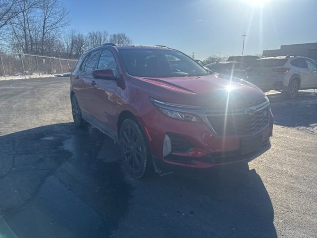 Low Miles, CarBravo Certified, Panoramic Roof, Backup Camera, Remote Start, Pwr Dr Seat, Forward Collision Alert, Side Blind Zone Alert, Rear Cross Traffic Alert, Lane Departure Warning, Lane Change Alert, Lane Keep Assist, Heated Seats, Heated Steering Wheel, Power Liftgate, Apple CarPlay, Aluminum Wheels, Carfax Buyback Guarantee, Equinox RS, 4D Sport Utility, 1.5L DOHC, 6-Speed Automatic Electronic with Overdrive, FWD, Radiant Red Tintcoat, Jet Black w/Premium Cloth Seat Trim, 19 Aluminum Wheels, 2 Rear USB Charging-Only Ports, 2 USB Ports & Auxiliary Input Jack, 4-Wheel Disc Brakes, 6-Speaker Audio System Feature, ABS brakes, Air Conditioning, AM/FM radio: SiriusXM, Auto High-beam Headlights, Automatic temperature control, Bluetooth® For Phone, Brake assist, Bumpers: body-color, Cold Air Grille Shutter, Compass, Driver 8-Way Power Seat Adjuster, Driver door bin, Driver vanity mirror, Dual front impact airbags, Dual front side impact airbags, Electronic Stability Control, Emergency communication system: OnStar and Chevrolet connected services capable, Four wheel independent suspension, Front anti-roll bar, Front Bucket Seats, Front Center Armrest, Front dual zone A/C, Front Passenger 4-Way Manual Seat Adjuster, Front reading lights, Fully automatic headlights, Heated door mirrors, Heated Driver & Front Passenger Seats, Illuminated entry, Integrated Cargo Liner (LPO), Lane Change Alert w/Side Blind Zone Alert, Low tire pressure warning, Occupant sensing airbag, Outside temperature display, Overhead airbag, Overhead console, Passenger door bin, Passenger vanity mirror, Power door mirrors, Power driver seat, Power Liftgate, Power Sunroof, Preferred Equipment Group 1RS, Premium audio system: Chevrolet Infotainment 3, Premium Cloth Seat Trim, Radio data system, Radio: Chevrolet Infotainment 3 System w/AM/FM, Rear anti-roll bar, Rear Cross Traffic Alert, Rear reading lights, Rear seat center armrest, Rear window defroster, Rear window wiper, Remote keyless entry, Roof rack: rails only, Security system, Side Blind Zone & Rear Cross Traffic, SiriusXM Radio, Speed control, Speed-sensing steering, Split folding rear seat, Spoiler, Steering wheel mounted audio controls, Tachometer, Telescoping steering wheel, Tilt steering wheel, Traction control, Trip computer, Variably intermittent wipers, Wireless Apple CarPlay/Wireless Android Auto. 2023 Chevrolet Equinox Radiant Red Tintcoat RS 4D Sport Utility FWD 6-Speed Automatic Electronic with Overdrive 26/31 City/Highway MPG 1.5L DOHC