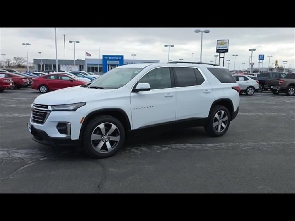 Carbravo Certified, Certifed Multi Point Inspection, One Owner, Carfax- Accident Free, Fully Serviced, Apple CarPlay, Keyless Entry, SUNROOF, 3rd Row Seating, Adaptive Cruise Control (ACC), Back Up Camera, Blind Spot Monitoring, Bluetooth, BOSE Audio, Heated seats, Heated steering wheel, Forward Collision Alert, Intellibeam, Power lift gate, Power Locks, Power Seating, Power Windows, Push Button Start, Remote start, 20 Wheels, Carfax Buyback Guarantee, LT PREMIUM PACKAGE, Traverse LT Leather, 4D Sport Utility, 3.6L V6 SIDI VVT, 9-Speed Automatic, FWD, Summit White, Jet Black/Chai w/Leather-Appointed Seat Trim, 120-Volt Power Outlet, 1st & 2nd Row All-Weather Floor Liner (LPO), 3rd Row All-Weather Floor Liner (LPO), 3rd row seats: split-bench, 4-Wheel Disc Brakes, 6-Way Power Front Passenger Seat, 8-Way Power Driver Seat Adjuster, ABS brakes, Adaptive Cruise Control, AM/FM radio: SiriusXM with 360L, Apple CarPlay/Android Auto, Auto High-beam Headlights, Automatic temperature control, Black Roof Rails, Bose Premium 10-Speaker Audio System Feature, Brake assist, Bumpers: body-color, Compass, Delay-off headlights, Driver door bin, Driver vanity mirror, Dual front impact airbags, Dual front side impact airbags, Dual SkyScape 2-Panel Power Sunroof, Electronic Stability Control, Emergency communication system, Enhanced Automatic Emergency Braking, Exterior Parking Camera Rear, Floor Liner Package (LPO), Four wheel independent suspension, Front anti-roll bar, Front Bucket Seats, Front Center Armrest, Front dual zone A/C, Front Passenger 2-Way Power Lumbar, Front reading lights, Fully automatic headlights, Garage door transmitter, HD Surround Vision, Heated door mirrors, Heated Driver & Front Passenger Seats, Heated steering wheel, Illuminated entry, Integrated Cargo Liner (LPO), Leather steering wheel, Leather-Appointed Seat Trim, Low tire pressure warning, LT Premium Package, Occupant sensing airbag, Outside Heated Power Adjustable Mirrors, Outside temperature display, Overhead airbag, Overhead console, Passenger door bin, Passenger vanity mirror, Power door mirrors, Power Driver Lumbar Control, Power Liftgate, Power passenger seat, Preferred Equipment Group 3LT, Premium audio system: Chevrolet Infotainment 3 Plus, Radio data system, Radio: Chevrolet Infotainment 3 Plus System w/Navi, Rear air conditioning, Rear anti-roll bar, Rear Camera Mirror Package, Rear Camera Mirror Washer, Rear Pedestrian Alert, Rear reading lights, Rear window defroster, Rear window wiper, Remote keyless entry, Security system, SiriusXM w/360L, Speed-sensing steering, Spoiler, Steering wheel mounted audio controls, Tachometer, Telescoping steering wheel, Tilt steering wheel, Traction control, Trip computer, Turn signal indicator mirrors, Upper Active Aero Shutters, Variably intermittent wipers, Voltmeter, Wheels: 20 Machined Face Aluminum. CARFAX One-Owner. Clean CARFAX. Certified. Summit White 2023 Chevrolet Traverse LT Leather FWD 9-Speed Automatic 3.6L V6 SIDI VVT