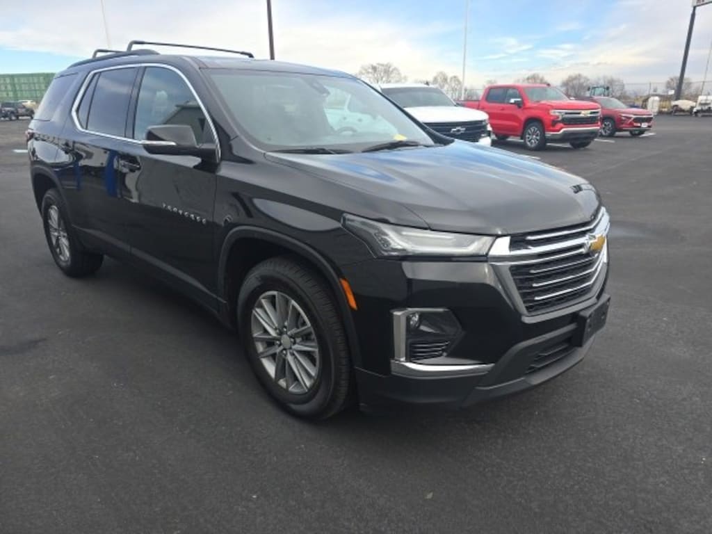 Carbravo Certified, One Owner, Carfax- Accident Free, Apple CarPlay, Android Auto, Keyless Entry, Auto Check - Accident free, Back Up Camera, Blind Spot Monitoring, Bluetooth, Heated seats, Forward Collision Alert, Lane Assist, Power Locks, Power Seating, Power Windows, Push Button Start, Rear Traffic Alert, Remaining factory warranty, Remote Power Liftgate, Remote start, Lane Change Alert, Carfax Buyback Guarantee, Traverse LT 1LT, 4D Sport Utility, 3.6L V6 SIDI VVT, 9-Speed Automatic, FWD, Mosaic Black Metallic, Jet Black Cloth, 2-Way Manual Front Passenger Seat Adjuster, 3.49 Axle Ratio, 3rd row seats: split-bench, 4-Wheel Disc Brakes, 4.2 Multi-Color Enhanced Driver Instrument Display, 6-Speaker Audio System Feature, 8-Way Power Driver Seat Adjuster, ABS brakes, Apple CarPlay/Android Auto, Auto High-beam Headlights, Automatic temperature control, Black Roof Rails, Brake assist, Bumpers: body-color, Compass, Convenience & Driver Confidence Package, Delay-off headlights, Driver door bin, Driver vanity mirror, Dual front impact airbags, Dual front side impact airbags, Electronic Stability Control, Emergency communication system, Exterior Parking Camera Rear, Four wheel independent suspension, Front anti-roll bar, Front Bucket Seats, Front Center Armrest, Front dual zone A/C, Front reading lights, Fully automatic headlights, Heated door mirrors, Heated Driver & Front Passenger Seats, Illuminated entry, Leather steering wheel, Low tire pressure warning, Occupant sensing airbag, Outside temperature display, Overhead airbag, Overhead console, Panic alarm, Passenger door bin, Passenger vanity mirror, Power door mirrors, Power Driver Lumbar Control, Preferred Equipment Group 1LT, Premium Cloth Seat Trim, Radio: Chevrolet Infotainment 3 Plus System, Radio: Chevrolet Infotainment System AM/FM Stereo, Rear air conditioning, Rear anti-roll bar, Rear Power Liftgate, Rear reading lights, Rear window defroster, Rear window wiper, Remote keyless entry, Remote Start, Security system, SiriusXM Radio, Speed control, Speed-sensing steering, Spoiler, Steering wheel mounted audio controls, Tachometer, Telescoping steering wheel, Tilt steering wheel, Traction control, Trip computer, Turn signal indicator mirrors, Universal Home Remote, Variably intermittent wipers, Voltmeter, Wheels: 18 Bright Silver-Painted Aluminum. CARFAX One-Owner. Clean CARFAX. Certified. Mosaic Black Metallic 2023 Chevrolet Traverse LT 1LT FWD 9-Speed Automatic 3.6L V6 SIDI VVT