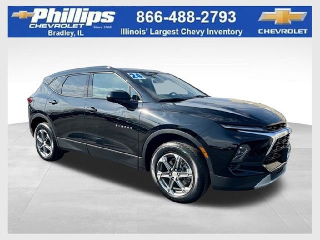Back Up Camera, Carfax Buyback Guarantee. Clean CARFAX. Certified. Black 2024 Chevrolet Blazer LT FWD 9-Speed Automatic with Overdrive 2.0L TurbochargedRecent Arrival! 22/29 City/Highway MPGGM Details:* Vehicle History* Roadside Assistance* Powertrain Limited Warranty: 72 Month/100,000 Mile (whichever comes first) from original in-service date* Warranty Deductible: $0* Transferable Warranty* 24 months/24,000 miles (whichever comes first) Certified Pre-Owned Scheduled Maintenance Plan and 3 days/150 miles (whichever comes first) Vehicle Exchange Program. SiriusXM 3-month trial subscription.* 172 Point Inspection* Limited Warranty: 12 Month/12,000 Mile (whichever comes first) from certified purchase dateWith the internet today, a great value shouldn't be hard to find. Here at Phillips Chevrolet we do the research for you. We monitor the market daily to ensure our customers are getting the best value achievable. We price all of our vehicles to make the buying process as simple and easy as possible. Our internet prices are just one factor that makes us the #1, #2, and out to be the #3 Chevrolet dealerships in Illinois. The future #3 Chevy dealership in Illinois is conveniently located at 1400 Locke Drive, the corner of I-57 & IL 50, in Bradley/Bourbonnais, IL 60914.