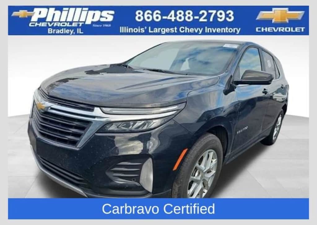 Carbravo Certified, One Owner, Apple CarPlay, Android Auto, Keyless Entry, Back Up Camera, Cruise Control, Heated seats, Pedestrian Monitoring, Power lift gate, Power Locks, Power Seating, Power Windows, Push Button Start, Remaining factory warranty, Remote start, Chevy Safety Assist Package, Carfax Buyback Guarantee, Equinox LT, 4D Sport Utility, 1.5L DOHC, 6-Speed Automatic Electronic with Overdrive, FWD, Mosaic Black Metallic, Jet Black Cloth, 17 Aluminum Wheels, 2 Rear USB Charging-Only Ports, 2 USB Ports & Auxiliary Input Jack, 2-Way Power Driver Lumbar Control Seat Adjuster, 3.50 Final Drive Axle Ratio, AM/FM radio: SiriusXM, Bluetooth® For Phone, Brake assist, Compass, Driver 8-Way Power Seat Adjuster, Dual front impact airbags, Electronic Stability Control, Four wheel independent suspension, Front anti-roll bar, Front dual zone A/C, Fully automatic headlights, Heated Driver & Front Passenger Seats, Overhead airbag, Panic alarm, Power driver seat, Power Liftgate, Preferred Equipment Group 1LT, Premium audio system: Chevrolet Infotainment 3, Rear anti-roll bar, Rear window defroster, Rear window wiper, Remote keyless entry, Security system, Speed control, Speed-sensing steering, Steering wheel mounted audio controls, Tachometer, Telescoping steering wheel, Tilt steering wheel, Traction control, Trip computer, Variably intermittent wipers. CARFAX One-Owner. Clean CARFAX. Certified. Mosaic Black Metallic 2024 Chevrolet Equinox LT FWD 6-Speed Automatic Electronic with Overdrive 1.5L DOHC