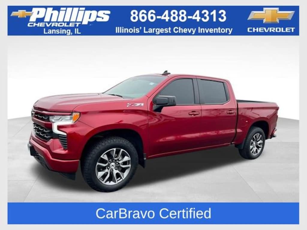 CarBravo Certified, 4WD!, Carfax Buyback Guarantee, Silverado 1500 RST, 4D Crew Cab, EcoTec3 5.3L V8, 10-Speed Automatic, 4WD, Radiant Red, Jet Black w/Cloth Seat Trim, 10-Way Power Driver Seat w/Lumbar, 12.3 Multicolor Reconfigurable Digital Display, 120-Volt Bed Mounted Power Outlet, 120-Volt Interior Power Outlet, 4-Wheel Disc Brakes, 40/20/40 Front Split-Bench Seat, 6-Speaker Audio System, ABS brakes, All-Star Edition, All-Weather Floor Liner (LPO) (AAK), Auto High-beam Headlights, Auto-Locking Rear Differential, Automatic Emergency Braking, Automatic temperature control, Auxiliary External Transmission Oil Cooler, Bluetooth® For Phone, Brake assist, Bumpers: body-color, Chevytec Spray-On Black Bedliner, Cloth Seat Trim, Color-Keyed Carpeting Floor Covering, Compass, Convenience Package, Deep-Tinted Glass, Driver door bin, Driver vanity mirror, Dual Exhaust w/Polished Outlets, Dual-Zone Automatic Climate Control, Electric Rear-Window Defogger, Electrical Steering Column Lock, Electronic Cruise Control, Electronic Stability Control, External Engine Oil Cooler, EZ Lift Power Lock & Release Tailgate, Following Distance Indicator, Forward Collision Alert, Front Center Armrest w/Storage, Front fog lights, Front Frame-Mounted Black Recovery Hooks, Front LED Fog Lamps, Front Pedestrian Braking, Fully automatic headlights, HD Rear Vision Camera, Heated Driver & Front Outboard Passenger Seats, Heated Power-Adjustable Outside Mirrors, Heated Steering Wheel, Heavy-Duty Air Filter, High Gloss Black Mirror Caps, Hill Descent Control, Hitch Guidance, Illuminated entry, Inside Rear-View Mirror w/Tilt, Integrated Trailer Brake Controller, Lane Keep Assist w/Lane Departure Warning, LED Cargo Area Lighting, Occupant sensing airbag, Off-Road Suspension, OnStar & Chevrolet Connected Services Capable, Outside temperature display, Overhead airbag, Overhead console, Passenger door bin, Power Front Windows w/Driver Express Up/Down, Power Front Windows w/Passenger Express Down, Power Rear Windows w/Express Down, Preferred Equipment Group 1SP, Protection Package, Rear 60/40 Folding Bench Seat (Folds Up), Rear reading lights, Rear step bumper, Rear Wheelhouse Liners, Remote Vehicle Starter System, Security system, SiriusXM w/360L, Speed-sensing steering, Standard Suspension Package, Standard Tailgate, Steering Wheel Audio Controls, Steering wheel mounted audio controls, Tachometer, Telescoping steering wheel, Theft Deterrent System (Unauthorized Entry), Tilt steering wheel, Traction control, Trailering Package, Trip computer, Voltmeter, Wheels: 20 x 9 Painted Aluminum, Wi-Fi Hot Spot Capable, Wrapped Steering Wheel, Z71 Off-Road & Protection Package, Z71 Off-Road Package. 2024 Chevrolet Silverado 1500 Radiant Red RST 4D Crew Cab 4WD 10-Speed Automatic 15/20 City/Highway MPG EcoTec3 5.3L V8