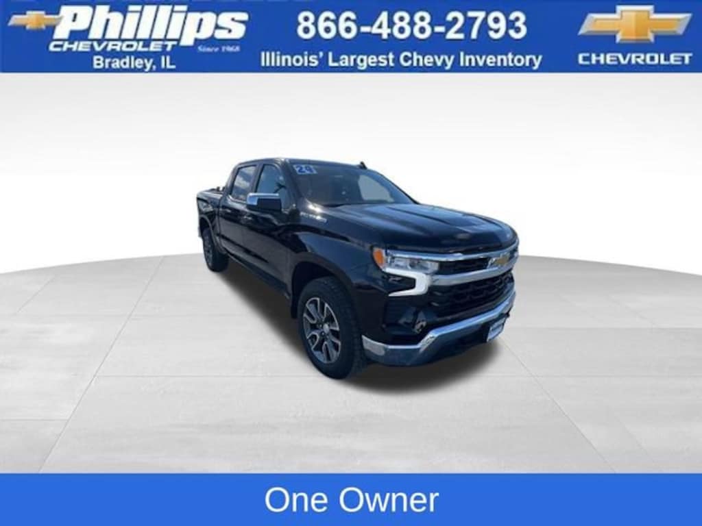 Carbravo Certified, One Owner, Apple CarPlay, 4WD, Back Up Camera, Heated seats, Heated steering wheel, Forward Collision Alert, Lane Assist, Pedestrian Monitoring, Remote start, Trailering Package, Chevy Safety Assist Package, Lane Change Alert, Carfax Buyback Guarantee, Silverado 1500 LT, 4D Crew Cab, 2.7L I4 Turbocharged DOHC 16V LEV3-SULEV30 310hp, 8-Speed Automatic, 4WD, Black, Black Cloth, 10-Way Power Driver Seat w/Lumbar, 12.3 Multicolor Reconfigurable Digital Display, 120-Volt Interior Power Outlet, 6-Speaker Audio System, All-Star Edition, Auto-Locking Rear Differential, Automatic Emergency Braking, Chrome Mirror Caps, Compass, Convenience Package, Dual front side impact airbags, Dual Rear USB Ports (Charge Only), Dual-Zone Automatic Climate Control, Following Distance Indicator, Forward Collision Alert, Front Pedestrian Braking, Front reading lights, Front wheel independent suspension, HD Rear Vision Camera, Heated door mirrors, Heated Driver & Front Outboard Passenger Seats, Heated Steering Wheel, High Capacity Suspension Package, Hitch Guidance, Illuminated entry, IntelliBeam Automatic High Beam On/Off, Keyless Open & Start, Lane Keep Assist w/Lane Departure Warning, LED Cargo Area Lighting, Occupant sensing airbag, Outside temperature display, Overhead airbag, Premium audio system: Chevrolet Infotainment 3 Premium, Speed-sensing steering, Standard Suspension Package, Traction control, Trailering Package, Wi-Fi Hot Spot Capable, Wrapped Steering Wheel. CARFAX One-Owner. Clean CARFAX. Certified. Black 2024 Chevrolet Silverado 1500 LT 4WD 8-Speed Automatic 2.7L I4 Turbocharged DOHC 16V LEV3-SULEV30 310hp