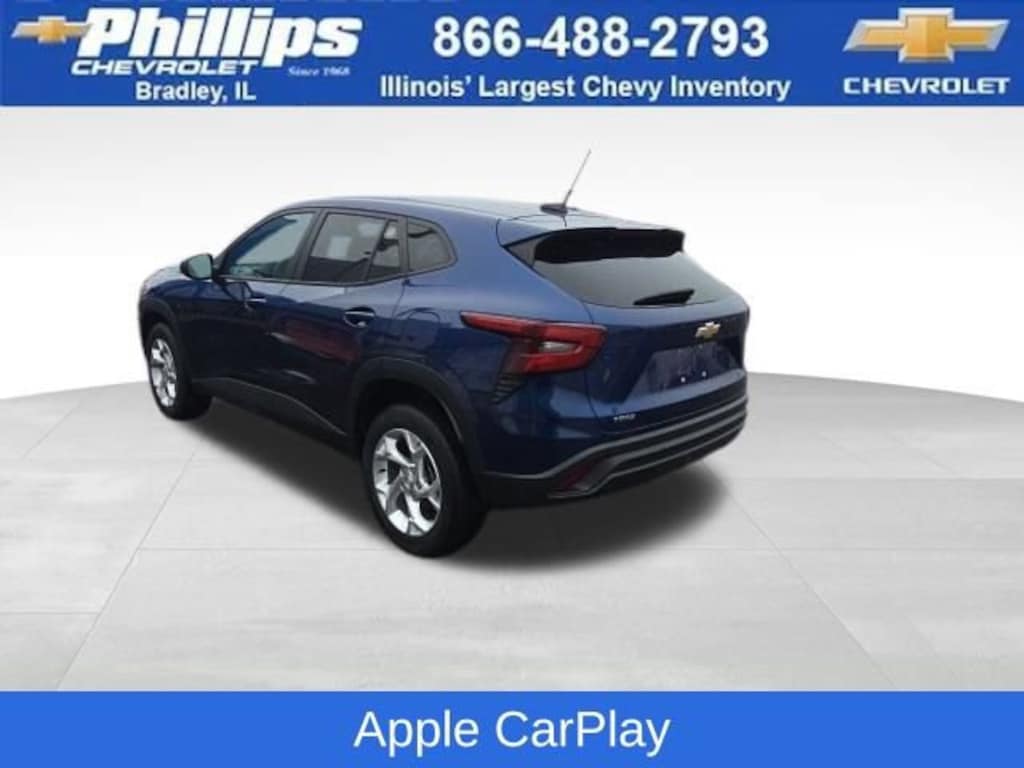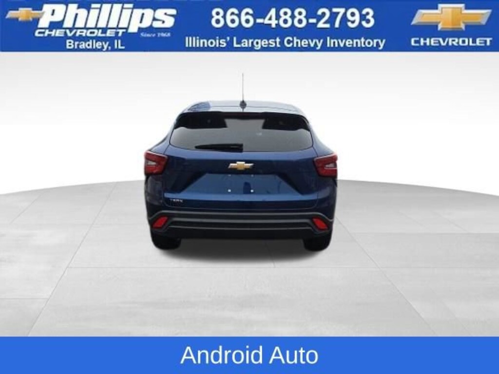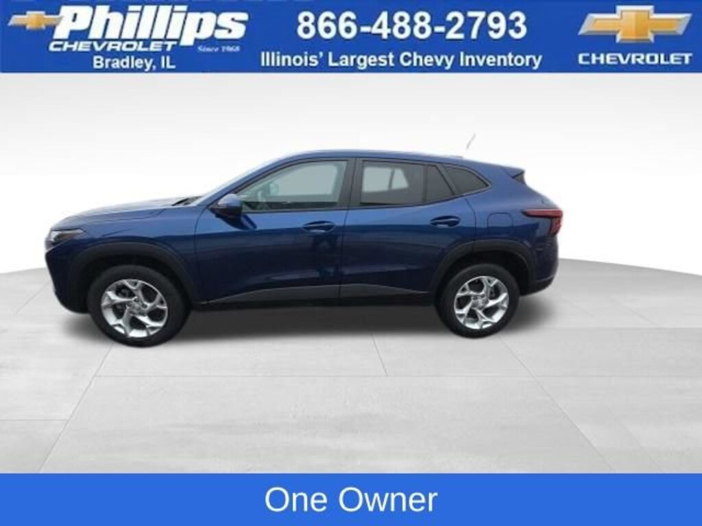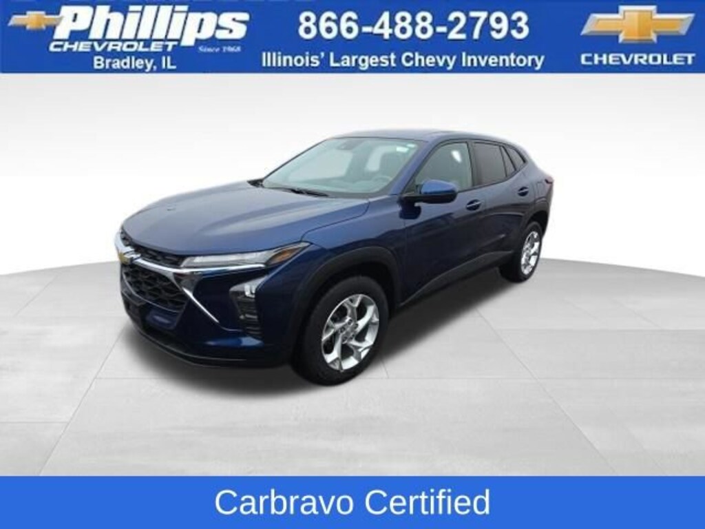 Carbravo Certified, One Owner, Apple CarPlay, Android Auto, Keyless Entry, Back Up Camera, Bluetooth, Cruise Control, Forward Collision Alert, Lane Assist, Pedestrian Monitoring, Power Locks, Power Windows, Push Button Start, Remaining factory warranty, Chevy Safety Assist Package, Lane Change Alert, Carfax Buyback Guarantee, Trax LS, 4D Sport Utility, 1.2L Ecotec Turbo DOHC DI w/VVT, 6-Speed Automatic, FWD, Blue Glow Metallic, Jet Black/Gray With Blue Accents Cloth, 3.50 Final Drive Axle Ratio, 4-Speaker Audio System Feature, 4-Wheel Disc Brakes, 6-Way Manual Driver Seat Adjuster, ABS brakes, Auto High-beam Headlights, Body-Color Painted Mirror Caps, Brake assist, Bumpers: body-color, Carpeted Rear Floor Mats, Compass, Delay-off headlights, Driver door bin, Driver vanity mirror, Dual front impact airbags, Dual front side impact airbags, Electronic Stability Control, Emergency communication system: OnStar and Chevrolet connected services capable, Exterior Parking Camera Rear, Front & Rear All-Weather Floor Mats, Front anti-roll bar, Front Bucket Seats, Front Center Armrest, Front reading lights, Front wheel independent suspension, Fully automatic headlights, Heated Driver & Front Passenger Seats, Heated Power-Adjustable Outside Mirrors, Illuminated entry, Low tire pressure warning, LS Convenience Package, Occupant sensing airbag, Outside temperature display, Overhead airbag, Overhead console, Panic alarm, Passenger door bin, Passenger vanity mirror, Power door mirrors, Preferred Equipment Group 1LS, Premium audio system: Chevrolet Infotainment 3, Rear window defroster, Rear window wiper, Remote keyless entry, Remote Start, Security system, Speed control, Split folding rear seat, Spoiler, Steering wheel mounted audio controls, Tachometer, Telescoping steering wheel, Tilt steering wheel, Traction control, Trip computer, Variably intermittent wipers, Wheels: 17 Silver Painted Aluminum. CARFAX One-Owner. Clean CARFAX. Certified. Blue Glow Metallic 2024 Chevrolet Trax LS FWD 6-Speed Automatic 1.2L Ecotec Turbo DOHC DI w/VVTRecent Arrival! Odometer is 1912 miles below market average! 28/32 City/Highway MPGCertification Program Details: Type your description here Awards:* Car and Driver 10 BestCar and Driver, January 2017.With the internet today, a great value shouldn't be hard to find. Here at Phillips Chevrolet we do the research for you. We monitor the market daily to ensure our customers are getting the best value achievable. We price all of our vehicles to make the buying process as simple and easy as possible. Our internet prices are just one factor that makes us the #1, #2, and out to be the #3 Chevrolet dealerships in Illinois. The future #3 Chevy dealership in Illinois is conveniently located at 1400 Locke Drive, the corner of I-57 & IL 50, in Bradley/Bourbonnais, IL 60914.