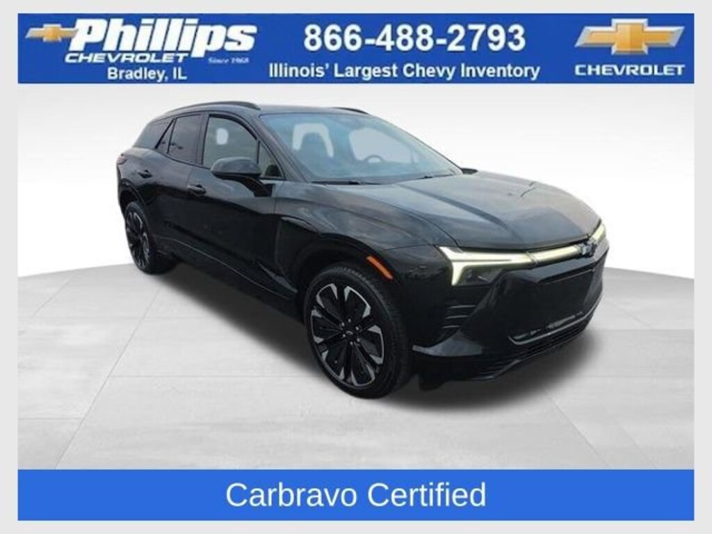 Carbravo Certified, One Owner, Apple CarPlay, Android Auto, Keyless Entry, AWD, Back Up Camera, Blind Spot Monitoring, Bluetooth, Heated seats, Heated steering wheel, Forward Collision Alert, Lane Assist, Pedestrian Monitoring, Power Locks, Power Seating, Power Windows, Push Button Start, Rear Traffic Alert, Remote start, Rear Park Assist, Pedestrian Detection, Lane Change Alert, Carfax Buyback Guarantee, Blazer EV RS, 4D Sport Utility, Electric Motor, 1-Speed Automatic, AWD, Black, Black w/Evotex Seat Trim, 2-Way Power Driver Lumbar Seat Adjuster, 4-Wheel Disc Brakes, 6-Speaker Audio System Feature, 8-Way Power Driver Seat Adjuster, ABS brakes, AM/FM radio: SiriusXM with 360L, Auto High-beam Headlights, Auto-dimming door mirrors, Auto-dimming Rear-View mirror, Automatic temperature control, Brake assist, Bumpers: body-color, Compass, Driver & Front Passenger Ventilated Seats, Driver door bin, Driver vanity mirror, Dual front impact airbags, Dual front side impact airbags, Electronic Stability Control, Emergency communication system: OnStar and Chevrolet connected services capable, Four wheel independent suspension, Front anti-roll bar, Front Bucket Seats, Front Center Armrest, Front dual zone A/C, Front Passenger 2-Way Power Lumbar Seat Adjuster, Front reading lights, Fully automatic headlights, Garage door transmitter, Heated door mirrors, Heated Driver & Fr Passenger Seats Cushion & Seatback, Heated steering wheel, Illuminated entry, Knee airbag, Low tire pressure warning, Memory seat, Navigation System, Occupant sensing airbag, Outside temperature display, Overhead airbag, Overhead console, Passenger door bin, Passenger vanity mirror, Power door mirrors, Power Liftgate, Power passenger seat, Preferred Equipment Group 3RS, Radio: 17.7 Diagonal Advanced Color LCD Display, Rain sensing wipers, Rear anti-roll bar, Rear reading lights, Rear seat center armrest, Rear window defroster, Rear window wiper, Remote keyless entry, Ride & Handling Suspension, Security system, SiriusXM w/360L Trial Subscription, Speed control, Split folding rear seat, Spoiler, Sport steering wheel, Steering wheel mounted audio controls, Telescoping steering wheel, Tilt steering wheel, Traction control, Trip computer, Turn signal indicator mirrors, Variably intermittent wipers, Ventilated front seats, Wheels: 21 Machined-Face Aluminum. CARFAX One-Owner. Clean CARFAX. Certified. Black 2025 Chevrolet Blazer EV RS AWD 1-Speed Automatic Electric MotorOdometer is 5518 miles below market average! 102/87 City/Highway MPGCertification Program Details: Type your description hereWith the internet today, a great value shouldn't be hard to find. Here at Phillips Chevrolet we do the research for you. We monitor the market daily to ensure our customers are getting the best value achievable. We price all of our vehicles to make the buying process as simple and easy as possible. Our internet prices are just one factor that makes us the #1, #2, and out to be the #3 Chevrolet dealerships in Illinois. The future #3 Chevy dealership in Illinois is conveniently located at 1400 Locke Drive, the corner of I-57 & IL 50, in Bradley/Bourbonnais, IL 60914.