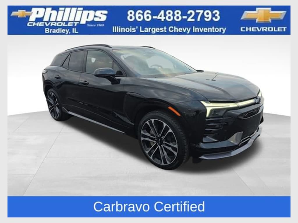 Carbravo Certified, One Owner, Apple CarPlay, Android Auto, Keyless Entry, AWD, Back Up Camera, Blind Spot Monitoring, Bluetooth, BOSE Audio, Heated Rear Seats, Heated seats, Heated steering wheel, Forward Collision Alert, Intellibeam, Panoramic Sunroof, Power Locks, Power Seating, Power Windows, Push Button Start, Rear Traffic Alert, Remaining factory warranty, Remote start, Ventilated seats, Carfax Buyback Guarantee, Blazer EV SS, 4D Sport Utility, Electric Motor, 1-Speed Automatic, AWD, Black, Adrenaline Red w/Perforated Evotex Seat Trim, 2-Way Power Driver Lumbar Seat Adjuster, 4-Wheel Disc Brakes, 8-Way Power Driver Seat Adjuster, ABS brakes, AM/FM radio: SiriusXM with 360L, Auto High-beam Headlights, Auto-dimming door mirrors, Auto-dimming Rear-View mirror, Automatic temperature control, Bose Premium 8-Speaker Audio System Feature, Brake assist, Bumpers: body-color, Compass, Driver & Front Passenger Ventilated Seats, Driver door bin, Driver vanity mirror, Dual front impact airbags, Dual front side impact airbags, Electronic Stability Control, Emergency communication system: OnStar and Chevrolet connected services capable, Four wheel independent suspension, Front anti-roll bar, Front Bucket Seats, Front Center Armrest, Front dual zone A/C, Front Passenger 2-Way Power Lumbar Seat Adjuster, Front Passenger 6-Way Power Seat Adjuster, Front reading lights, Fully automatic headlights, Garage door transmitter, Heads-Up Display, Heated door mirrors, Heated Driver & Fr Passenger Seats Cushion & Seatback, Heated steering wheel, Illuminated entry, Knee airbag, Low tire pressure warning, Memory seat, Navigation System, Occupant sensing airbag, Outside temperature display, Overhead airbag, Overhead console, Passenger door bin, Passenger vanity mirror, Perforated Evotex Seat Trim, Power door mirrors, Power Dual Panel Panoramic Sliding Sunroof, Power Liftgate, Power passenger seat, Preferred Equipment Group 2SS, Radio: 17.7 Diagonal Advanced Color LCD Display, Rain sensing wipers, Rear anti-roll bar, Rear reading lights, Rear seat center armrest, Rear window defroster, Rear window wiper, Remote keyless entry, Security system, SiriusXM w/360L Trial Subscription, Special Ride & Handling Suspension, Speed control, Split folding rear seat, Spoiler, Sport steering wheel, Steering wheel mounted audio controls, Telescoping steering wheel, Tilt steering wheel, Traction control, Trip computer, Turn signal indicator mirrors, Variably intermittent wipers, Ventilated front seats, Wheels: 22 Machined-Face Aluminum. CARFAX One-Owner. Clean CARFAX. Certified. Black 2025 Chevrolet Blazer EV SS AWD 1-Speed Automatic Electric Motor