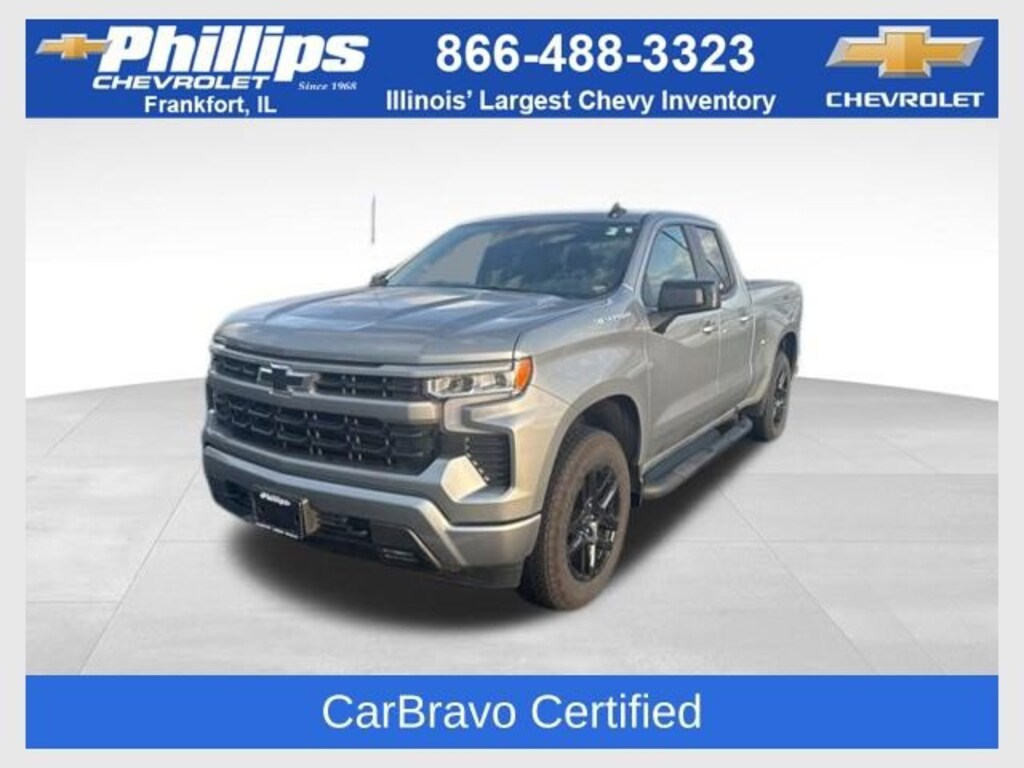 CarBravo Certified, 4WD, Trailering Package, Backup Camera, Remote Start, Pwr Dr Seat, Heated Seats, Heated Steering Wheel, Apple CarPlay, 20 Wheels, Carfax Buyback Guarantee, Silverado 1500 RST, 4D Extended Cab, 2.7L I4 Turbocharged DOHC 16V LEV3-SULEV30 310hp, 8-Speed Automatic, 4WD, Sterling Gray Metallic, Jet Black w/Cloth Seat Trim, 10-Way Power Driver Seat with Lumbar, 12.3 Multicolor Reconfigurable Digital Display, 120-Volt Bed Mounted Power Outlet, 120-Volt Interior Power Outlet, 3.42 Rear Axle Ratio, 4-Wheel Disc Brakes, 4 Black Round Assist Steps, 40/20/40 Front Split-Bench Seat, 6-Speaker Audio System, ABS brakes, Air Conditioning, All-Star Edition, All-Weather Floor Liner, AM/FM radio: SiriusXM with 360L, Auto High-beam Headlights, Auto-Locking Rear Differential, Automatic temperature control, Bluetooth® For Phone, Brake assist, Chevytec Spray-on Black Bedliner, Cloth Seat Trim, Color-Keyed Carpeting Floor Covering, Convenience Package, Deep-Tinted Glass, Dual-Zone Automatic Climate Control, Electric Rear-Window Defogger, Electronic Cruise Control, Electronic Stability Control, EZ Lift Power Lock and Release Tailgate, Front Center Armrest w/Storage, Front fog lights, Front Frame-Mounted Black Recovery Hooks, Front LED Fog Lamps, Front Rubberized Vinyl Floor Mats, Fully automatic headlights, HD Rear Vision Camera, Heated Driver and Front Outboard Passenger Seats, Heated Power-Adjustable Outside Mirrors, Heated Steering Wheel, High Capacity Suspension Package, High Gloss Black Mirror Caps, Hitch Guidance, Illuminated entry, Inside Rearview Mirror with Tilt, Integrated Trailer Brake Controller, Lane Keep Assist with Lane Departure Warning, Manual Tilt/Telescoping Steering Column, OnStar Services Capable, Outside temperature display, Overhead console, Passenger door bin, Power driver seat, Power Front Windows with Driver Express Up/Down, Power Front Windows with Passenger Express Down, Power Rear Windows with Express Down, Preferred Equipment Group 1SP, Radio data system, Radio: Chevrolet Infotainment 3 Premium System, Rear 60/40 Folding Bench Seat (folds Up), Rear Rubberized-Vinyl Floor Mats, Remote Vehicle Starter System, RST Select Package, Security system, SiriusXM with 360L Trial Subscription, Speed-sensing steering, Standard Tailgate, Steering Wheel Audio Controls, Steering wheel mounted audio controls, Tachometer, Teen Driver, Telescoping steering wheel, Tilt steering wheel, Tire Pressure Monitoring System, Traction control, Trailering Package, Trip computer, Variably intermittent wipers, Voltmeter, Wheels: 20 x 9 High Gloss Black Painted Aluminum, Wi-Fi Hot Spot Capable, Wrapped Steering Wheel. 2026 Chevrolet Silverado 1500 Sterling Gray Metallic RST 4D Extended Cab 4WD 8-Speed Automatic 17/21 City/Highway MPG 2.7L I4 Turbocharged DOHC 16V LEV3-SULEV30 310hp