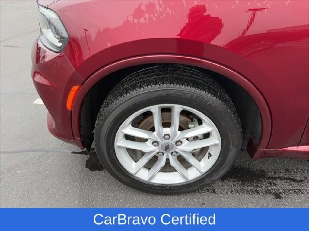 CarBravo Certified, Leather Seats, AWD, Sunroof, Trailering Package, Backup Camera, Remote Start, 8 Passenger Seating, Pwr Dr Seat, Navigation, Side Blind Zone Alert, Adaptive Cruise Control, Heated Seats, Ventilated Seats, Memory Seating, Power Liftgate, Apple CarPlay, 20 Wheels, Carfax Buyback Guarantee, Durango GT Plus, 4D Sport Utility, 3.6L V6 24V VVT, 8-Speed Automatic, AWD, Octane Red Pearlcoat, Black w/Leather Trimmed Bucket Seats, 1-Year Trial (Registration Required), 10.1 Touchscreen Display, 115V Auxiliary Power Outlet, 180 Amp Alternator, 4-Wheel Disc Brakes, 4G LTE Wi-Fi Hot Spot, 7 & 4 Pin Wiring Harness, ABS brakes, Adaptive Cruise Control w/Stop, Apple CarPlay, Auto-Dimming Exterior Driver Mirror, Auto-dimming Rear-View mirror, Automatic temperature control, Black Roof Rails, Brake assist, Class IV Receiver Hitch, Compass, Connected Travel & Traffic Services, Disassociated Touchscreen Display, Driver door bin, Driver vanity mirror, Dual front impact airbags, Dual front side impact airbags, Dual Remote USB Port - Charge Only, Electronic Stability Control, Exterior Mirrors w/Heating Element, Exterior Mirrors w/Memory, Exterior Mirrors w/Supplemental Signals, Floor Console w/Leather Armrest, Four wheel independent suspension, Front anti-roll bar, Front dual zone A/C, Front reading lights, Full Speed Forward Collision Warning Plus, Fully automatic headlights, Garage door transmitter, Gloss Black Exterior Mirrors, Google Android Auto, GPS Antenna Input, GPS Navigation, HD Radio, Heated door mirrors, Heated Second Row Seats, Heated steering wheel, Heavy-Duty Engine Cooling, Illuminated entry, Integrated Center Stack Radio, Integrated Roof Rail Crossbars, Integrated Voice Command w/Bluetooth, Knee airbag, Leather Trimmed Bucket Seats, Leather Wrapped Door Panels, LED Auxiliary Low Beam & Turn Signal, Low tire pressure warning, Occupant sensing airbag, Outside temperature display, Overhead airbag, Overhead console, Panic alarm, ParkView Rear Back-Up Camera, Passenger vanity mirror, Power 6x9 Multi-Function Foldaway Mirrors, Power 8-Way Driver Memory 8-Way Passenger Seats, Power driver seat, Power Driver/Passenger 4-Way Lumbar Adjust, Power Liftgate, Power Sunroof, Power Tilt & Telescopic Steering Column, Premium LED Fog Lamps, Quick Order Package 2BG GT Plus, Radio: Uconnect 5 Nav w/10.1 Display, Radio/Driver Seat/Mirrors Memory, Rear air conditioning, Rear anti-roll bar, Rear Load Leveling Suspension, Rear reading lights, Rear seat center armrest, Rear window defroster, Rear window wiper, Red Accent Stitching, SiriusXM Guardian - Included Trial (B), SiriusXM w/360L, Speed-sensing steering, Speed-Sensitive Wipers, Split folding rear seat, Spoiler, Sport steering wheel, Steering wheel mounted audio controls, Tachometer, Telescoping steering wheel, Tilt steering wheel, Traction control, Trailer Brake Control, Trip computer, USB Host Flip, Variably intermittent wipers, Ventilated Front Seats, Voltmeter, Wheels: 20 x 8.0 Fine Silver. 2023 Dodge Durango Octane Red Pearlcoat GT Plus 4D Sport Utility AWD 8-Speed Automatic 18/25 City/Highway MPG 3.6L V6 24V VVT