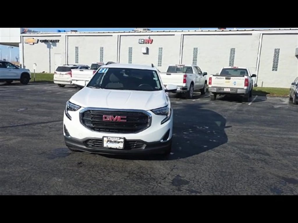 Carbravo Certified, Carfax- Accident Free, Apple CarPlay, Android Auto, Keyless Entry, Auto Check - Accident free, Back Up Camera, Blind Spot Monitoring, Bluetooth, Cruise Control, Heated seats, Forward Collision Alert, Lane Assist, Navigation, Power Locks, Power Seating, Power Windows, Push Button Start, Remote start, Side Blind Zone Alert, Lane Change Alert, Power Lift Gate, Carfax Buyback Guarantee, Terrain SLE, 4D Sport Utility, 1.5L DOHC, 9-Speed Automatic, FWD, Summit White, Jet Black w/Premium Cloth Seat Trim, 110-Volt Power Outlet, 2 USB Data Ports, 2 USB Data Ports w/Auxiliary Input Jack, 2 USB Data Ports w/SD Card Reader, 3.47 Axle Ratio, 4-Way Manual Driver's Seat, 4-Way Manual Front Passenger Seat, 4-Wheel Disc Brakes, 4.2 Multi-Color Enhanced Driver Information Screen, 6-Speaker Audio System Feature, 8-Way Power Driver Seat Adjuster, ABS brakes, Apple CarPlay/Android Auto, Auto High-beam Headlights, Auto-dimming Rear-View mirror, Bluetooth® For Phone, Brake assist, Bumpers: body-color, Compass, Delay-off headlights, Driver & Front Passenger Heated Seats, Driver Convenience Package, Driver door bin, Driver vanity mirror, Dual front impact airbags, Dual front side impact airbags, Dual-Zone Automatic Climate Control, Electronic Stability Control, Emergency communication system: OnStar and GMC connected services capable, Exterior Parking Camera Rear, Four wheel independent suspension, Front anti-roll bar, Front Bucket Seats, Front Center Armrest, Front reading lights, Fully automatic headlights, HD Rear Vision Camera, Heated door mirrors, High-Intensity Discharge Headlights, Illuminated entry, Infotainment Package I, Low tire pressure warning, Occupant sensing airbag, Outside temperature display, Overhead airbag, Overhead console, Panic alarm, Passenger door bin, Passenger vanity mirror, Power door mirrors, Power Driver Lumbar Control, Power Programmable Rear Liftgate, Power steering, Power windows, Preferred Equipment Group 3SA, Premium Cloth Seat Trim, Radio: GMC Infotainment Audio System w/Navigation, Rear anti-roll bar, Rear seat center armrest, Rear window defroster, Rear window wiper, Remote keyless entry, Remote Start, Roof-Mounted Luggage Rack Black Side Rails, Security system, SiriusXM Radio, Speed control, Speed-sensing steering, Split folding rear seat, Spoiler, Steering wheel mounted audio controls, Tachometer, Telescoping steering wheel, Tilt steering wheel, Traction control, Trip computer, Variably intermittent wipers, Wheels: 17 x 7 Silver Painted Aluminum. Clean CARFAX. Certified. Summit White 2021 GMC Terrain SLE FWD 9-Speed Automatic 1.5L DOHC25/30 City/Highway MPGCertification Program Details: Type your description hereWith the internet today, a great value shouldn't be hard to find. Here at Phillips Chevrolet we do the research for you. We monitor the market daily to ensure our customers are getting the best value achievable. We price all of our vehicles to make the buying process as simple and easy as possible. Our internet prices are just one factor that makes us the #1, #2, and out to be the #3 Chevrolet dealerships in Illinois. The future #3 Chevy dealership in Illinois is conveniently located at 1400 Locke Drive, the corner of I-57 & IL 50, in Bradley/Bourbonnais, IL 60914.