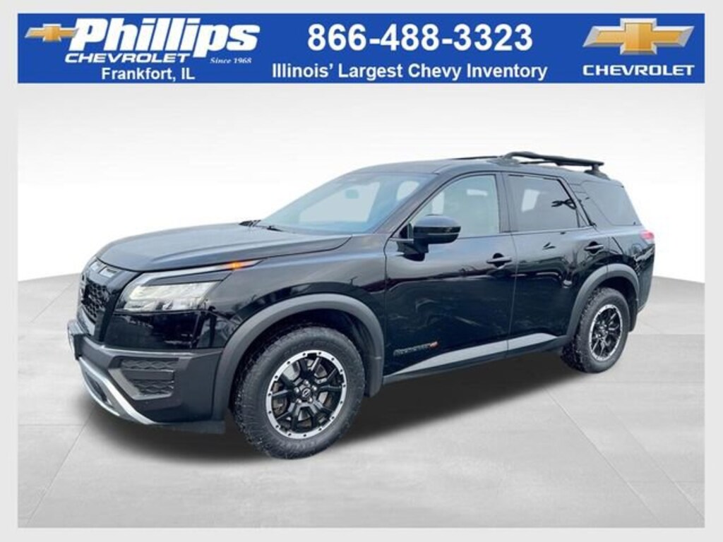 CarBravo Certified, 4WD, Priced at Wholesale, Backup Camera, Remote Start, Pwr Dr Seat, Forward Collision Alert, Side Blind Zone Alert, Rear Cross Traffic Alert, Lane Departure Warning, Heated Seats, Apple CarPlay, Aluminum Wheels, Carfax Buyback Guarantee, Pathfinder Rock Creek, 4D Sport Utility, V6, 9-Speed Automatic, 4WD, Super Black, Charcoal w/Leatherette Seating Surfaces, 3rd row seats: bench, 4-Wheel Disc Brakes, 6 Speakers, ABS brakes, Air Conditioning, Auto High-beam Headlights, Automatic temperature control, Brake assist, Driver door bin, Driver vanity mirror, Dual front impact airbags, Dual front side impact airbags, Electronic Stability Control, Emergency communication system: NissanConnect Services, Four wheel independent suspension, Front anti-roll bar, Front Center Armrest, Front dual zone A/C, Front fog lights, Front reading lights, Fully automatic headlights, Heated door mirrors, Heated Front Bucket Seats, Illuminated entry, Knee airbag, Leather steering wheel, Leatherette Seating Surfaces, Low tire pressure warning, NissanConnect featuring Apple CarPlay and Android Auto, Occupant sensing airbag, Outside temperature display, Overhead airbag, Overhead console, Passenger door bin, Passenger vanity mirror, Power door mirrors, Power driver seat, Radio data system, Radio: AM/FM Audio System w/NissanConnect, Rear air conditioning, Rear anti-roll bar, Rear Parking Sensors, Rear reading lights, Rear side impact airbag, Rear window defroster, Rear window wiper, Reclining 3rd row seat, Remote keyless entry, Rock Creek Roof Rack, Roof rack, Security system, Speed control, Speed-sensing steering, Spoiler, Steering wheel mounted audio controls, Tachometer, Telescoping steering wheel, Tilt steering wheel, Traction control, Trip computer, Turn signal indicator mirrors, Variably intermittent wipers, Wheels: 18 Beadlock Styled Design. 2023 Nissan Pathfinder Super Black Rock Creek 4D Sport Utility 4WD 9-Speed Automatic 20/23 City/Highway MPG V6Certification Program Details: Type your description hereWith the internet today, a great value shouldnât be hard to find. Here at Phillips Chevrolet we do the research for you. We monitor the market daily to ensure our customers are getting the best value achievable. We price all of our vehicles to make the buying process as simple and easy as possible. Our internet prices are just one factor that makes us the #1, #2, and out to be the #3 Chevrolet dealerships in Illinois. The #2 Chevy dealership in Illinois is conveniently located just a one block south of 80/94, at 17730 S Torrence Avenue in Lansing, IL 60438.
