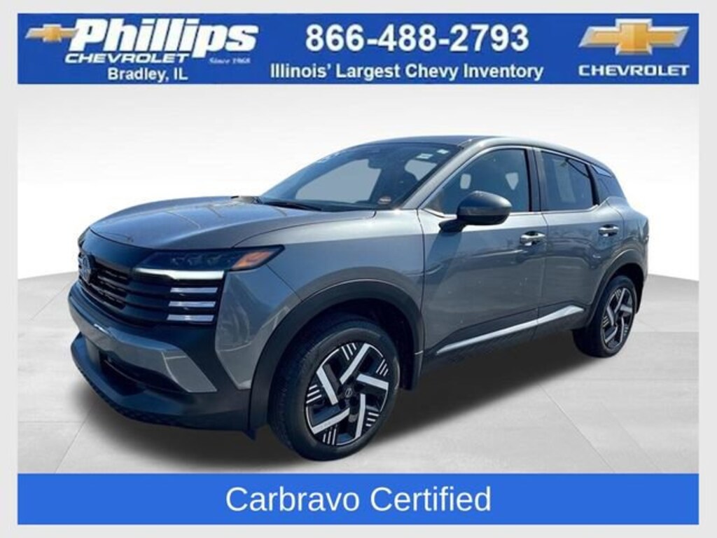 Carbravo Certified, Certifed Multi Point Inspection, One Owner, Carfax- Accident Free, Fully Serviced, Great Condition!, Apple CarPlay, Android Auto, Back Up Camera, Blind Spot Monitoring, Bluetooth, Cruise Control, GAS SAVER, Power Locks, Power Windows, Push Button Start, Save Big!!, 17 Wheels, Carfax Buyback Guarantee, Kicks SV, 4D Sport Utility, 2.0L DOHC, CVT with Xtronic, FWD, Gun Metallic, Charcoal w/Cloth Seat Trim, 4 Speakers, 4-Wheel Disc Brakes, ABS brakes, Air Conditioning, AM/FM radio: Sirius, Blind Spot Warning, Brake assist, Bumpers: body-color, Cloth Seat Trim, Dual front impact airbags, Dual front side impact airbags, Electronic Stability Control, Front anti-roll bar, Front Bucket Seats, Front Center Armrest, Front reading lights, Front wheel independent suspension, Fully automatic headlights, Illuminated entry, Knee airbag, Low tire pressure warning, Occupant sensing airbag, Outside temperature display, Overhead airbag, Panic alarm, Passenger vanity mirror, Power door mirrors, Power steering, Power windows, Radio data system, Radio: AM/FM Audio System, Rear anti-roll bar, Rear Parking Sensors, Rear reading lights, Rear side impact airbag, Rear window defroster, Rear window wiper, Remote keyless entry, Security system, Speed control, Speed-sensing steering, Split folding rear seat, Spoiler, Sport steering wheel, Steering wheel mounted audio controls, Tachometer, Telescoping steering wheel, Tilt steering wheel, Traction control, Trip computer, Variably intermittent wipers, Wheels: 17 Steel Flex w/Full Covers. CARFAX One-Owner. Clean CARFAX. Certified. Gun Metallic 2025 Nissan Kicks SV FWD CVT with Xtronic 2.0L DOHC