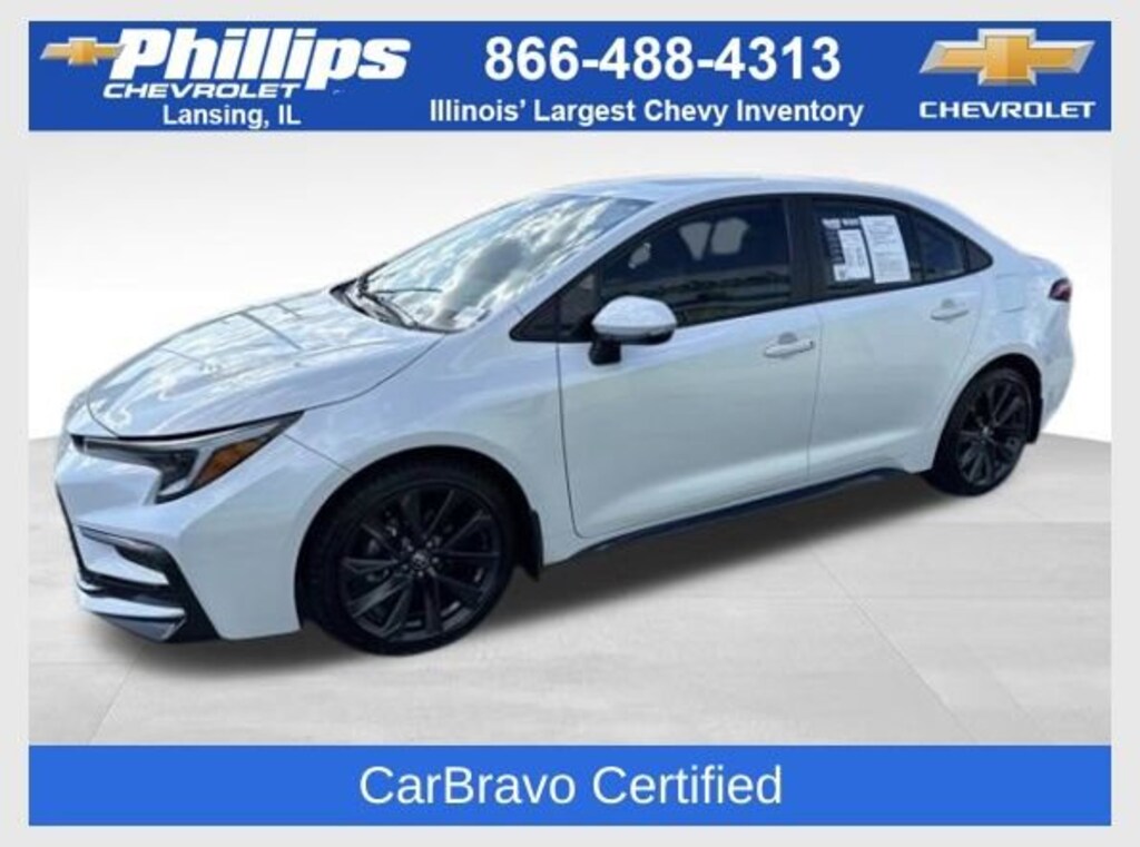 CarBravo Certified, ONE Owner!, Accident FREE, No Added Cert. Fees, Certified Multi-Point Inspection, Sunroof, Heated Seats, Apple CarPlay, Keyless Entry, Side Blind Zone Alert, Rear Cross Traffic Alert, Backup Camera, BLUETOOTH, Power Windows/Locks, Power Seating, PUSH BUTTON START!, GAS SAVER!, 18 WHEELS!, Carfax Buyback Guarantee, JBL AUDIO, Corolla XSE, 4D Sedan, 2.0L I4 DOHC 16V, CVT, FWD, Wind Chill Pearl, Black/Red w/SofTex Seat Trim, 4-Wheel Disc Brakes, 6 Speakers, ABS brakes, Air Conditioning, AM/FM radio: SiriusXM, Automatic temperature control, Brake assist, Bumpers: body-color, Driver door bin, Driver vanity mirror, Dual front impact airbags, Dual front side impact airbags, Electronic Stability Control, Emergency communication system: Safety Connect (up to 10-year trial subscription), Exterior Parking Camera Rear, Four wheel independent suspension, Front anti-roll bar, Front Bucket Seats, Front Center Armrest, Front reading lights, Fully automatic headlights, Heated door mirrors, Heated Front Sport Seats, Illuminated entry, Knee airbag, Leather steering wheel, Low tire pressure warning, Occupant sensing airbag, Outside temperature display, Overhead airbag, Panic alarm, Passenger door bin, Passenger vanity mirror, Power door mirrors, Power driver seat, Power moonroof, Power steering, Power windows, Radio data system, Radio: 8 Toyota Audio Multimedia, Rear anti-roll bar, Rear seat center armrest, Rear side impact airbag, Rear window defroster, Remote keyless entry, SofTex Seat Trim, Speed control, Split folding rear seat, Spoiler, Steering wheel mounted audio controls, Tachometer, Telescoping steering wheel, Tilt steering wheel, Traction control, Trip computer, Turn signal indicator mirrors, Variably intermittent wipers, Wheels: 18 Alloy w/Graphite-Colored Finish. 2024 Toyota Corolla Wind Chill Pearl XSE 4D Sedan FWD CVT 31/40 City/Highway MPG 2.0L I4 DOHC 16V31/40 City/Highway MPG Recent Arrival!Certification Program Details: Type your description hereWith the internet today, a great value shouldnât be hard to find. Here at Phillips Chevrolet we do the research for you. We monitor the market daily to ensure our customers are getting the best value achievable. We price all of our vehicles to make the buying process as simple and easy as possible. Our internet prices are just one factor that makes us the #1, #2, and out to be the #3 Chevrolet dealerships in Illinois. The #2 Chevy dealership in Illinois is conveniently located just a one block south of 80/94, at 17730 S Torrence Avenue in Lansing, IL 60438.