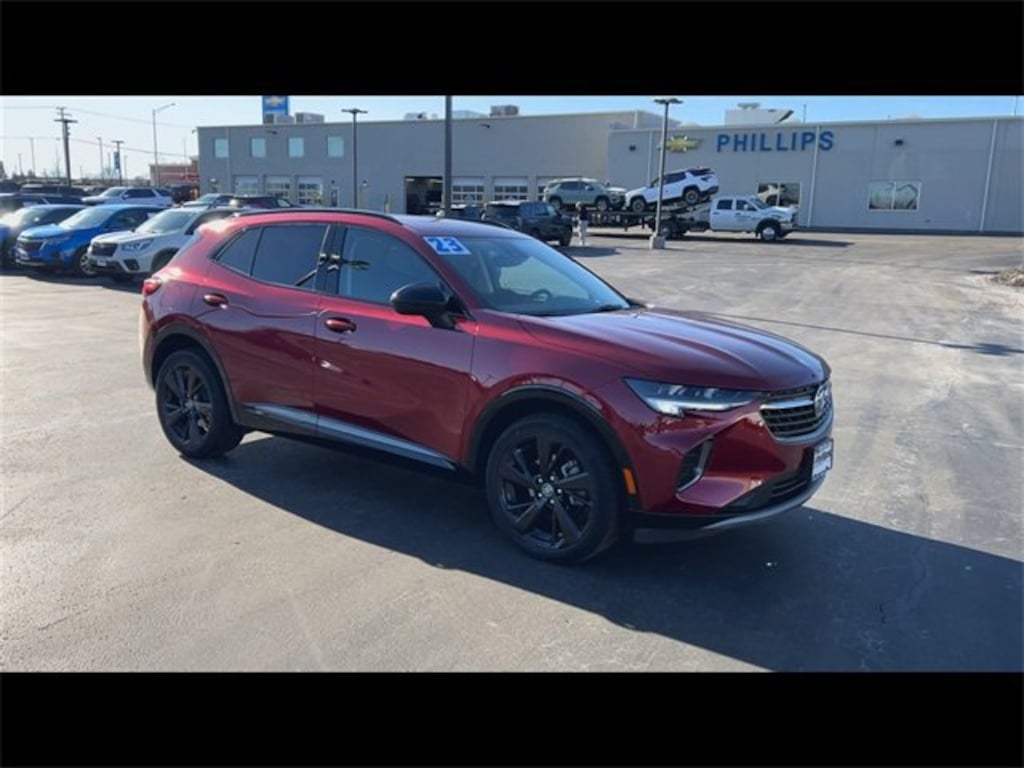 Low Miles, CarBravo Certified, AWD, Backup Camera, Remote Start, Pwr Dr Seat, Forward Collision Alert, Lane Departure Warning, Lane Change Alert, Lane Keep Assist, Rear Park Assist, Heated Seats, Heated Steering Wheel, Power Liftgate, Apple CarPlay, 20 Wheels, No added Certification fees, Carfax Buyback Guarantee, Envision Preferred, 4D Sport Utility, 2.0L Turbocharged, 9-Speed Automatic, AWD, Cinnabar Metallic, Ebony w/Ebony Accents w/Front Bucket Seats, 4-Wheel Disc Brakes, 7-Speaker Audio System Feature w/Amplifier, 8-Way Power Driver Seat Adjuster, ABS brakes, Air Conditioning, AM/FM radio: SiriusXM, Apple CarPlay/Android Auto, Auto High-beam Headlights, Auto-dimming door mirrors, Auto-dimming Rear-View mirror, Automatic Emergency Braking, Automatic temperature control, Black Roof Rails, Body-Color Door Handles, Brake assist, Bumpers: body-color, Carpeted Front & Rear Floor Mats, Cloth w/Leatherette Seat Trim, Compass, Driver door bin, Driver vanity mirror, Dual front impact airbags, Dual front side impact airbags, Electronic Stability Control, Emergency communication system: OnStar and Buick connected services capable, Following Distance Indicator, Forward Collision Alert, Four wheel independent suspension, Front anti-roll bar, Front Bin Center Console USB Ports, Front Bucket Seats, Front Center Armrest, Front dual zone A/C, Front Passenger 6-Way Manual Seat Adjuster, Front Pedestrian Braking, Front reading lights, Fully automatic headlights, Heated door mirrors, Heated front seats, Heated steering wheel, Illuminated entry, IntelliBeam Headlamp Control w/Auto High Beam, Knee airbag, Lane Keep Assist w/Lane Departure Warning, Low tire pressure warning, Lower Trim/Wheel Arch Moldings, Occupant sensing airbag, Outside temperature display, Overhead airbag, Overhead console, Passenger door bin, Passenger vanity mirror, Power door mirrors, Power Liftgate, Preferred Equipment Group 1SC, Premium audio system: Buick Infotainment System, Radio data system, Radio: Buick Infotainment System AM/FM Stereo, Rear anti-roll bar, Rear Cargo Compartment Cover, Rear reading lights, Rear seat center armrest, Rear window defroster, Rear window wiper, Remote keyless entry, Security system, SiriusXM Radio, Speed control, Split folding rear seat, Spoiler, Sport Alloy Pedals, Sport Touring Package, Steering wheel mounted audio controls, Telescoping steering wheel, Tilt steering wheel, Traction control, Trip computer, USB Charging-Only Ports, Variably intermittent wipers, Wheels: 20 Aluminum w/Dark Finish, Wireless Apple CarPlay/Wireless Android Auto. 2023 Buick Envision Cinnabar Metallic Preferred 4D Sport Utility AWD 9-Speed Automatic 22/29 City/Highway MPG 2.0L Turbocharged
