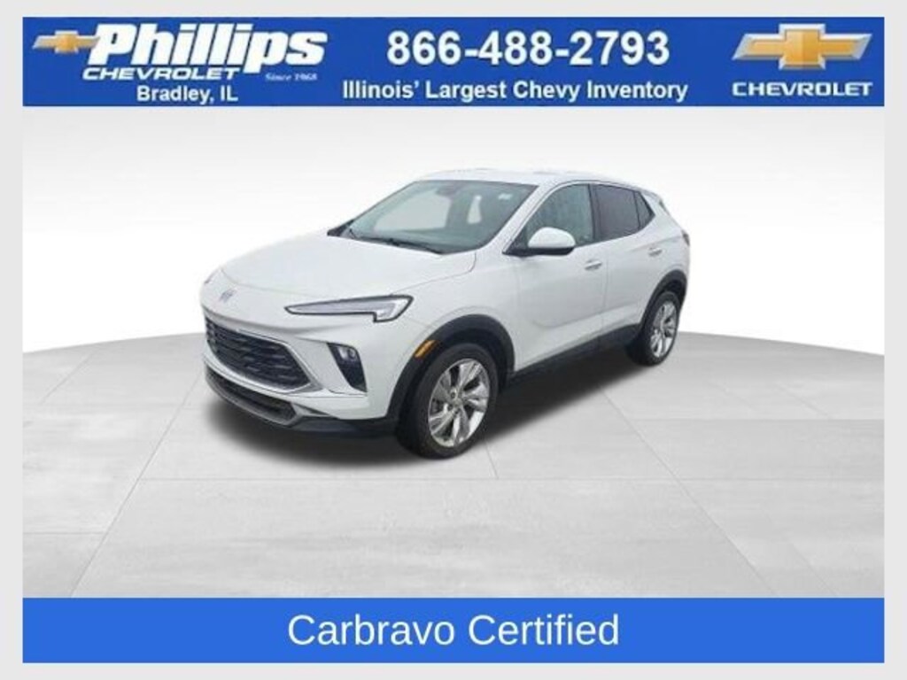 Carbravo Certified, Apple CarPlay, Android Auto, Keyless Entry, Back Up Camera, Blind Spot Monitoring, Bluetooth, Pedestrian Monitoring, Power Locks, Power Windows, Push Button Start, Remaining factory warranty, Lane Change Alert, Carfax Buyback Guarantee, Encore GX Preferred, 4D Sport Utility, ECOTEC 1.3L Turbo, CVT, FWD, Summit White, Ebony w/Ebony Accents w/Cloth w/Leatherette Seat Trim, 2 USB Ports (1 Type-A, 1 Type-C), 4-Way Manual Passenger Seat Adjuster, 4-Wheel Disc Brakes, 6 Speakers, 6-Way Manual Driver Seat Adjuster, ABS brakes, Air Conditioning, AM/FM radio: SiriusXM, Auto High-beam Headlights, Automatic temperature control, Brake assist, Bumpers: body-color, Cloth w/Leatherette Seat Trim, Compass, Driver door bin, Driver vanity mirror, Dual front impact airbags, Dual front side impact airbags, Electric Auxiliary Heating/Defroster, Electronic Stability Control, Emergency communication system: OnStar and Buick connected services capable, Enhanced Performance 6-Speaker System, Front anti-roll bar, Front Bucket Seats, Front Center Armrest, Front reading lights, Front wheel independent suspension, Fully automatic headlights, Heated door mirrors, Illuminated entry, Knee airbag, Low tire pressure warning, Occupant sensing airbag, Outside temperature display, Overhead airbag, Overhead console, Passenger door bin, Passenger vanity mirror, Power door mirrors, Preferred Equipment Group 1SB, Radio: Audio System w/AM/FM, Rear reading lights, Rear side impact airbag, Rear window defroster, Rear window wiper, Remote keyless entry, Ride & Handling Suspension, Security system, SiriusXM, Speed control, Speed-sensing steering, Split folding rear seat, Spoiler, Steering wheel mounted audio controls, Tachometer, Telescoping steering wheel, Tilt steering wheel, Traction control, Trip computer, Variably intermittent wipers, Wheels: 18 Bright Silver Painted Aluminum, Wireless Apple CarPlay/Wireless Android Auto. Clean CARFAX. Certified. Summit White 2024 Buick Encore GX Preferred FWD CVT ECOTEC 1.3L TurboRecent Arrival! 29/31 City/Highway MPGCertification Program Details: Type your description hereWith the internet today, a great value shouldn't be hard to find. Here at Phillips Chevrolet we do the research for you. We monitor the market daily to ensure our customers are getting the best value achievable. We price all of our vehicles to make the buying process as simple and easy as possible. Our internet prices are just one factor that makes us the #1, #2, and out to be the #3 Chevrolet dealerships in Illinois. The future #3 Chevy dealership in Illinois is conveniently located at 1400 Locke Drive, the corner of I-57 & IL 50, in Bradley/Bourbonnais, IL 60914.