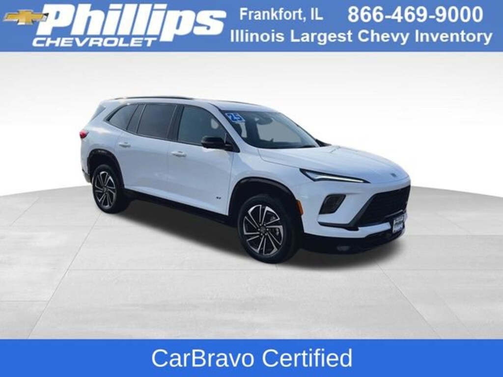 CarBravo Certified, AWD, Backup Camera, Remote Start, 7 Passenger Seating, Pwr Dr Seat, Forward Collision Alert, Navigation, Bose Audio, Side Blind Zone Alert, Rear Cross Traffic Alert, Lane Departure Warning, Lane Change Alert, Lane Keep Assist, Rear Park Assist, Heated Seats, Heated Steering Wheel, Power Liftgate, Apple CarPlay, 20 Wheels, Carfax Buyback Guarantee, Enclave Sport Touring, 4D Sport Utility, 2.5L DOHC, 8-Speed Automatic, AWD, Summit White, Ebony w/Sky Cool Gray & Ebony Accents w/Perforated Leatherette Seat Trim, 3rd row seats: split-bench, 4-Wheel Disc Brakes, ABS brakes, Air Conditioning, AM/FM radio: SiriusXM with 360L, Auto High-beam Headlights, Auto-dimming door mirrors, Auto-dimming Rear-View mirror, Automatic temperature control, Bose Premium 12-Speaker Audio System, Brake assist, Bumpers: body-color, Compass, Deleted OnStar Basics, Driver 4-Way Power Lumbar Seat Adjuster, Driver 8-Way Power Seat Adjuster, Driver door bin, Driver vanity mirror, Dual front impact airbags, Dual front side impact airbags, Electronic Stability Control, Emergency communication system: OnStar and Buick connected services capable, Four wheel independent suspension, Front anti-roll bar, Front Bucket Seats, Front Center Armrest, Front dual zone A/C, Front Mounting License Plate Bracket Package, Front Passenger 4-Way Power Lumbar Seat Adjuster, Front Passenger 6-Way Power Seat Adjuster, Front reading lights, Fully automatic headlights, Heated door mirrors, Heated Driver and Front Passenger Seats, Heated steering wheel, Illuminated entry, Leather steering wheel, Low tire pressure warning, Navigation System, Occupant sensing airbag, Outside temperature display, Overhead airbag, Overhead console, Passenger door bin, Passenger vanity mirror, Perforated Leatherette Seat Trim, Power door mirrors, Power driver seat, Power Liftgate, Power passenger seat, Power steering, Power windows, Preferred Equipment Group 1SM, Premium audio system: Buick Infotainment System, Radio data system, Radio: Infotainment Center, Rear air conditioning, Rear anti-roll bar, Rear reading lights, Rear side impact airbag, Rear window defroster, Rear window wiper, Remote keyless entry, Security system, SiriusXM with 360L Trial Subscription, Speed control, Speed-sensing steering, Spoiler, Sport steering wheel, Steering wheel mounted audio controls, Tachometer, Telescoping steering wheel, Tilt steering wheel, Traction control, Trip computer, Turn signal indicator mirrors, Variably intermittent wipers, Voltmeter, Wheels: 20 Alloy with High Gloss Black, Wireless Apple CarPlay, Wireless Google Android Auto. 2025 Buick Enclave Summit White Sport Touring 4D Sport Utility AWD 8-Speed Automatic 19/24 City/Highway MPG 2.5L DOHC