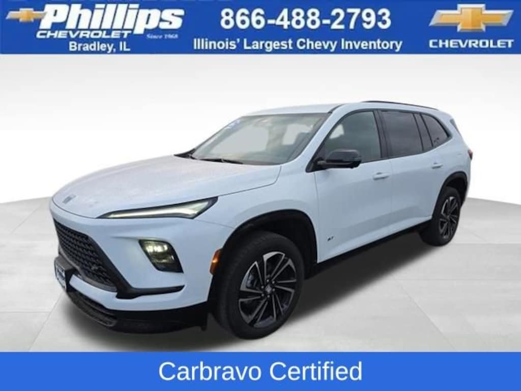 Carbravo Certified, One Owner, Carfax- Accident Free, Apple CarPlay, Android Auto, Keyless Entry, Adaptive Cruise Control (ACC), Auto Check - Accident free, AWD, Back Up Camera, Blind Spot Monitoring, Bluetooth, BOSE Audio, Heated seats, Heated steering wheel, Forward Collision Alert, Lane Assist, Pedestrian Monitoring, Power Locks, Power Seating, Power Windows, Push Button Start, Rear Traffic Alert, Remaining factory warranty, Remote Power Liftgate, Remote start, Rear Park Assist, Lane Change Alert, Carfax Buyback Guarantee, Enclave Sport Touring, 4D Sport Utility, 2.5L DOHC, 8-Speed Automatic, AWD, Summit White, Ebony w/Sky Cool Gray & Ebony Accents w/Leatherette Seat Trim, 12 Speakers, 3rd row seats: split-bench, 4-Wheel Disc Brakes, ABS brakes, Auto High-beam Headlights, Auto-dimming door mirrors, Auto-dimming Rear-View mirror, Automatic temperature control, Bose Premium 12-Speaker Audio System, Brake assist, Bumpers: body-color, Compass, Delay-off headlights, Driver 4-Way Power Lumbar Seat Adjuster, Driver 8-Way Power Seat Adjuster, Driver door bin, Driver vanity mirror, Dual front impact airbags, Dual front side impact airbags, Electronic Stability Control, Emergency communication system: OnStar and Buick connected services capable, Four wheel independent suspension, Front anti-roll bar, Front Bucket Seats, Front Center Armrest, Front dual zone A/C, Front Passenger 4-Way Power Lumbar Seat Adjuster, Front Passenger 6-Way Power Seat Adjuster, Front reading lights, Fully automatic headlights, Heated door mirrors, Heated Driver and Front Passenger Seats, Heated steering wheel, Illuminated entry, Leather steering wheel, Low tire pressure warning, Occupant sensing airbag, Outside temperature display, Overhead airbag, Overhead console, Panic alarm, Passenger door bin, Passenger vanity mirror, Perforated Leatherette Seat Trim, Power door mirrors, Power Liftgate, Power passenger seat, Preferred Equipment Group 1SM, Premium audio system: Buick Infotainment System, Rear air conditioning, Rear anti-roll bar, Rear reading lights, Rear side impact airbag, Rear window defroster, Rear window wiper, Remote keyless entry, Security system, Speed control, Speed-sensing steering, Spoiler, Sport steering wheel, Steering wheel mounted audio controls, Tachometer, Telescoping steering wheel, Tilt steering wheel, Traction control, Trip computer, Turn signal indicator mirrors, Variably intermittent wipers, Voltmeter, Wheels: 20 Alloy with High Gloss Black, Wireless Apple CarPlay, Wireless Google Android Auto. CARFAX One-Owner. Clean CARFAX. Certified. Summit White 2025 Buick Enclave Sport Touring AWD 8-Speed Automatic 2.5L DOHC