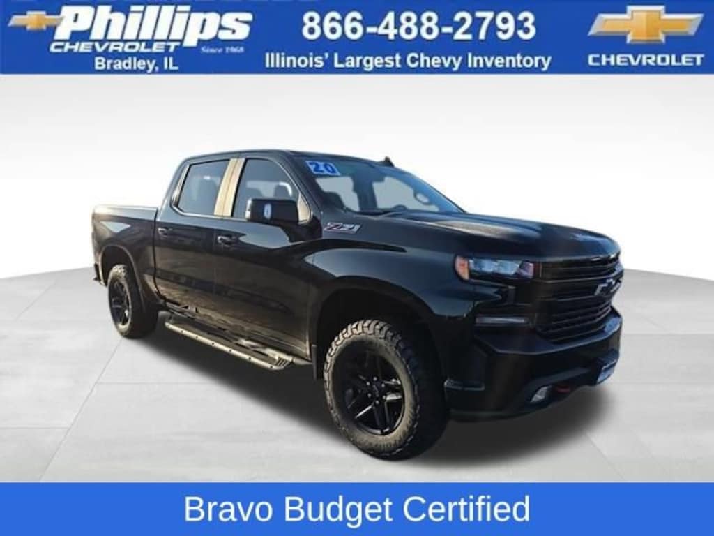 Bravo Budget Certified, Apple CarPlay, Android Auto, Keyless Entry, 4WD, Back Up Camera, Blind Spot Monitoring, Bluetooth, Cruise Control, Heated seats, Heated steering wheel, Power Locks, Power Seating, Power Windows, Push Button Start, Rear Traffic Alert, Front Park Assist, Rear Park Assist, Carfax Buyback Guarantee, Z71 OFF-ROAD PACKAGE, SAFETY PACKAGE I, CONVENIENCE PACKAGE II, LEATHER PACKAGE, Silverado 1500 LT Trail Boss, 4D Crew Cab, EcoTec3 6.2L V8, 10-Speed Automatic, 4WD, Black, Black Leather, 10-Way Power Driver Seat w/Lumbar, 12-Volt Rear Auxiliary Power Outlet, 120-Volt Bed Mounted Power Outlet, 120-Volt Instrument Panel Power Outlet, 170 Amps Alternator, 2 USB Ports, 2 USB Ports (First Row), 3.23 Rear Axle Ratio, 4-Way Manual Driver Seat Adjuster, 4.2 Diagonal Color Display Driver Info Center, 4G LTE Wi-Fi Hot Spot Capable, 6-Speaker Audio System, ABS brakes, Advanced Trailering Package, Advanced Trailering System, All-Weather Floor Liner (LPO) (AAK), Auxiliary External Transmission Oil Cooler, Bed Protection Package, Bed View Camera, Bluetooth® For Phone, Brake assist, Chevrolet Connected Access Capable, Chevytec Spray-On Black Bedliner, Color-Keyed Carpeting Floor Covering, Compass, Convenience Package II, Convenience Package w/Buckets Seats, Deep-Tinted Glass, Delay-off headlights, Driver door bin, Driver vanity mirror, Dual Exhaust w/Polished Outlets, Dual front impact airbags, Dual-Zone Automatic Climate Control, Electric Rear-Window Defogger, Electrical Lock Control Steering Column, Electronic Stability Control, Floor Mounted Center Console, Front Bucket Seats, Front fog lights, Front LED Fog Lamps, Front reading lights, Fully automatic headlights, HD Radio, HD Rear Vision Camera, Heated door mirrors, Heated Driver & Front Outboard Passenger Seats, Heated Steering Wheel, Heavy-Duty Rear Locking Differential, High Capacity Air Filter, High Gloss Black Grille, High Gloss Black Mirror Caps, Hill Descent Control, Hitch Guidance, Hitch Guidance w/Hitch View, Integrated Trailer Brake Controller, Keyless Open & Start, Lane Change Alert w/Side Blind Zone Alert, Leather Package, Leather Wrapped Steering Wheel, LED Cargo Area Lighting, LED Reflector Headlamps, Manual Tilt-Wheel Steering Column, Manual Tilt/Telescoping Steering Column, Occupant sensing airbag, Off-Road Suspension w/2 Lift, OnStar & Chevrolet Connected Services Capable, Outside temperature display, Overhead console, Panic alarm, Perforated Leather-Appointed Front Seat Trim, Performance Red Recovery Hooks, Perimeter Lighting, Power Door Locks, Power door mirrors, Power Front Windows w/Driver Express Up/Down, Power Front Windows w/Passenger Express Down, Power Rear Windows w/Express Down, Power Sliding Rear Window w/Rear Defogger, Preferred Equipment Group 2LT, Premium Bose 7-Speaker Sound System, Radio: Chevrolet Infotainment 3 Plus System, Rear 60/40 Folding Bench Seat (Folds Up), Rear Cross Traffic Alert, Rear Dual USB Charging-Only Ports, Rear reading lights, Rear step bumper, Rear Vision Camera, Rear Wheelhouse Liners, Remote keyless entry, Remote Vehicle Starter System, Safety Package, Security system, Single-Zone Manual/Semi-Automatic Air Conditioning, SiriusXM w/360L, Speed control, Speed-sensing steering, Steering Wheel Audio Controls, Steering wheel mounted audio controls, Steering Wheel Mounted Electronic Cruise Control, Suspension Package, Tachometer, Theft Deterrent System (Unauthorized Entry), Tilt steering wheel, Traction control, Trailer Camera Package, Trailering Package, Trip computer, Ultrasonic Front & Rear Park Assist, Universal Home Remote, Up-Level Rear Seat w/Storage Package, Variably intermittent wipers, Voltmeter, Wheels: 18 x 8.5 Black Painted Aluminum. Clean CARFAX. Certified. Black 2020 Chevrolet Silverado 1500 LT Trail Boss 4WD 10-Speed Automatic EcoTec3 6.2L V8