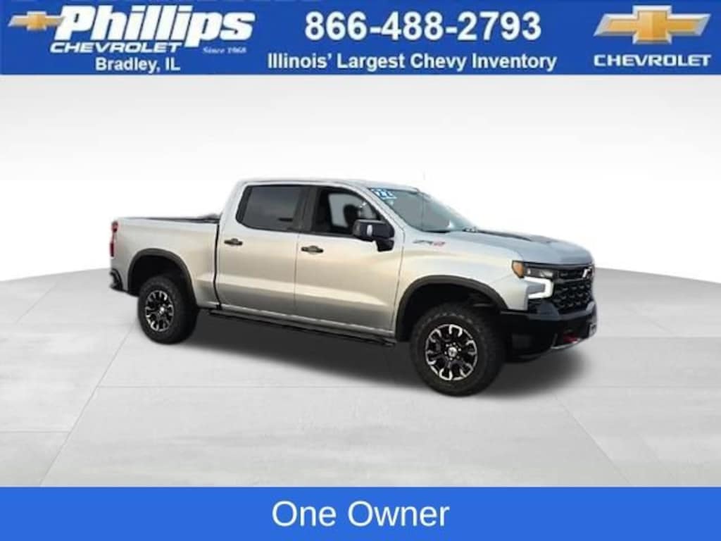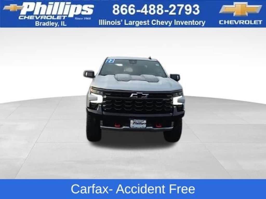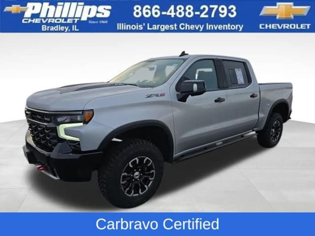 Carbravo Certified, One Owner, Carfax- Accident Free, Apple CarPlay, Android Auto, Keyless Entry, SUNROOF, 4WD, Adaptive Cruise Control (ACC), Auto Check - Accident free, Back Up Camera, Blind Spot Monitoring, Bluetooth, BOSE Audio, Heated seats, Heated steering wheel, Forward Collision Alert, Intellibeam, Lane Assist, Memory Settings, Pedestrian Monitoring, Power Locks, Power Seating, Power Windows, Push Button Start, Rear Traffic Alert, Remaining factory warranty, Remote start, Trailering Package, Chevy Safety Assist Package, Rear Park Assist, Lane Change Alert, Carfax Buyback Guarantee, TECHNOLOGY PACKAGE, Silverado 1500 ZR2, 4D Crew Cab, EcoTec3 6.2L V8, 10-Speed Automatic, 4WD, Silver Ice Metallic, Jet Black/Graystone w/Perforated Leather Seat Trim, 10-Way Power Driver Seat w/Lumbar, 10-Way Power Passenger Seat Adjuster w/Lumbar, 12.3 Multicolor Reconfigurable Digital Display, 120-Volt Instrument Panel Power Outlet, 15 Diagonal Multicolor Head-Up Display, 170 Amp Alternator, 2 USB Data Ports, 2nd Row Heated Outboard Seats, 3.23 Rear Axle Ratio, 4-Wheel Disc Brakes, ABS brakes, Adaptive Cruise Control, All-Weather Floor Liner (LPO), Apple CarPlay/Android Auto, Auto High-beam Headlights, Auto-dimming door mirrors, Auto-Dimming Inside Rear-View Mirror, Auto-dimming Rear-View mirror, Auto-Locking Rear Differential, Automatic Emergency Braking, Automatic temperature control, Bed View Camera, Bluetooth® For Phone, Brake assist, Chevrolet Connected Access Capable, Chevytec Spray-On Black Bedliner, Color-Keyed Carpeting Floor Covering, Compass, Deep-Tinted Glass, Delay-off headlights, Driver door bin, Driver Memory, Driver vanity mirror, Dual Exhaust, Dual front impact airbags, Dual front side impact airbags, Dual Rear USB Ports (Charge Only), Electric Rear-Window Defogger, Electrical Steering Column Lock, Electronic Cruise Control, Electronic Stability Control, Electronic Transmission Range Selector Shifter, EZ Lift Power Lock & Release Tailgate, Floor Mounted Center Console, Following Distance Indicator, Forward Collision Alert, Front anti-roll bar, Front Bucket Seats, Front Center Armrest, Front dual zone A/C, Front fog lights, Front LED Fog Lamps, Front Pedestrian Braking, Front Rainsensing Wipers, Front reading lights, Front wheel independent suspension, Fully automatic headlights, Garage door transmitter, HD Surround Vision, Heated door mirrors, Heated Driver & Front Outboard Passenger Seats, Heated Steering Wheel, Heavy-Duty Air Filter, High Gloss Black Mirror Caps, Hill Descent Control, Hitch Guidance w/Hitch View, Illuminated entry, Integrated Trailer Brake Controller, IntelliBeam Automatic High Beam On/Off, Keyless Open & Start, Lane Keep Assist w/Lane Departure Warning, Leather Wrapped Steering Wheel, LED Cargo Area Lighting, Low tire pressure warning, Manual Tilt/Telescoping Steering Column, Memory seat, Multi-Flex Tailgate, Occupant sensing airbag, OnStar & Chevrolet Connected Services Capable, Outside Heated Power-Adjustable Mirrors, Outside temperature display, Overhead airbag, Overhead console, Panic alarm, Passenger door bin, Passenger vanity mirror, Perforated Leather Seat Trim, Performance Red Recovery Hooks, Perimeter Lighting, Power door mirrors, Power Front Passenger Windows w/Express Up/Down, Power Front Windows w/Driver Express Up/Down, Power passenger seat, Power Rear Windows w/Express Down, Power Sliding Rear Window w/Rear Defogger, Power Sunroof, Power Tilt & Telescoping Steering Column, Preferred Equipment Group 3LT, Rain sensing wipers, Rear Camera Mirror, Rear Cross Traffic Alert-Braking, Rear Park Assist, Rear Pedestrian Detection, Rear reading lights, Rear seat center armrest, Rear step bumper, Rear Wheelhouse Liners, Rear window defroster, Remote keyless entry, Remote Vehicle Starter System, Rocker Protector (LPO), Safety Alert Seat, Security system, SiriusXM w/360L, Speed control, Speed-sensing steering, Split folding rear seat, Standard Tailgate,