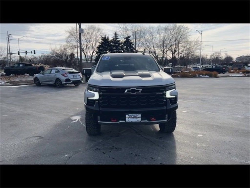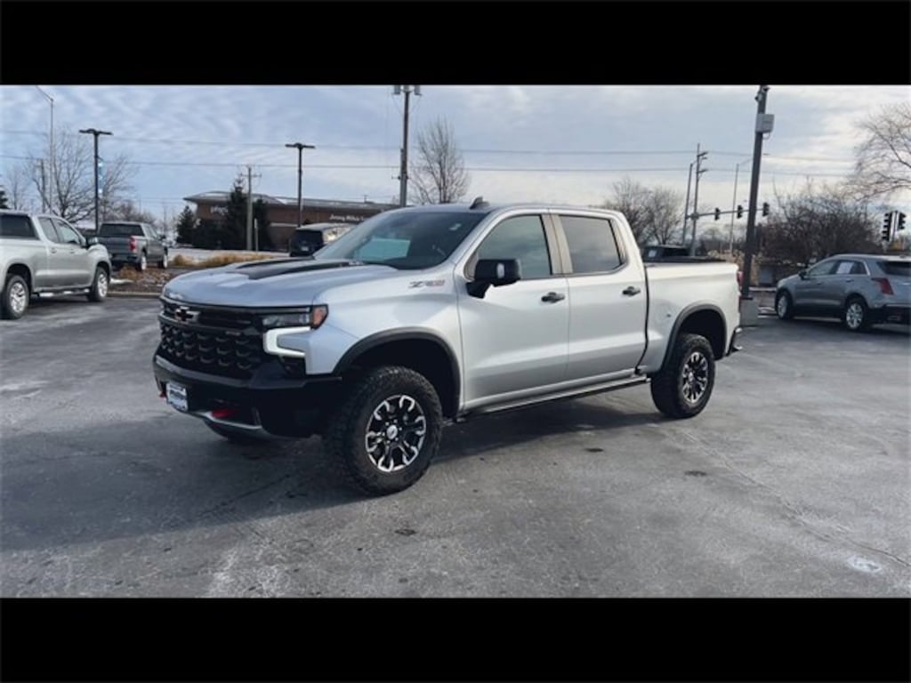 CarBravo Certified, 4WD, Leather Seats, Bucket Seats w/ Center Console, MultiFlex Tailgate, Sunroof, Trailering Package, Backup Camera, Remote Start, Pwr Dr Seat, Forward Collision Alert, Head-Up Display, Navigation, Bose Audio, Side Blind Zone Alert, Rear Cross Traffic Alert, Lane Departure Warning, Lane Change Alert, Lane Keep Assist, Adaptive Cruise Control, Apple CarPlay, Aluminum Wheels, Carfax Buyback Guarantee, Silverado 1500 ZR2, 4D Crew Cab, EcoTec3 6.2L V8, 10-Speed Automatic, 4WD, Silver Ice Metallic, Jet Black/Graystone w/Perforated Leather Seat Trim, 10-Way Power Driver Seat w/Lumbar, 10-Way Power Passenger Seat Adjuster w/Lumbar, 12.3 Multicolor Reconfigurable Digital Display, 120-Volt Instrument Panel Power Outlet, 15 Diagonal Multicolor Head-Up Display, 170 Amp Alternator, 2 USB Data Ports, 2nd Row Heated Outboard Seats, 3.23 Rear Axle Ratio, 4-Wheel Disc Brakes, ABS brakes, Adaptive Cruise Control, All-Weather Floor Liner (LPO), AM/FM radio: SiriusXM with 360L, Auto High-beam Headlights, Auto-dimming door mirrors, Auto-Dimming Inside Rear-View Mirror, Auto-Locking Rear Differential, Automatic Emergency Braking, Automatic temperature control, Bed View Camera, Bluetooth® For Phone, Brake assist, Chevrolet Connected Access Capable, Chevytec Spray-On Black Bedliner, Color-Keyed Carpeting Floor Covering, Compass, Deep-Tinted Glass, Driver door bin, Driver Memory, Driver vanity mirror, Dual Exhaust, Dual front impact airbags, Dual front side impact airbags, Dual Rear USB Ports (Charge Only), Electric Rear-Window Defogger, Electrical Steering Column Lock, Electronic Cruise Control, Electronic Stability Control, Electronic Transmission Range Selector Shifter, EZ Lift Power Lock & Release Tailgate, Floor Mounted Center Console, Following Distance Indicator, Forward Collision Alert, Front anti-roll bar, Front Bucket Seats, Front Center Armrest, Front dual zone A/C, Front fog lights, Front LED Fog Lamps, Front License Plate Kit, Front Pedestrian Braking, Front Rainsensing Wipers, Front reading lights, Front wheel independent suspension, Fully automatic headlights, Garage door transmitter, HD Surround Vision, Heated door mirrors, Heated Driver & Front Outboard Passenger Seats, Heated rear seats, Heated Steering Wheel, Heavy-Duty Air Filter, High Gloss Black Mirror Caps, Hill Descent Control, Hitch Guidance w/Hitch View, Illuminated entry, Integrated Trailer Brake Controller, IntelliBeam Automatic High Beam On/Off, Keyless Open & Start, Lane Keep Assist w/Lane Departure Warning, Leather Wrapped Steering Wheel, LED Cargo Area Lighting, Low tire pressure warning, Manual Tilt/Telescoping Steering Column, Memory seat, Multi-Flex Tailgate, Occupant sensing airbag, OnStar & Chevrolet Connected Services Capable, Outside Heated Power-Adjustable Mirrors, Outside temperature display, Overhead airbag, Overhead console, Passenger door bin, Passenger vanity mirror, Perforated Leather Seat Trim, Performance Red Recovery Hooks, Perimeter Lighting, Power driver seat, Power Front Passenger Windows w/Express Up/Down, Power Front Windows w/Driver Express Up/Down, Power Rear Windows w/Express Down, Power Sliding Rear Window w/Rear Defogger, Power Sunroof, Power Tilt & Telescoping Steering Column, Preferred Equipment Group 3LT, Premium Bose 7-Speaker Sound System, Radio data system, Radio: Chevrolet Infotainment 3 Premium System, Rain sensing wipers, Rear Camera Mirror, Rear Cross Traffic Alert-Braking, Rear Park Assist, Rear Pedestrian Detection, Rear reading lights, Rear seat center armrest, Rear step bumper, Rear Wheelhouse Liners, Rear window defroster, Remote Vehicle Starter System, Safety Alert Seat, SiriusXM w/360L, Speed-sensing steering, Standard Tailgate, Steering Wheel Audio Controls, Steering wheel mounted audio controls, Tachometer, Technology Package, Telescoping steering wheel, Theft Deterrent System (Unauthorized Entry), Tilt steering wheel, Traction control, Trailer Camera Prov
