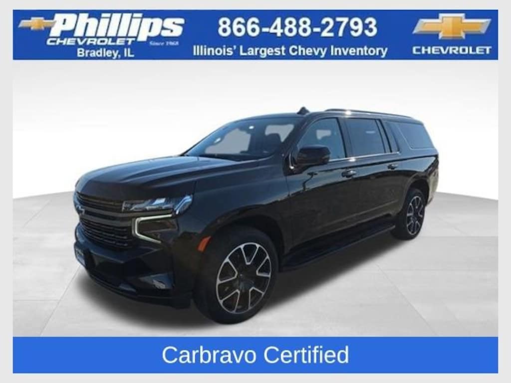 Carbravo Certified, Apple CarPlay, Android Auto, Keyless Entry, 4WD, Back Up Camera, Blind Spot Monitoring, Bluetooth, Heated seats, Heated steering wheel, Forward Collision Alert, Lane Assist, Panoramic Roof, Power lift gate, Power Locks, Power Seating, Power Windows, Push Button Start, Rear Traffic Alert, Remaining factory warranty, Remote start, Front Park Assist, Rear Park Assist, Lane Change Alert, Carfax Buyback Guarantee, Suburban RST, 4D Sport Utility, EcoTec3 6.2L V8, 10-Speed Automatic with Overdrive, 4WD, Black, Jet Black/Victory Red Leather, 10-Way Power Driver & Passenger Seat Adjusters, 1st & 2nd Row Color-Keyed Carpeted Floor Mats, 2nd Row Pwr Release 60/40 Split-Folding Bench Seat, 3.23 Rear Axle Ratio, 3rd Row 60/40 Power-Folding Split-Bench, 3rd row seats: split-bench, 4-Wheel Disc Brakes, ABS brakes, Apple CarPlay/Android Auto, Auto High-beam Headlights, Auto-Dimming Inside Rear-View Mirror, Auto-dimming Rear-View mirror, Automatic Stop/Start, Automatic temperature control, Bose 9-Speaker Stereo Audio System Feature, Brake assist, Bright Front & Rear Door Sill Plates, Bumpers: body-color, Color-Keyed Carpeting Floor Covering, Compass, Delay-off headlights, Driver & Front Outboard Passenger Airbags, Driver Alert Package, Driver door bin, Driver vanity mirror, Dual Exhaust System, Dual front impact airbags, Dual front side impact airbags, Dual-Pane Power Panoramic Sunroof, Electronic Stability Control, Emergency communication system: OnStar and Chevrolet connected services capable, Enhanced Driver Information Center, Floor Console w/Storage Area, Four wheel independent suspension, Front & Rear Park Assist, Front anti-roll bar, Front Bucket Seats, Front Center Armrest, Front dual zone A/C, Front reading lights, Fully automatic headlights, Garage door transmitter, Hands-Free Rear Power Programmable Liftgate, HD Surround Vision, Heated 2nd Row Outboard Seats, Heated door mirrors, Heated Driver & Front Passenger Seats, Heated Steering Wheel, Illuminated entry, Infotainment Display, Lane Change Alert w/Side Blind Zone Alert, Leather steering wheel, Leather-Wrapped Steering Wheel, LED Daytime Running Lamps, Low tire pressure warning, Luxury Package, Magnetic Ride Control Suspension, Memory Settings, Memory Settings For Driver, Navigation System, Not Equipped w/Steering Column Lock, Occupant sensing airbag, Outside Heated Power-Adjustable Mirrors, Outside temperature display, Overhead airbag, Overhead console, Panic alarm, Passenger door bin, Passenger vanity mirror, Perforated Leather Seating Surfaces, Power door mirrors, Power Liftgate, Power passenger seat, Power Release 2nd Row Bucket Seats, Power Tilt & Telescopic Steering Column, Preferred Equipment Group 1SP, Premium Smooth Ride Suspension, Rain sensing wipers, Rear air conditioning, Rear anti-roll bar, Rear Cross Traffic Alert, Rear Pedestrian Alert, Rear reading lights, Rear seat center armrest, Rear window defroster, Rear window wiper, Remote keyless entry, Remote Start, Security system, SiriusXM Radio w/360L, Speed control, Speed-sensing steering, Split folding rear seat, Spoiler, Sport Performance Package, Start/Stop System Disable Button, Steering wheel mounted audio controls, Tachometer, Telescoping steering wheel, Tilt steering wheel, Traction control, Trip computer, Universal Home Remote, Variably intermittent wipers, Voltmeter, Wheel Locks (Set of 4) (LPO), Wheels: 22 x 9 Bright Machined, Wireless Charging. Clean CARFAX. Certified. Black 2022 Chevrolet Suburban RST 4WD 10-Speed Automatic with Overdrive EcoTec3 6.2L V8Odometer is 13737 miles below market average!Certification Program Details: Type your description hereWith the internet today, a great value shouldn't be hard to find. Here at Phillips Chevrolet we do the research for you. We monitor the market daily to ensure our customers are getting the best value achievable. We price all of our vehicles to make the buying process as simple and easy as possible. Our internet
