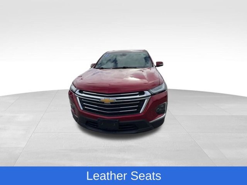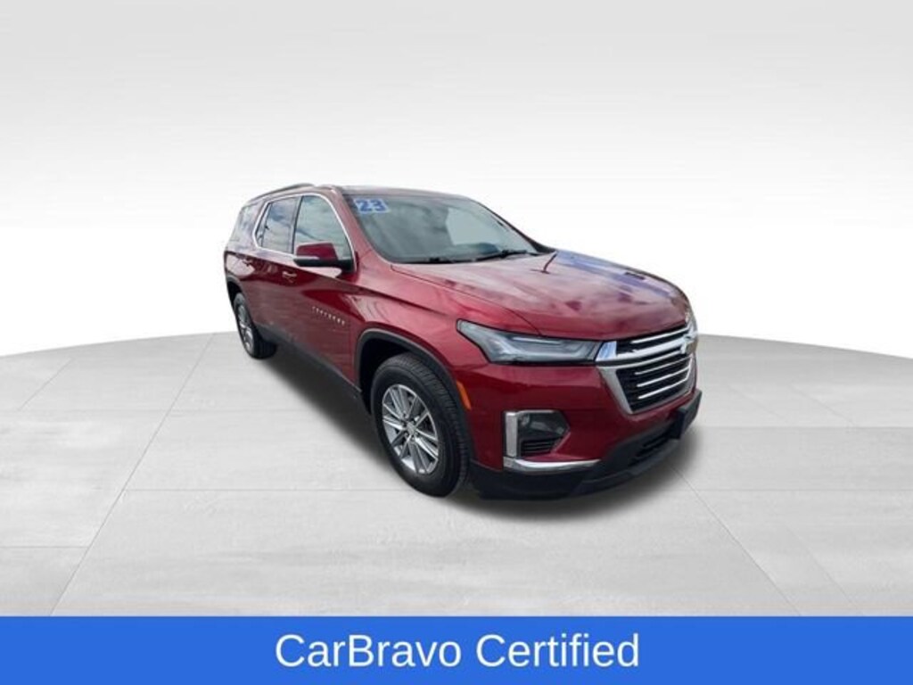 CarBravo Certified, Leather Seats, AWD, Backup Camera, Remote Start, 7 Passenger Seating, Pwr Dr Seat, Forward Collision Alert, Side Blind Zone Alert, Rear Cross Traffic Alert, Lane Departure Warning, Lane Change Alert, Lane Keep Assist, Heated Seats, Heated Steering Wheel, Power Liftgate, Apple CarPlay, Aluminum Wheels, Carfax Buyback Guarantee, Traverse LT Leather, 4D Sport Utility, 3.6L V6 SIDI VVT, 9-Speed Automatic, AWD, Radiant Red Tintcoat, Jet Black w/Perforated Leather-Appointed Seat Trim, 3rd row seats: split-bench, 4-Wheel Disc Brakes, 6-Speaker Audio System Feature, 6-Way Power Front Passenger Seat, 8-Way Power Driver Seat Adjuster, ABS brakes, AM/FM radio: SiriusXM with 360L, Apple CarPlay/Android Auto, Auto High-beam Headlights, Automatic temperature control, Black Roof Rails, Brake assist, Bumpers: body-color, Compass, Driver door bin, Driver vanity mirror, Dual front impact airbags, Dual front side impact airbags, Electronic Stability Control, Emergency communication system, Exterior Parking Camera Rear, Four wheel independent suspension, Front anti-roll bar, Front Bucket Seats, Front Center Armrest, Front dual zone A/C, Front License Plate Bracket Mounting Package, Front Passenger 2-Way Power Lumbar, Front reading lights, Fully automatic headlights, Garage door transmitter, Heated door mirrors, Heated Driver & Front Passenger Seats, Heated steering wheel, Illuminated entry, Leather steering wheel, Leather-Appointed Seat Trim, Low tire pressure warning, Not Equipped w/Rear Park Assist (060), Occupant sensing airbag, Outside temperature display, Overhead airbag, Overhead console, Passenger door bin, Passenger vanity mirror, Power door mirrors, Power Driver Lumbar Control, Power Liftgate, Power passenger seat, Preferred Equipment Group 3LT, Premium audio system: Chevrolet Infotainment 3 Plus, Radio data system, Radio: Chevrolet Infotainment 3 Plus System, Rear air conditioning, Rear anti-roll bar, Rear reading lights, Rear window defroster, Rear window wiper, Remote keyless entry, Security system, SiriusXM w/360L, Speed control, Speed-sensing steering, Spoiler, Steering wheel mounted audio controls, Tachometer, Telescoping steering wheel, Tilt steering wheel, Traction control, Trip computer, Turn signal indicator mirrors, Variably intermittent wipers, Voltmeter, Wheels: 18 Bright Silver-Painted Aluminum. 2023 Chevrolet Traverse Radiant Red Tintcoat LT Leather 4D Sport Utility AWD 9-Speed Automatic 17/25 City/Highway MPG 3.6L V6 SIDI VVT