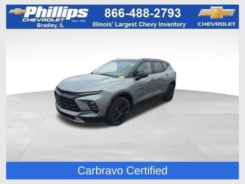 Carbravo Certified, One Owner, Apple CarPlay, Android Auto, Keyless Entry, Adaptive Cruise Control (ACC), Back Up Camera, Blind Spot Monitoring, Bluetooth, Cruise Control, Heated seats, Forward Collision Alert, Lane Assist, MIDNIGHT EDITION, Pedestrian Monitoring, Power lift gate, Power Locks, Power Seating, Power Windows, Push Button Start, Rear Traffic Alert, Remaining factory warranty, Remote start, Rear Park Assist, Carfax Buyback Guarantee, Blazer LT, 4D Sport Utility, 2.0L Turbocharged, 9-Speed Automatic with Overdrive, FWD, Sterling Gray Metallic, Jet Black/Medium Gray w/Premium Cloth Seat Trim, 170 Amp Alternator, 4-Way Manual Front Passenger Seat Adjuster, 4-Wheel Disc Brakes, 6-Speaker Audio System Feature, 8-Way Power Driver Seat Adjuster, ABS brakes, Adaptive Cruise Control, Air Conditioning, AM/FM radio: SiriusXM with 360L, Apple CarPlay/Android Auto, Auto High-beam Headlights, Automatic temperature control, Black 2-Tone Roof, Black Roof-Mounted Side Rails, Brake assist, Bumpers: body-color, Child-Seat-Sensing Airbag, Compass, Convenience Package, Delay-off headlights, Driver Confidence Package, Driver door bin, Driver vanity mirror, Electronic Stability Control, Enhanced Automatic Emergency Braking, Four wheel independent suspension, Front & Rear Black Bowties, Front Bucket Seats, Front dual zone A/C, Front reading lights, Fully automatic headlights, Heated door mirrors, Heated Driver & Front Passenger Seats, Illuminated entry, Inside Rear-View Auto-Dimming Mirror, Lane Change Alert w/Side Blind Zone Alert, Leather Shift Knob, Midnight/Sport Edition, Outside temperature display, Overhead airbag, Overhead console, Passenger door bin, Passenger vanity mirror, Power door mirrors, Power Driver Lumbar Control, Preferred Equipment Group 2LT, Premium audio system: Chevrolet Infotainment 3 Plus, Premium Cloth Seat Trim, Radio data system, Radio: Chevrolet Infotainment 3 Plus System, Rear anti-roll bar, Rear Cross Traffic Alert, Rear Park Assist w/Audible Warning, Rear Power Programmable Liftgate, Rear reading lights, Rear seat center armrest, Rear window defroster, Rear window wiper, Remote keyless entry, Ride & Handling Suspension, Security system, SiriusXM w/360L, Speed-sensing steering, Split folding rear seat, Spoiler, Steering wheel mounted audio controls, Tachometer, Telescoping steering wheel, Tilt steering wheel, Traction control, Trip computer, Universal Home Remote, Variably intermittent wipers, Voltmeter, Wheels: 18 High Gloss Black Painted Aluminum, Wireless Charging. Clean CARFAX. Certified. Sterling Gray Metallic 2024 Chevrolet Blazer LT FWD 9-Speed Automatic with Overdrive 2.0L Turbocharged